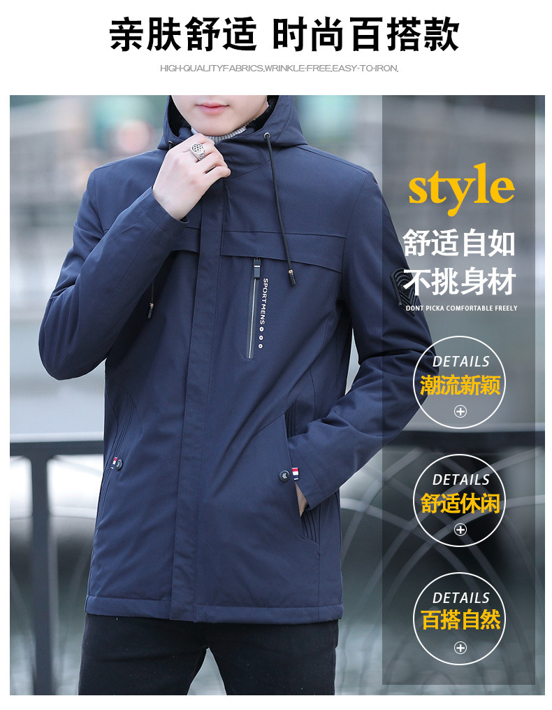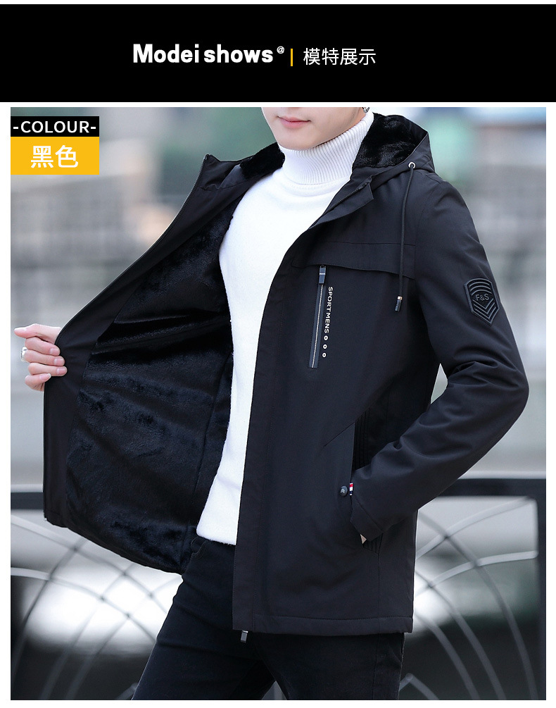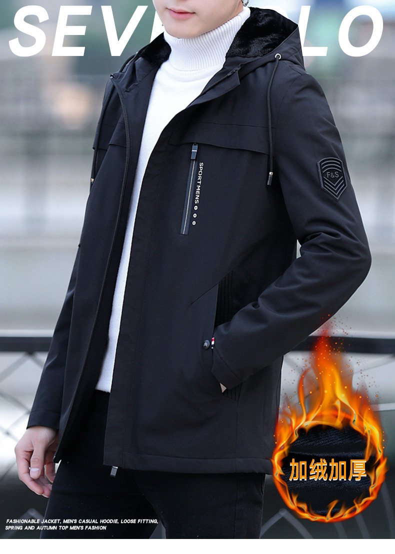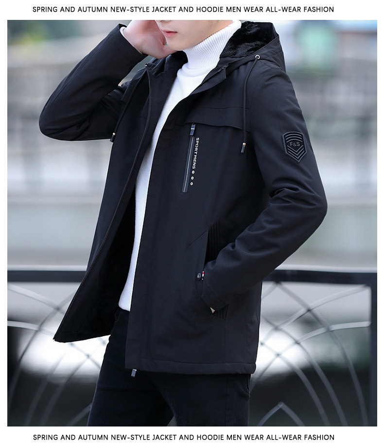 남자 자켓 코트 남자 가을과 겨울 느슨한 바람막이 남자 두건 남자 학생 겉옷 기모 따뜻한 남성 의류스토어 가기