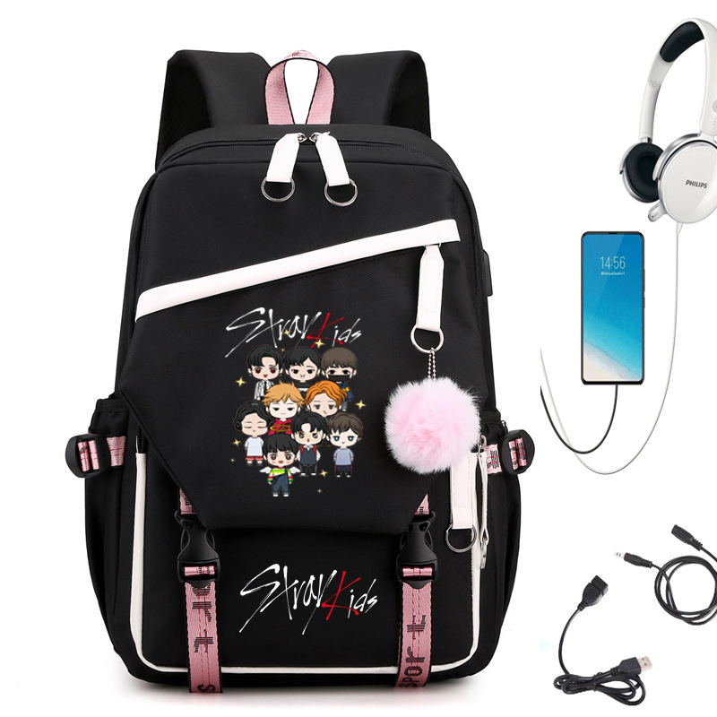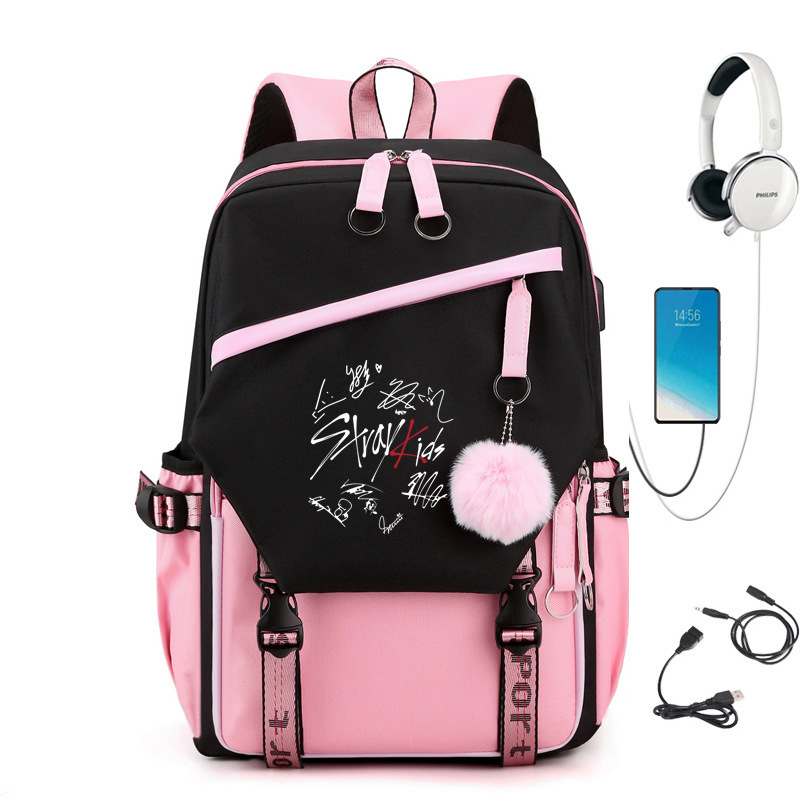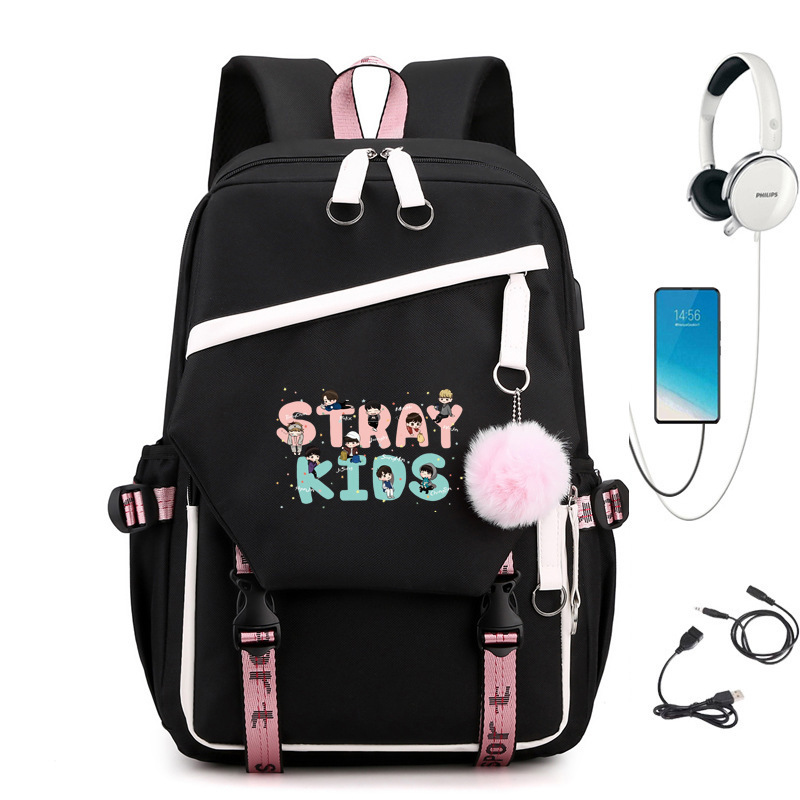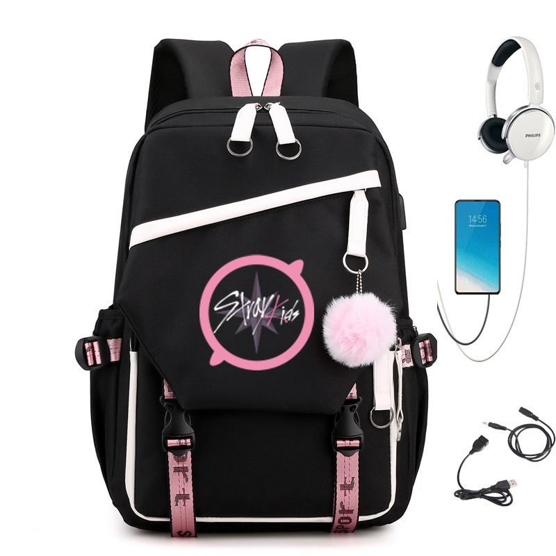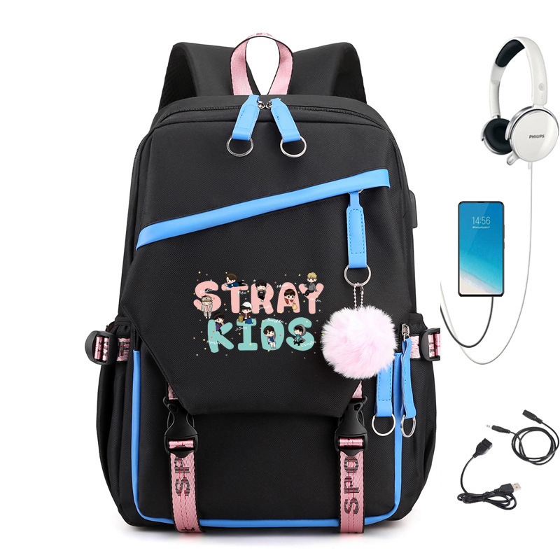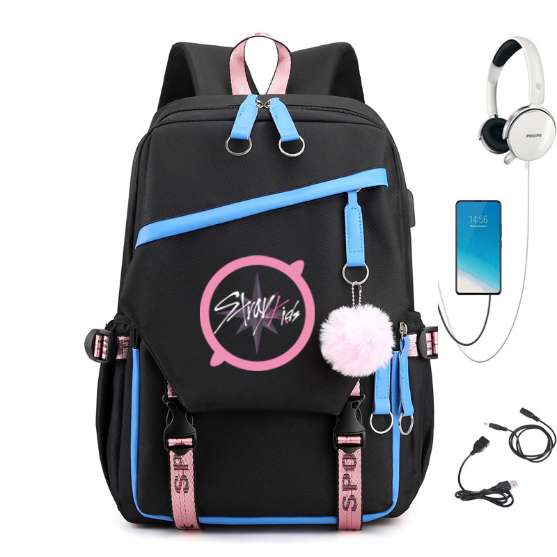 신형 스트레이 키즈 콤비네이션 동종 USB 백팩 스쿨백 한국식 학생 남녀 가방