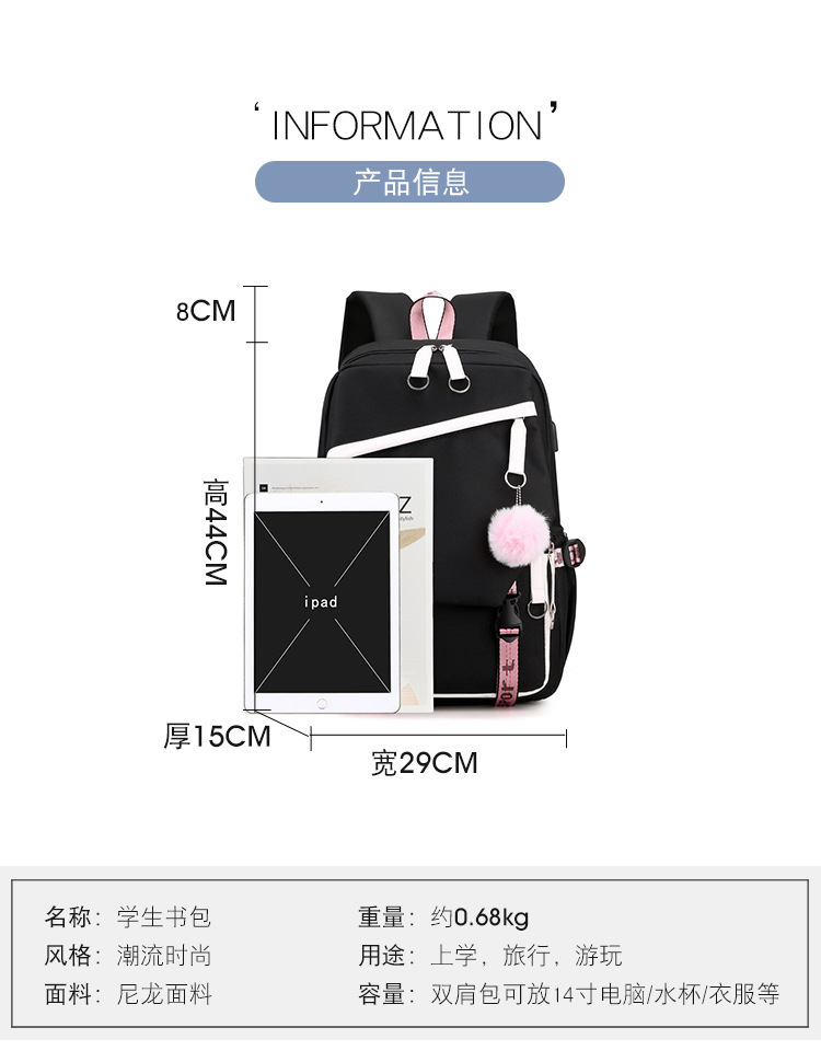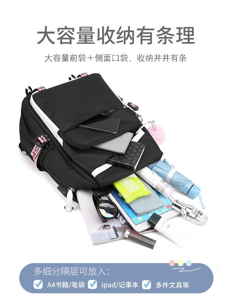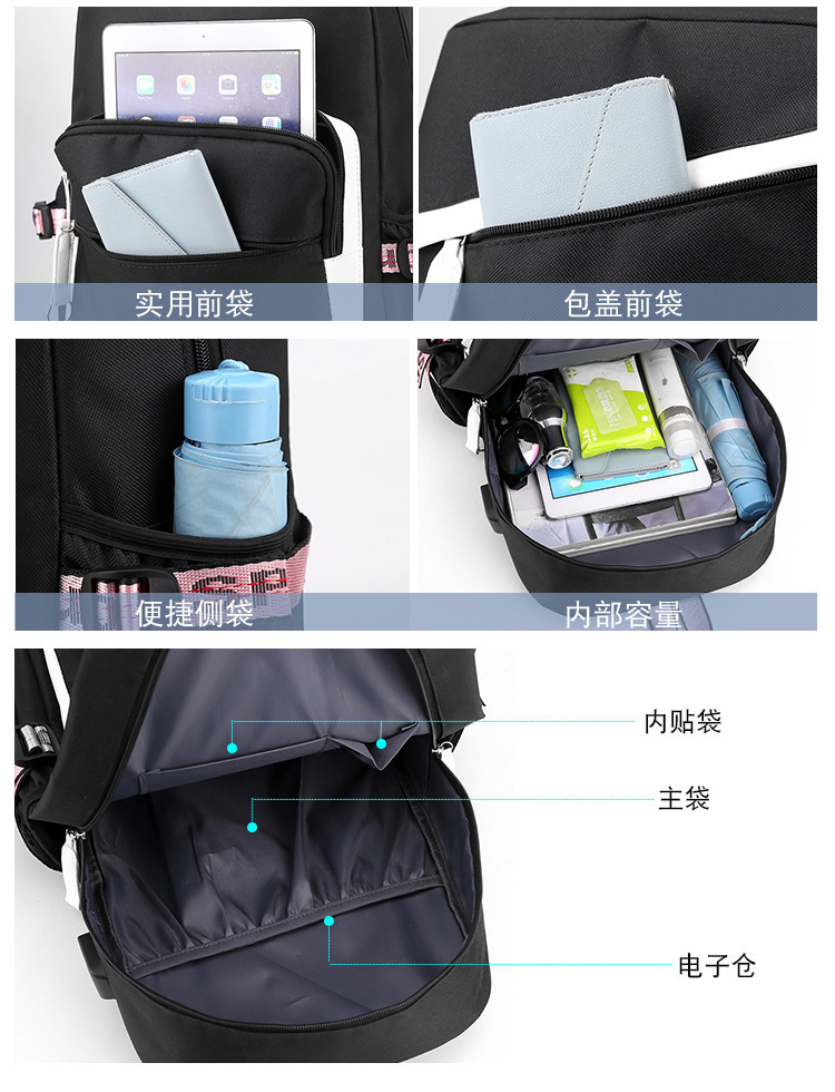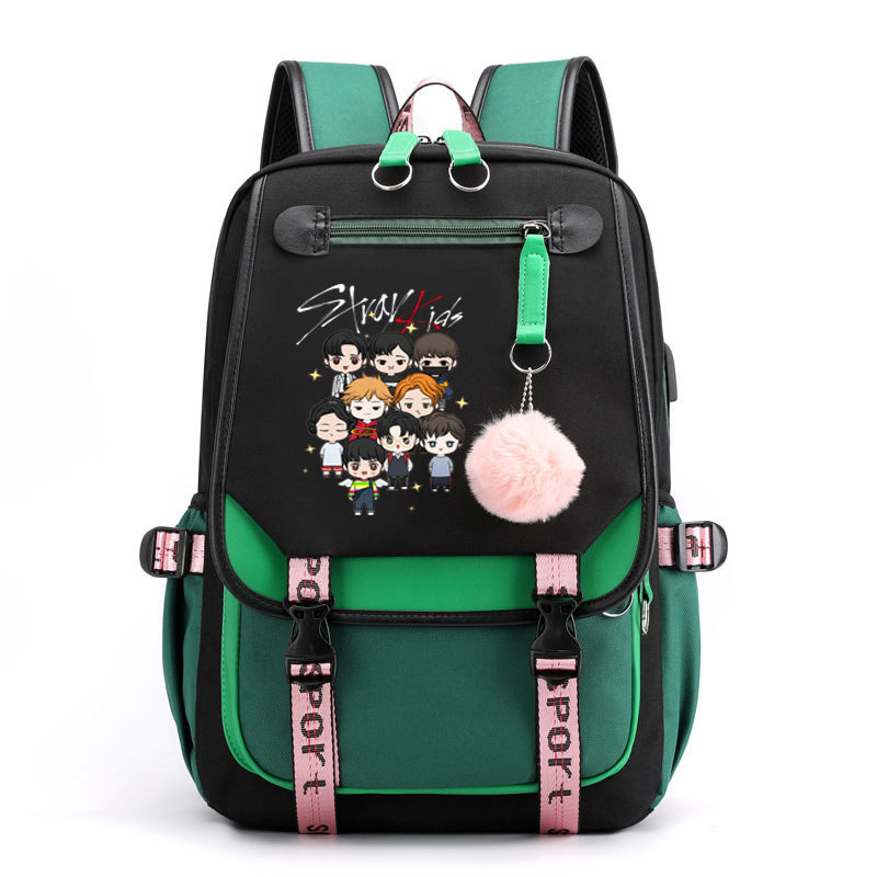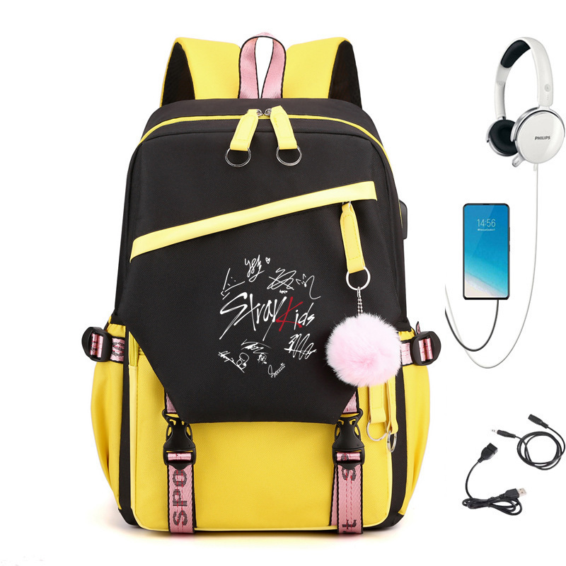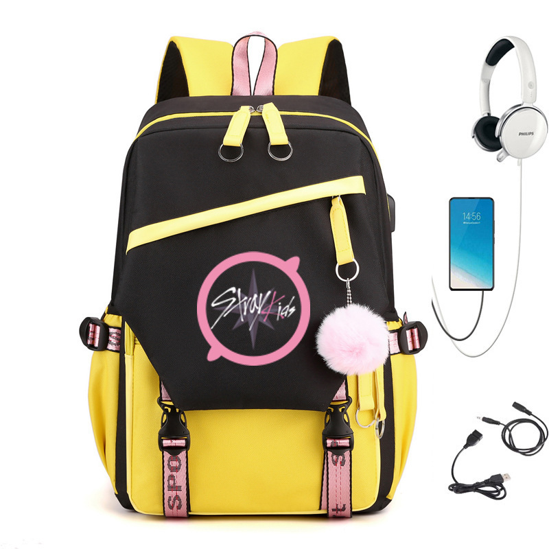 신형 스트레이 키즈 콤비네이션 동종 USB 백팩 스쿨백 한국식 학생 남녀 가방