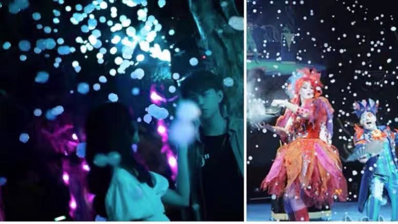 연기 거품 기계 무대 거품 기계 불꽃 놀이 거품 기계 결혼식 두 배 바퀴 거품 기계 연기 기계 LED 연기 거품 기계
