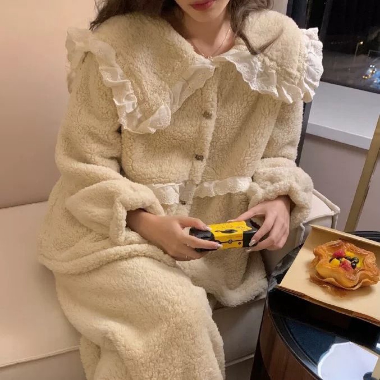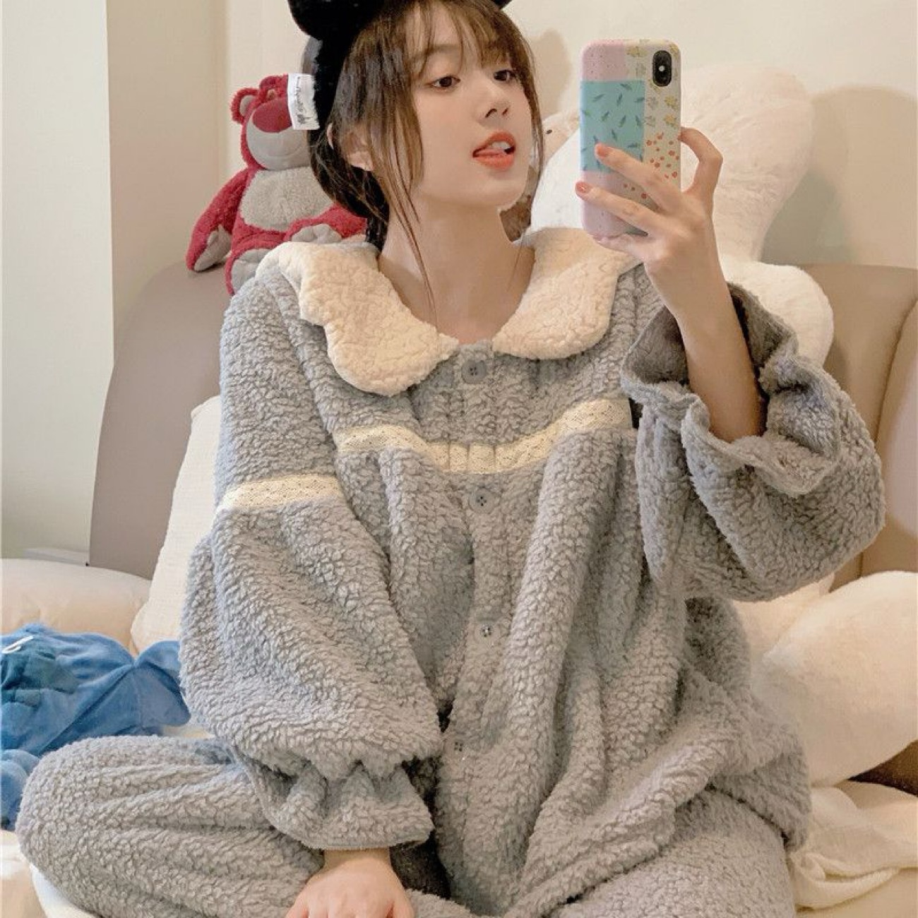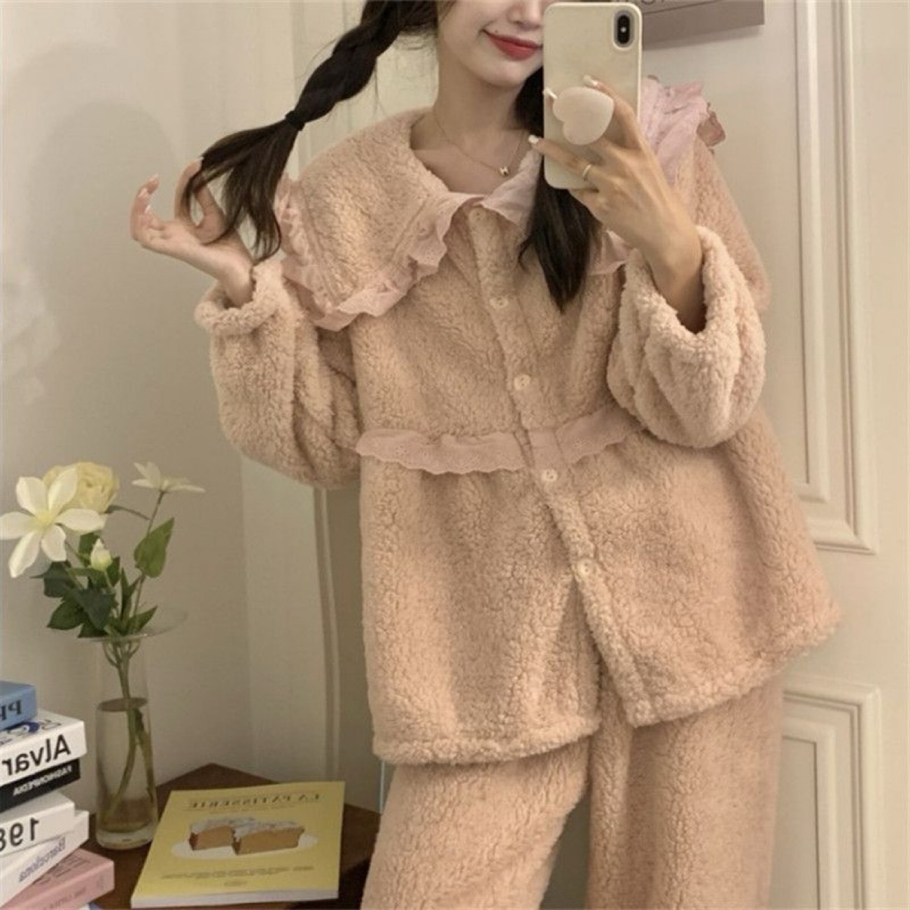 2025년 신상 여성용 잠옷 가을 겨울 두꺼운 벨벳 달콤하고 귀여운 코랄 벨벳 인터넷 인기 홈웨어 세트 해외 판매스토어 가기
