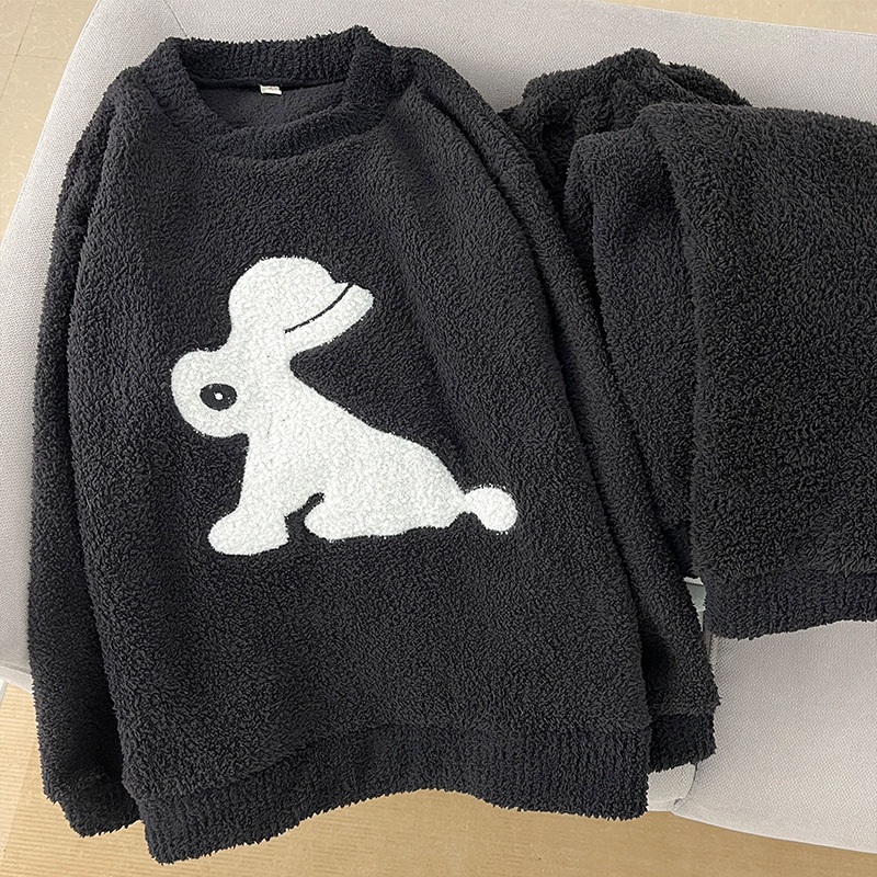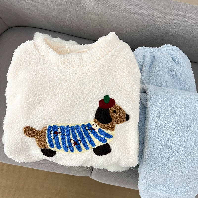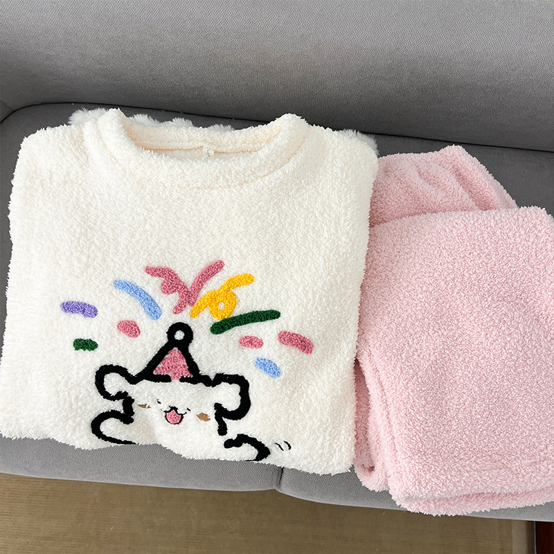 2025년 신상 여성용 잠옷 가을 겨울 두꺼운 벨벳 달콤하고 귀여운 코랄 벨벳 인터넷 인기 홈웨어 세트 해외 판매