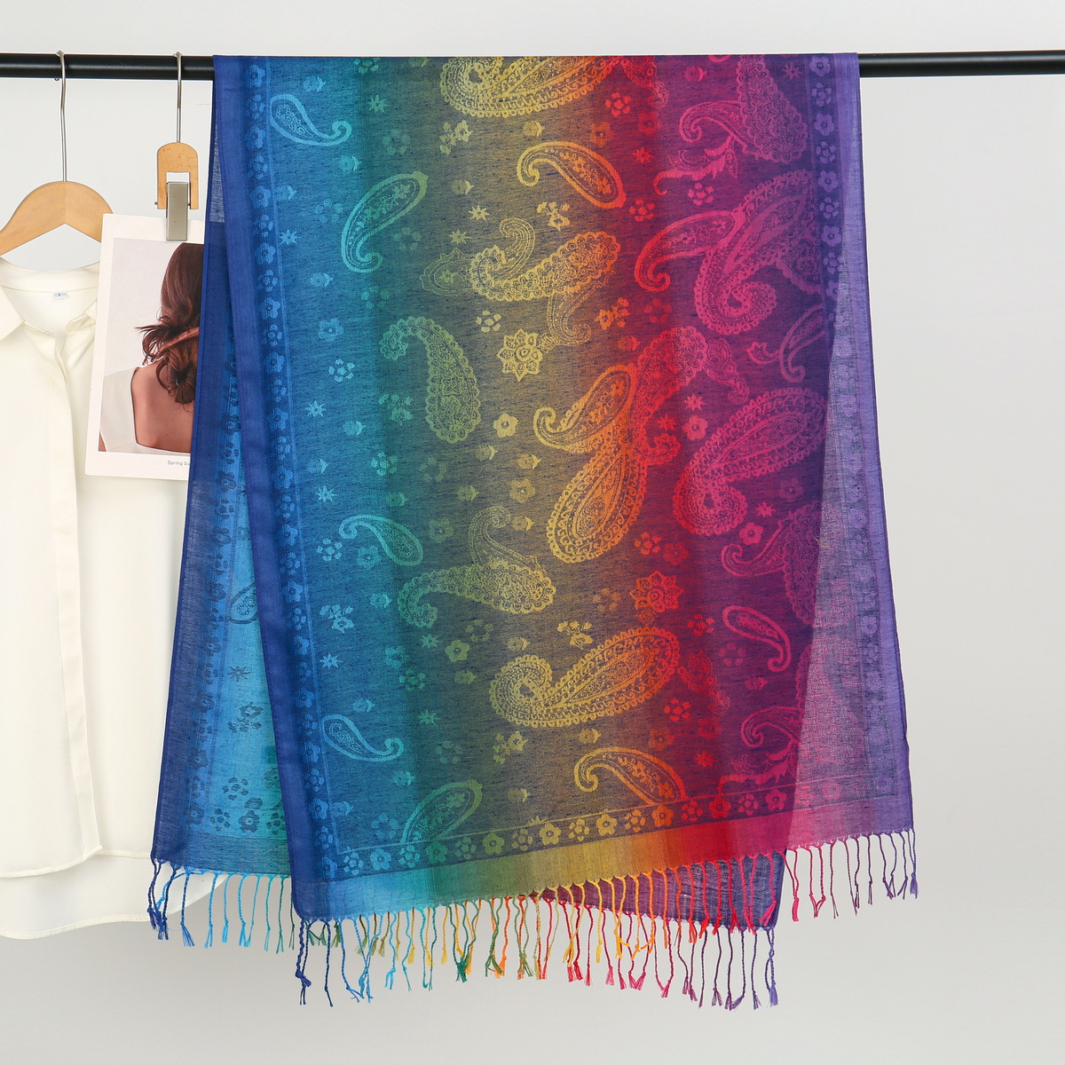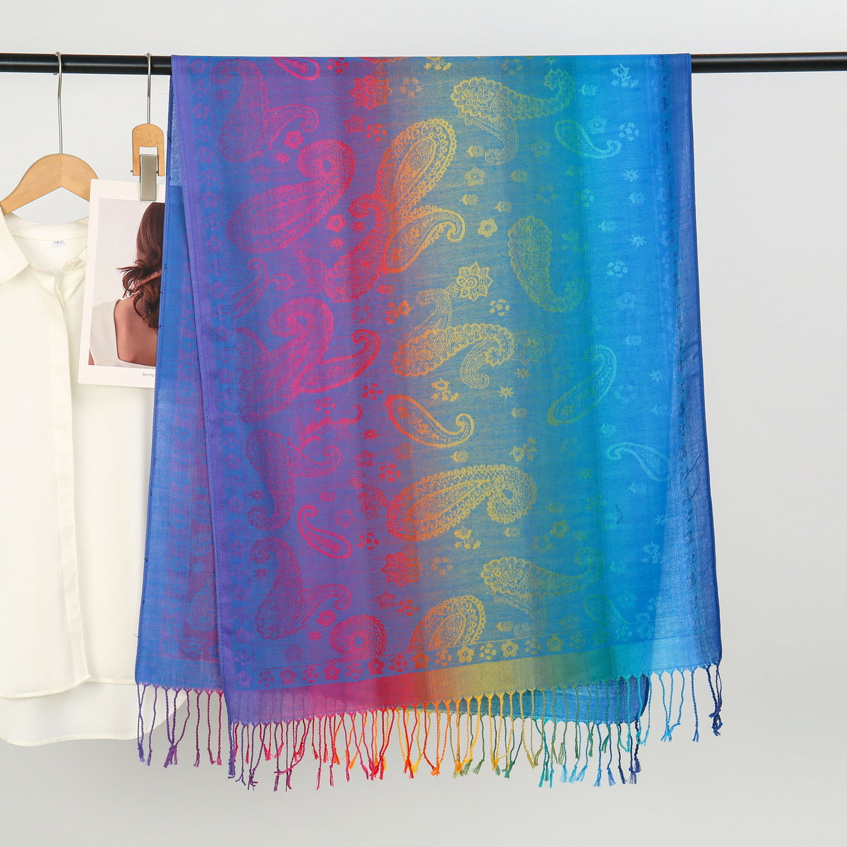 크로스보더 자카드 컬러풀 캐슈넛 패턴 롱 스카프 여행용 사진촬영 숄 겸용 여성용 에스닉 스타일 자외선 차단 믹스앤매치 스카프스토어 가기