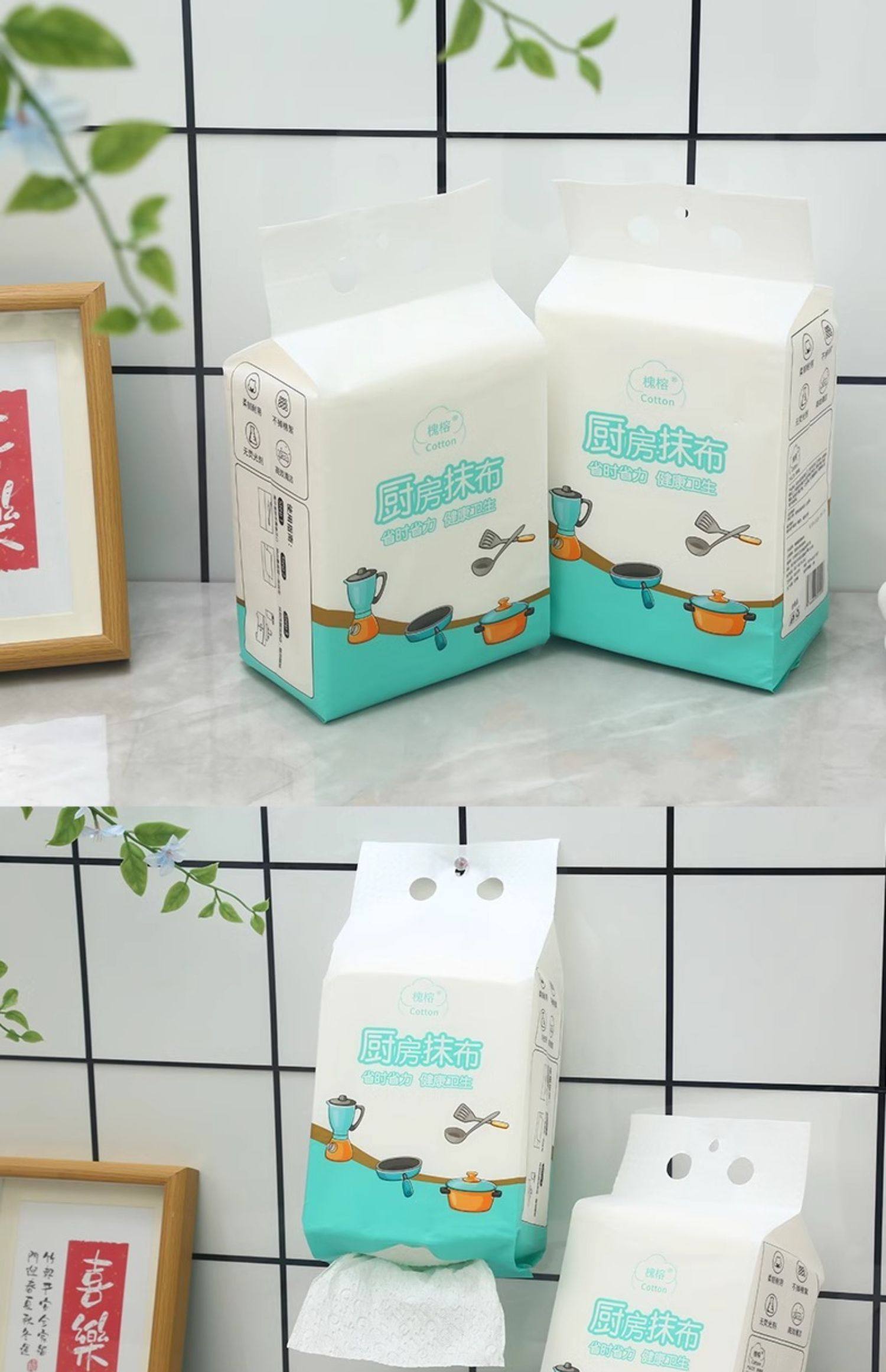 게으른 헝겊 일회용 주방 접시 수건 젖은 및 건식 이중 사용 두꺼운 교수형 오일 닦은 종이 타월 인출 가능스토어 가기