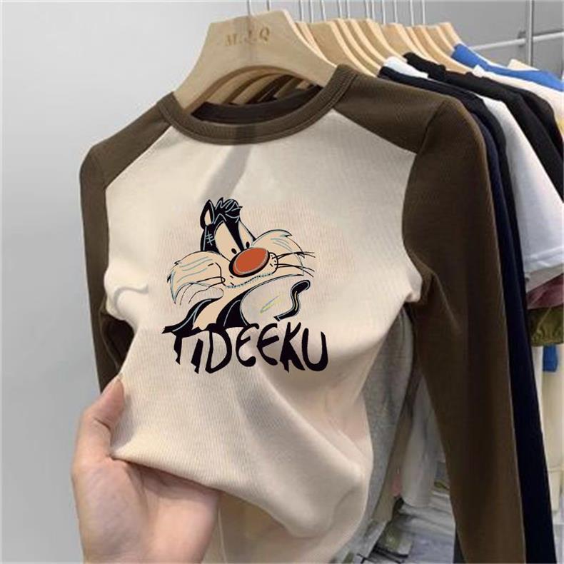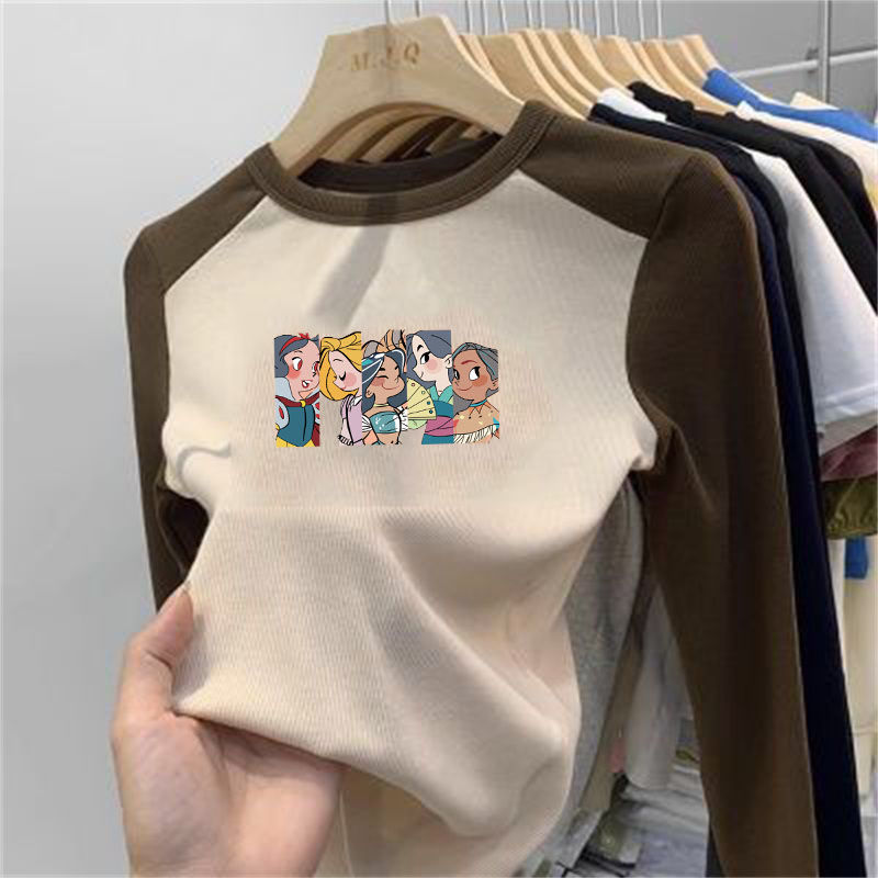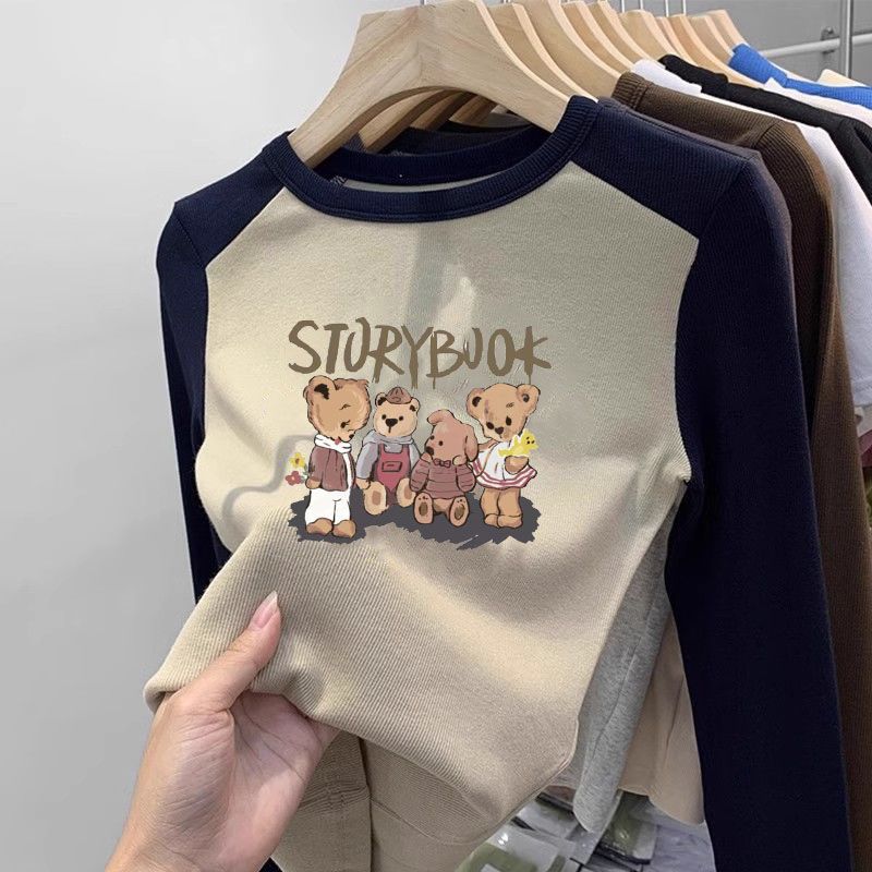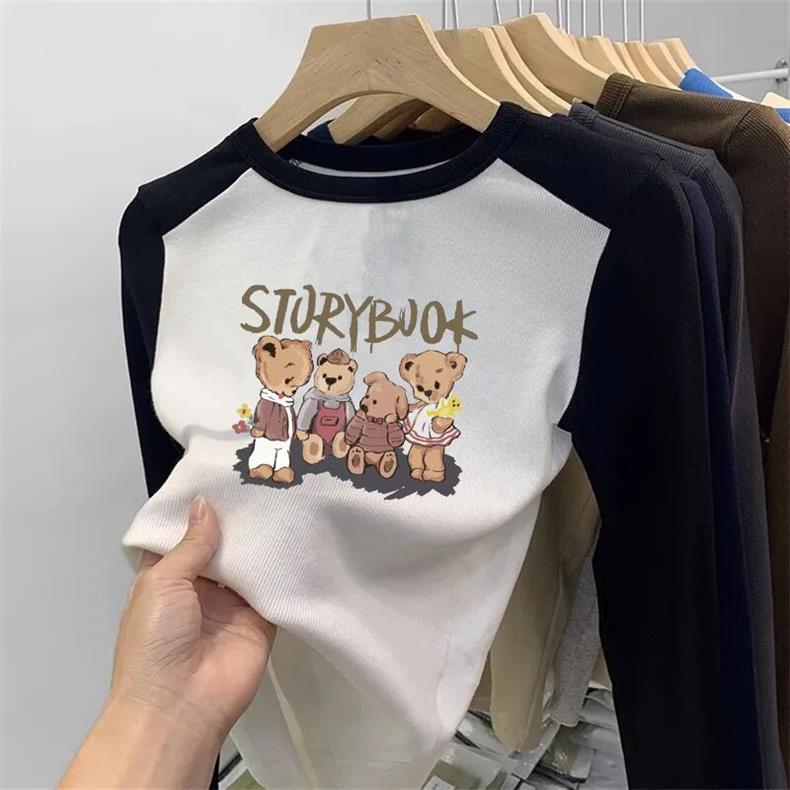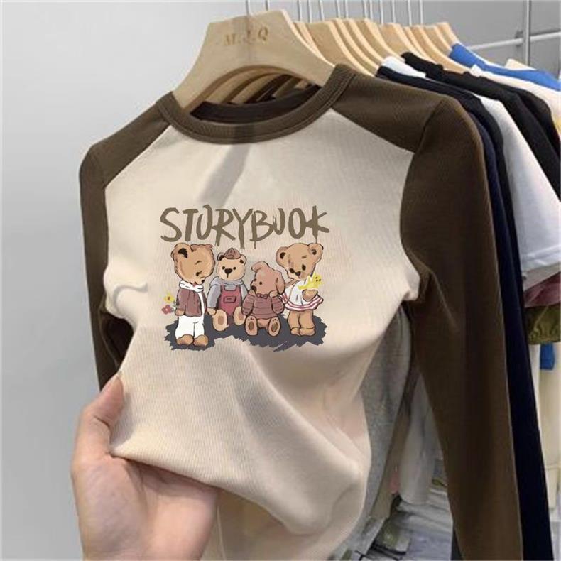 소녀 긴 소매 인쇄 티셔츠 2024 봄과 가을 새로운 어린이 기지 셔츠 가을과 겨울 소녀 스타일 내부 탑스토어 가기