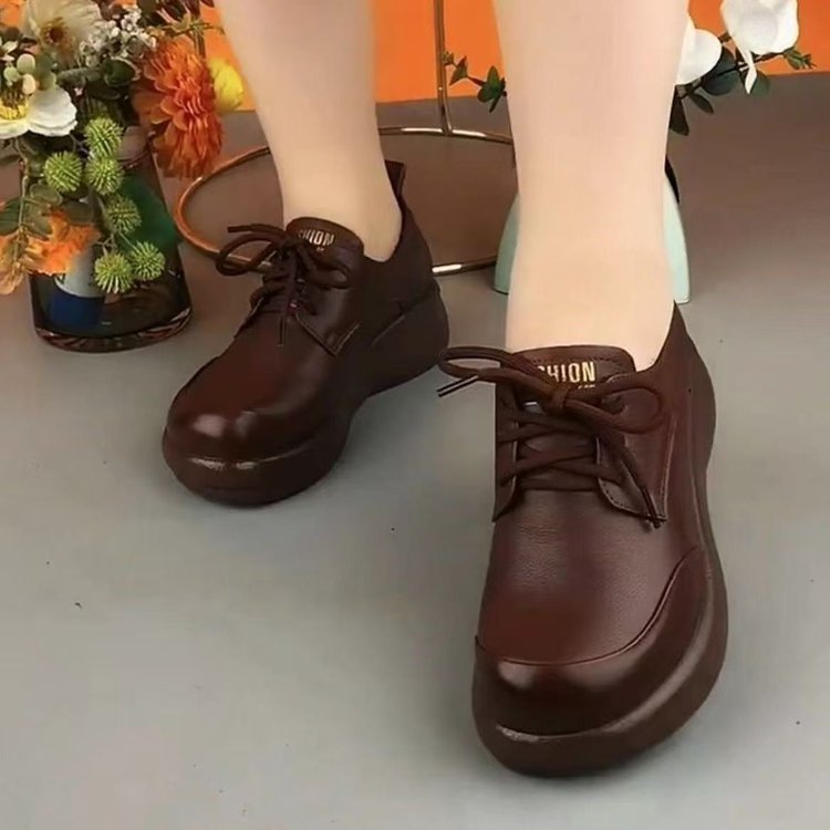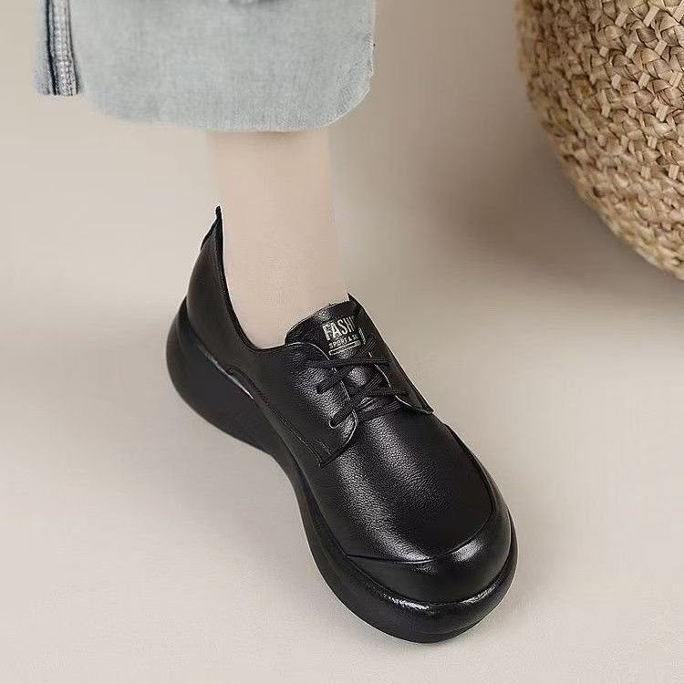 싱글 레이어 신발 여성용 머핀 두꺼운 밑창 2024 가을 최신 편안한 다용도 어머니 신발 라이트 미끄럼 방지 캐주얼 여성용 작은 가죽 신발스토어 가기