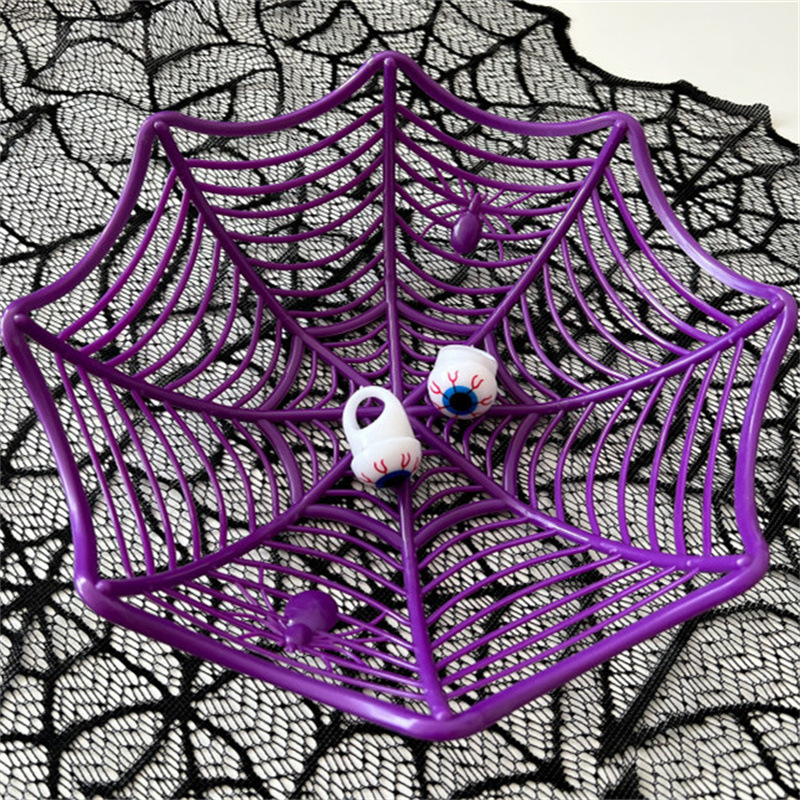 할로윈 장식 스파이더 웹 과일 바구니 배열 파티 캔디 블루 소품 플라스틱 장식 플레이트 ktv 바 장식품