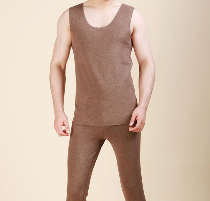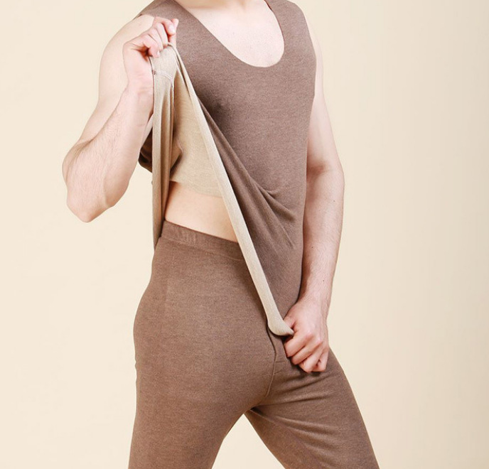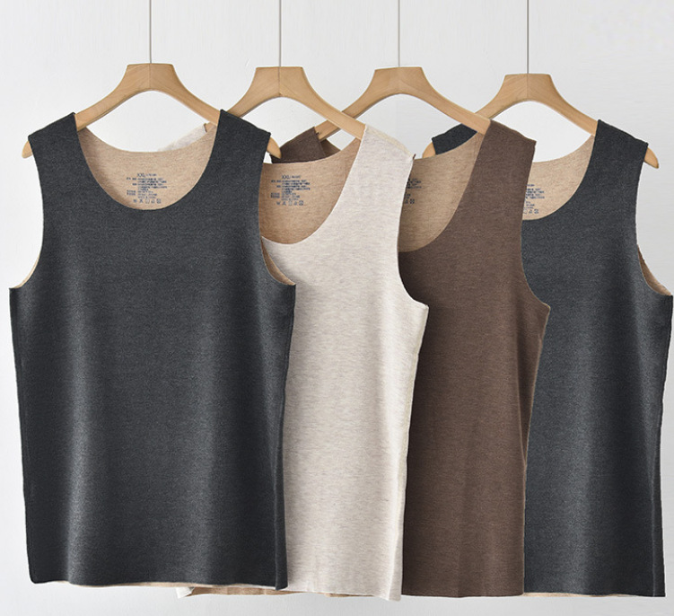 남성용 벨벳 울 실크 원활한 열 조끼 둥근 목 슬림형 양면 샌딩 바닥 민소매 탑스토어 가기