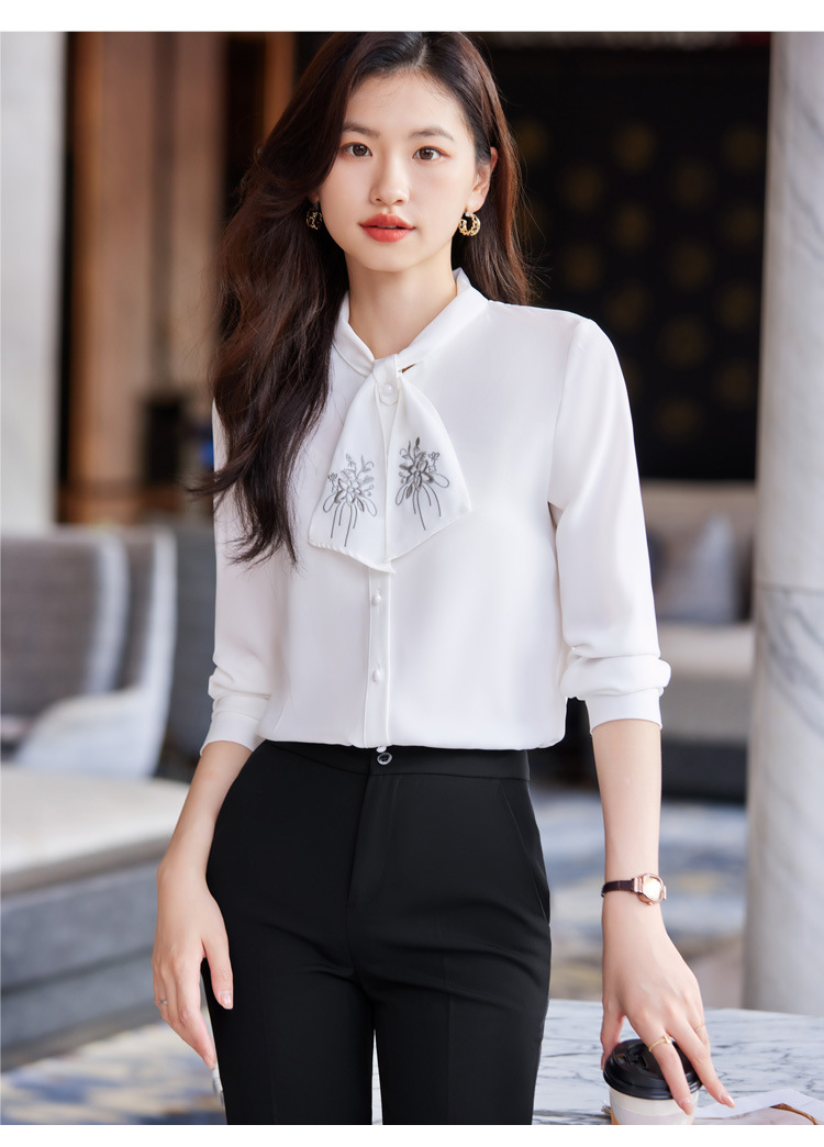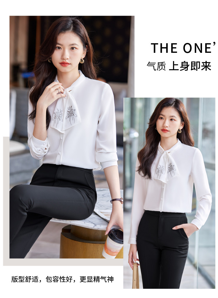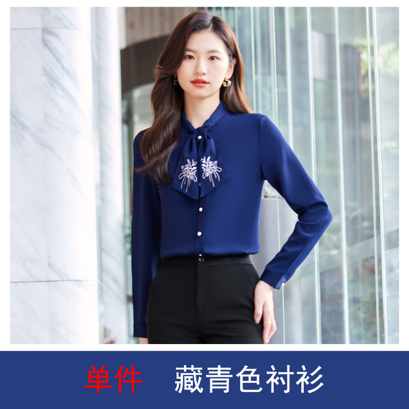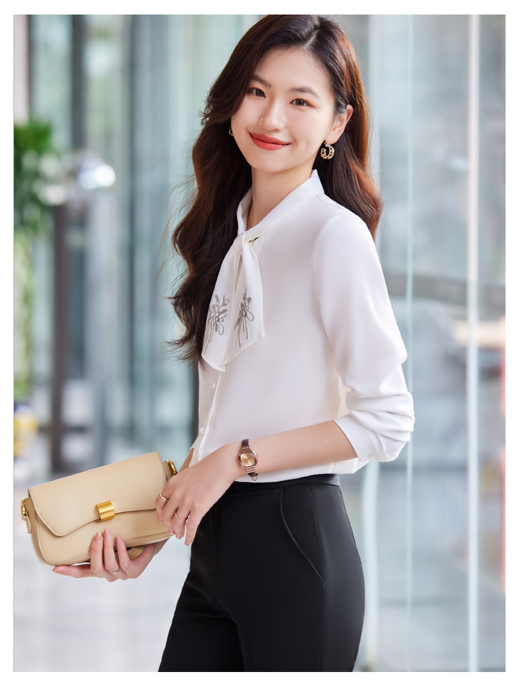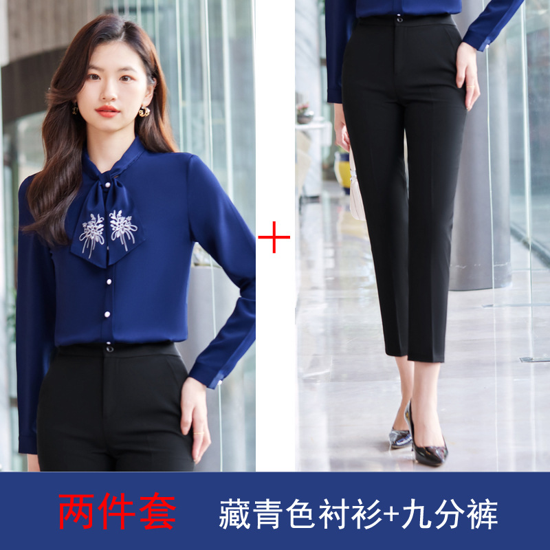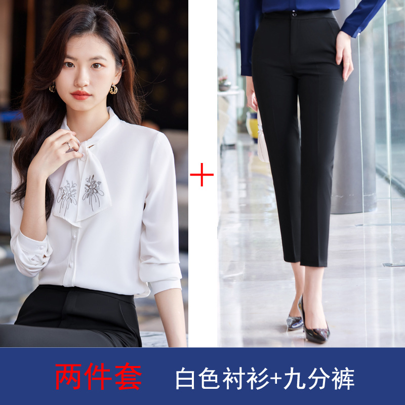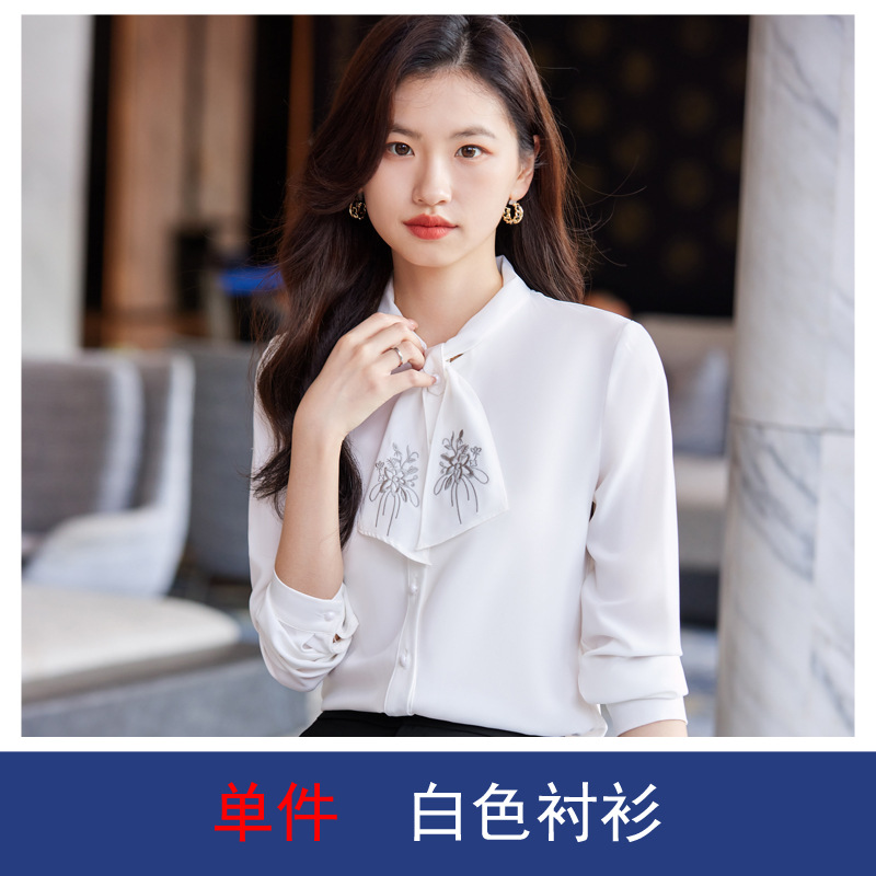활 셔츠 여성의 긴 소매 봄 및 가을 새로운 패션 비즈니스 우아한 캐주얼 슬림 핏 쉬폰 화이트 셔츠 세트 착용스토어 가기