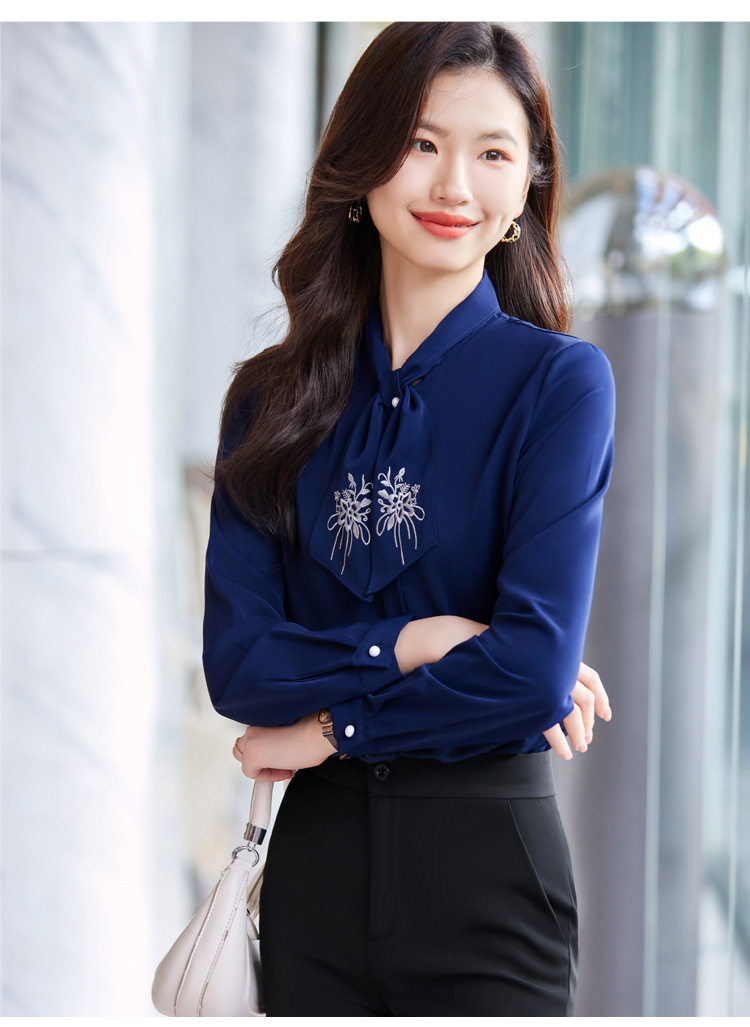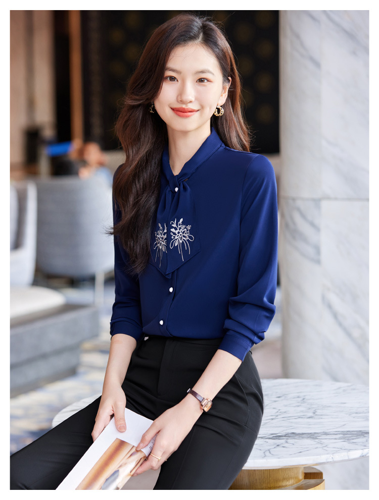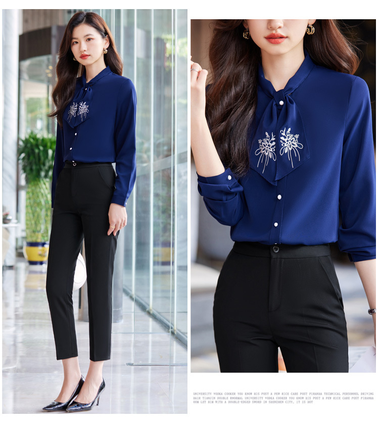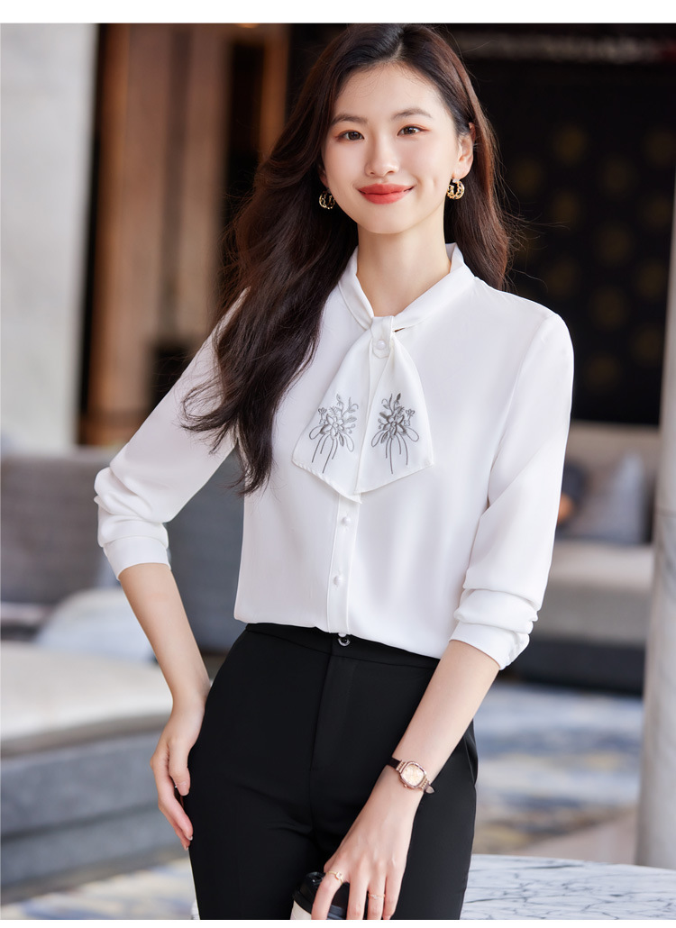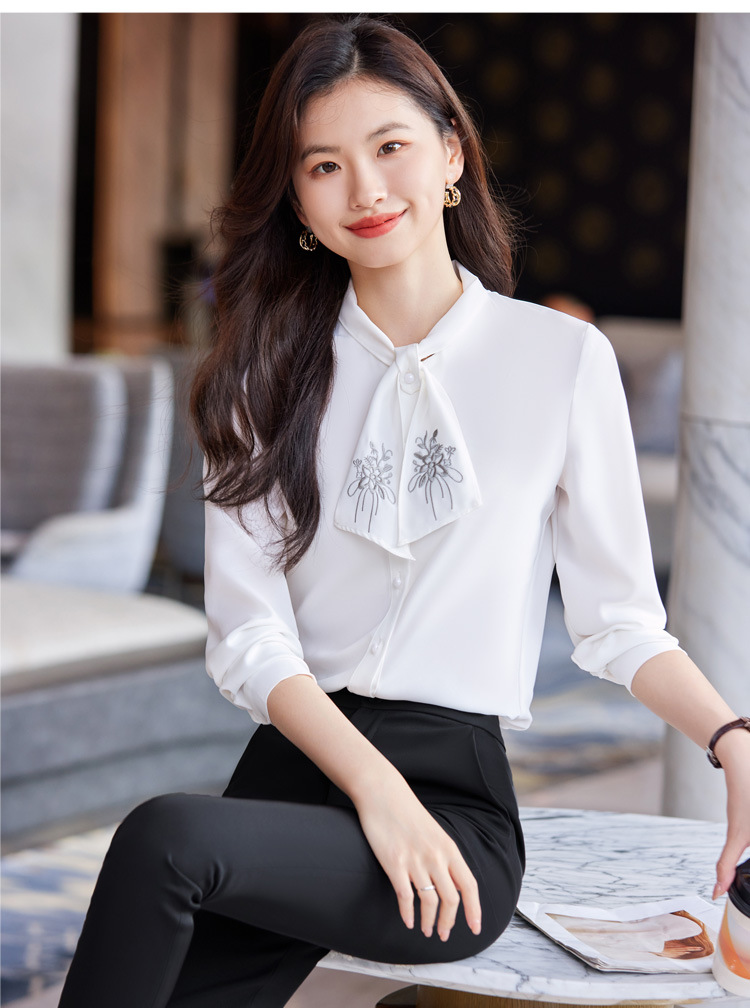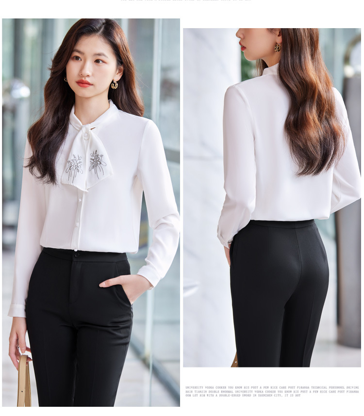 활 셔츠 여성의 긴 소매 봄 및 가을 새로운 패션 비즈니스 우아한 캐주얼 슬림 핏 쉬폰 화이트 셔츠 세트 착용스토어 가기