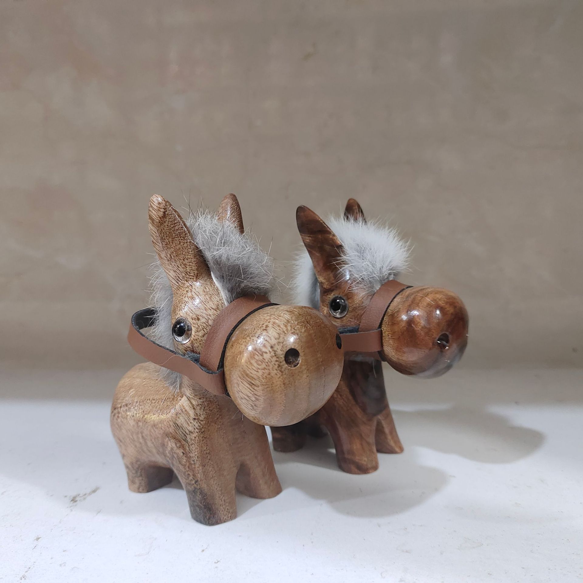 참나무 조각으로 부자가 되고 걱정 없이 행복해질 수 있습니다. 작은 당나귀 장식품. 휴양지에서 인기 있는 부티크 당나귀. 목수 당나귀.스토어 가기