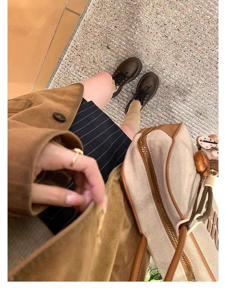 포도 엄마의 영국 스타일 레이스 업 두껍게 가열 된 두꺼운 단독 더비 신발 라운드 발가락 정품 가죽 신발 여성의 가을과 겨울스토어 가기