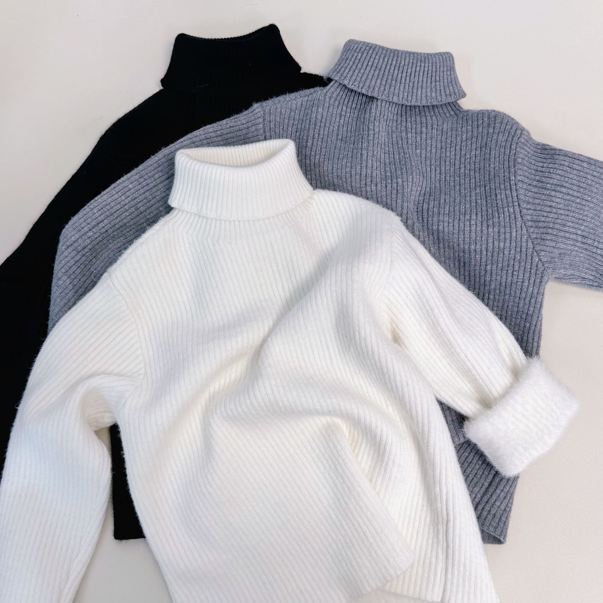 한국 어린이 가을, 겨울 소년과 소녀를위한 올인원 벨벳 따뜻한 스웨터 가을, 겨울 아기 소녀를위한 한국식 터틀넥 셔츠