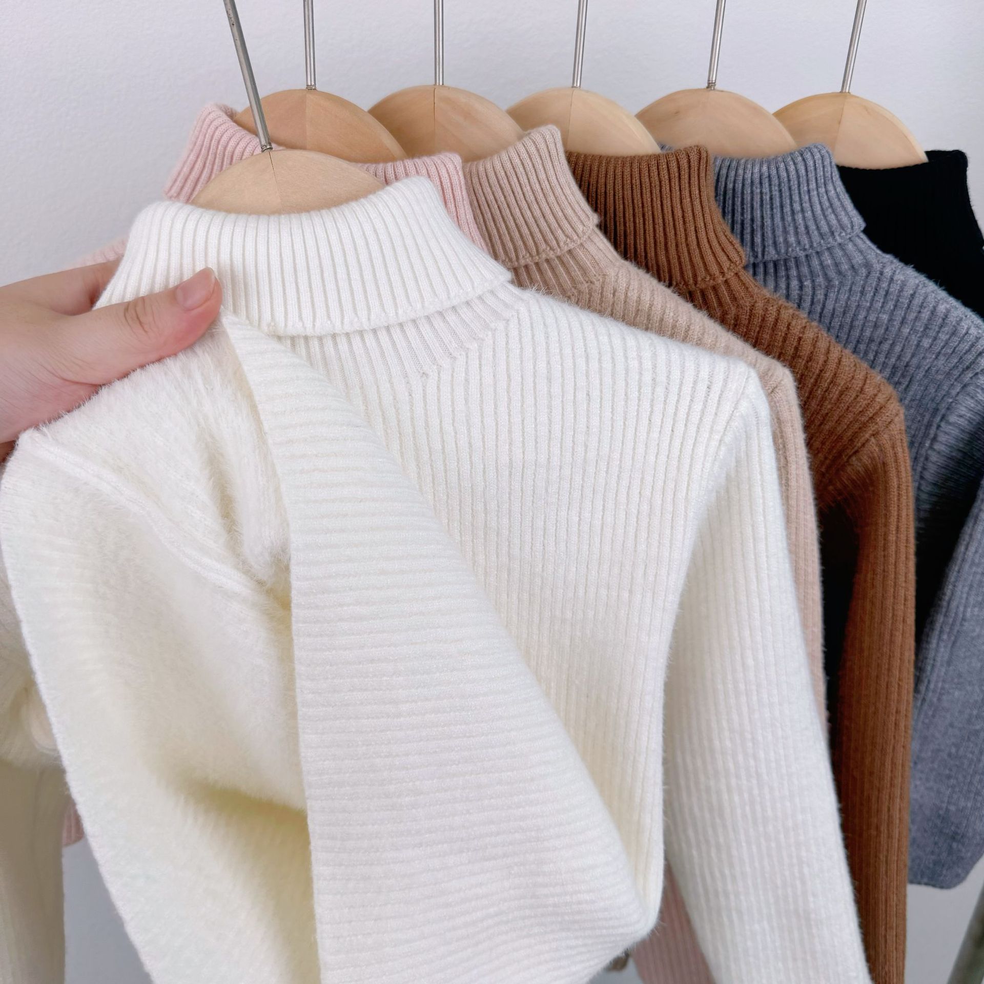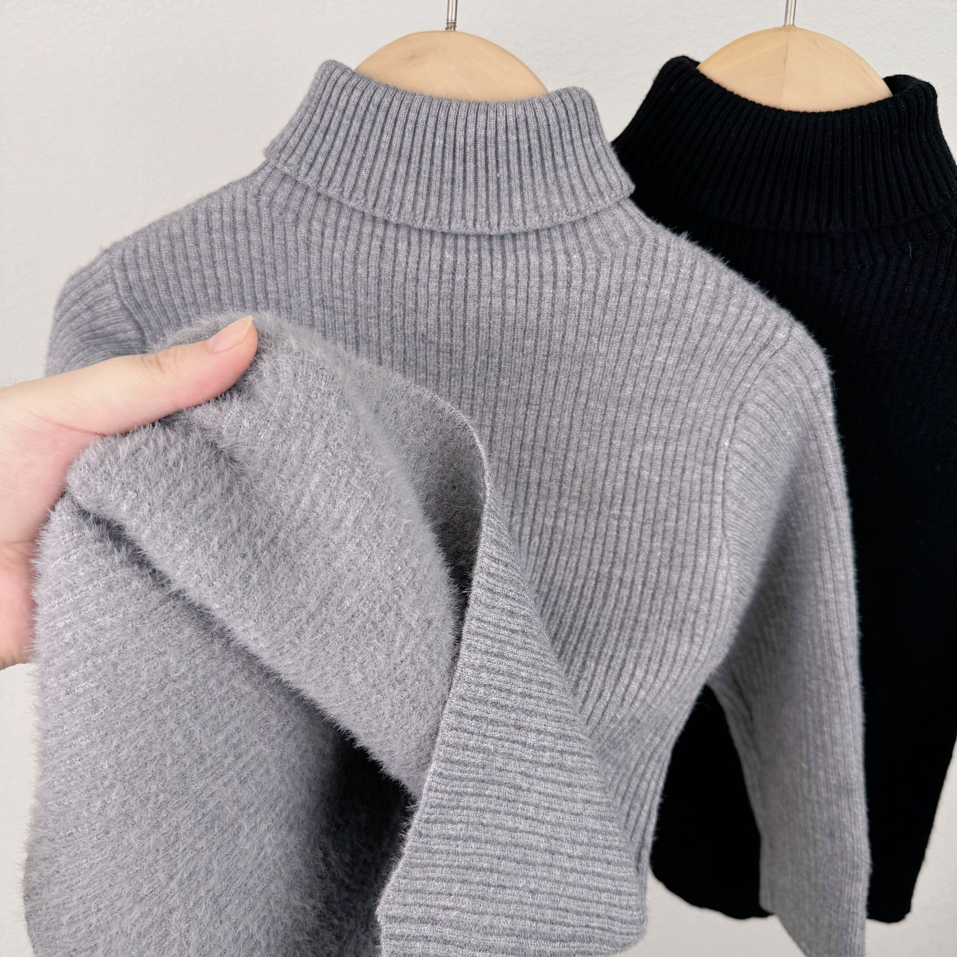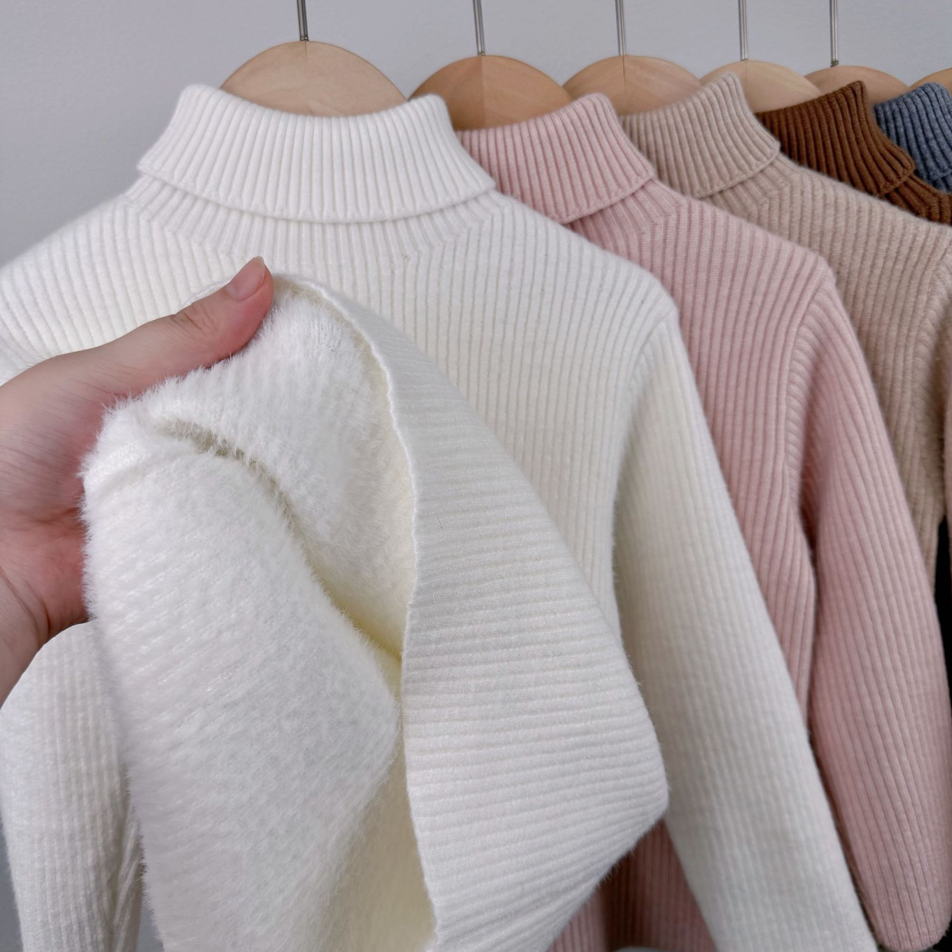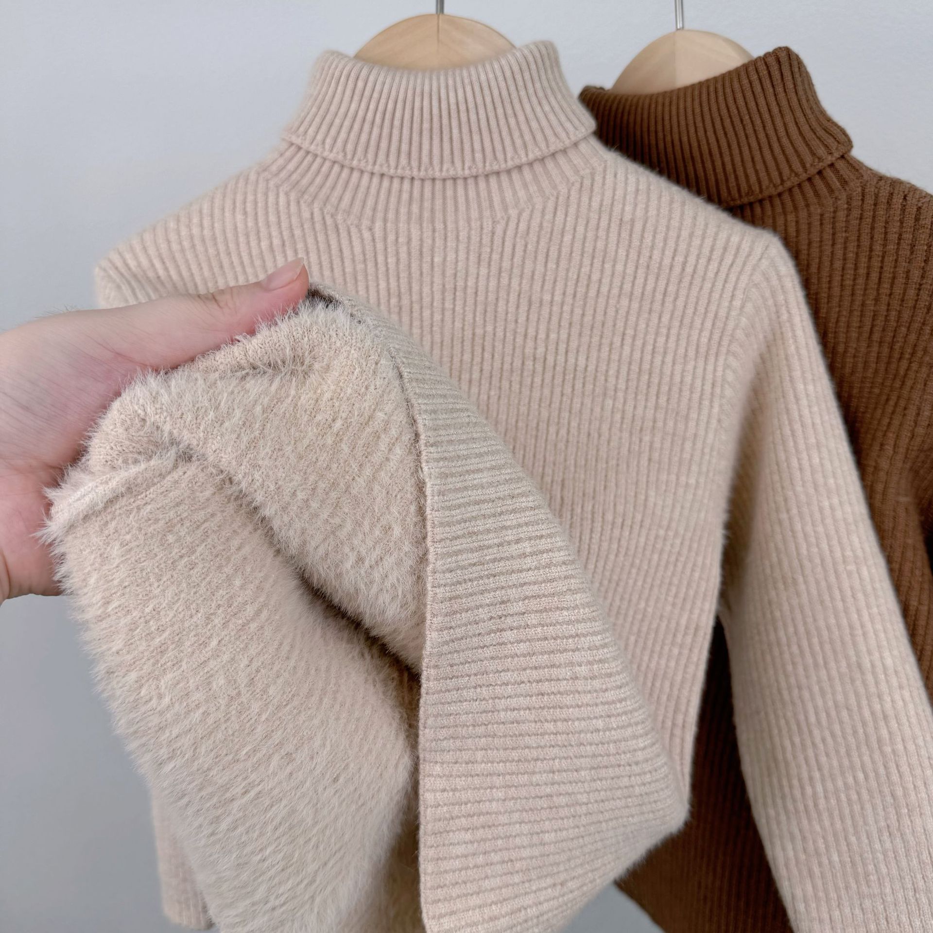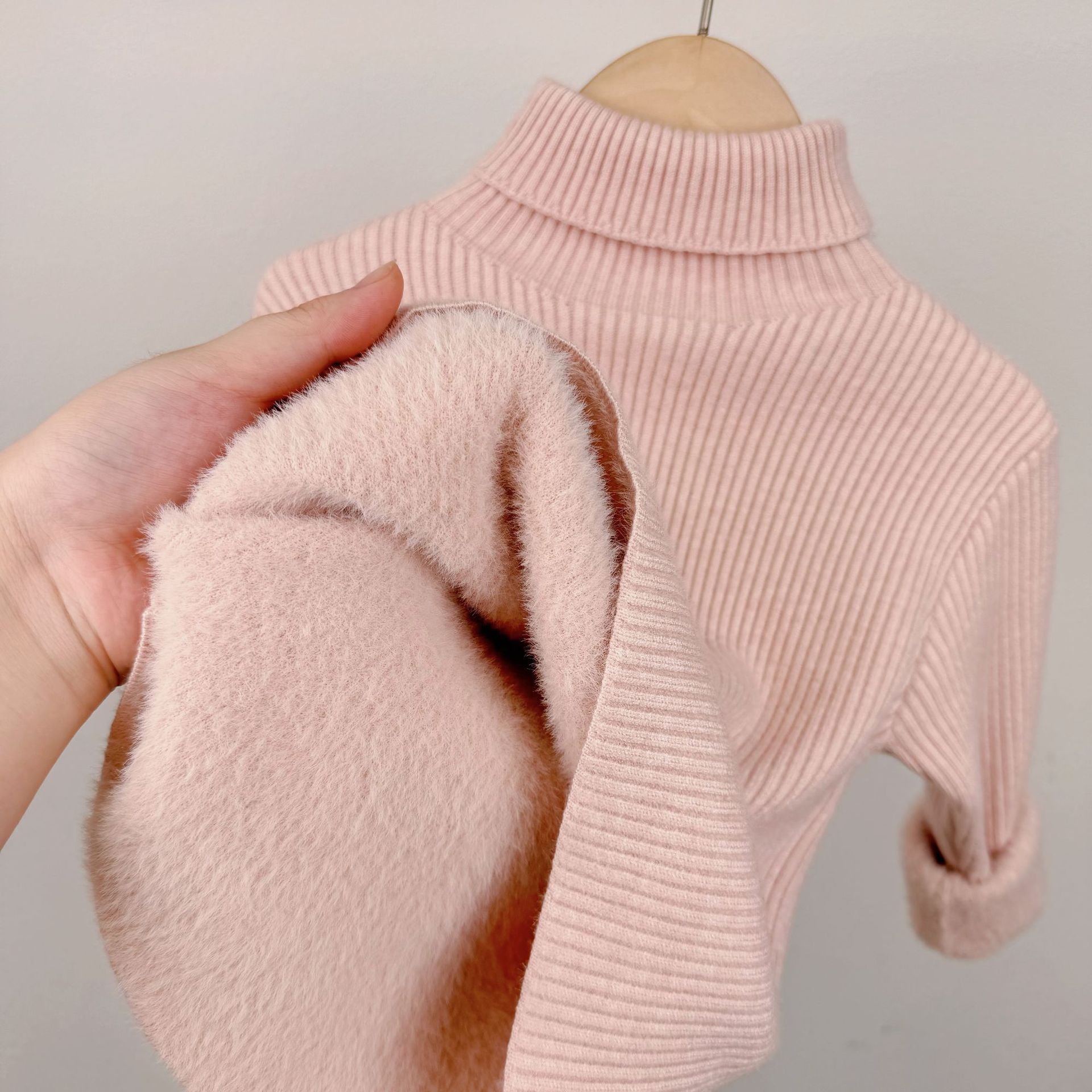 한국 어린이 가을, 겨울 소년과 소녀를위한 올인원 벨벳 따뜻한 스웨터 가을, 겨울 아기 소녀를위한 한국식 터틀넥 셔츠스토어 가기