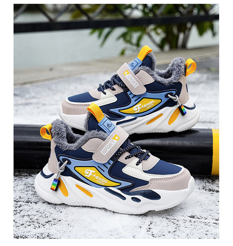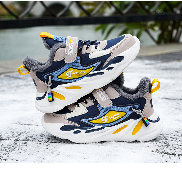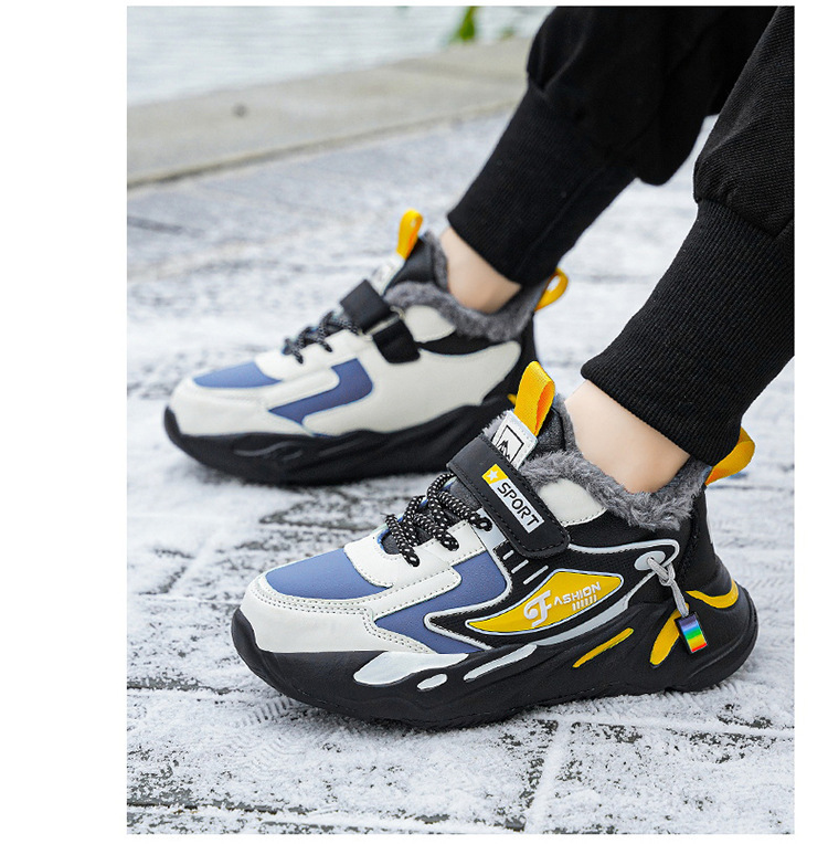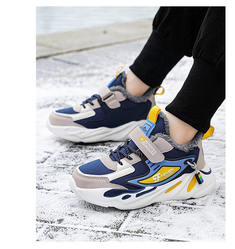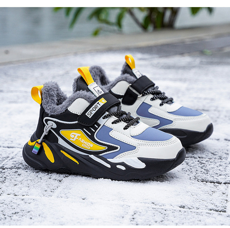 어린이 신발 겨울 기모 따뜻한 코튼 신발 소녀와 학생을위한 어린이 소년 캐주얼 러닝 슈즈 벨크로