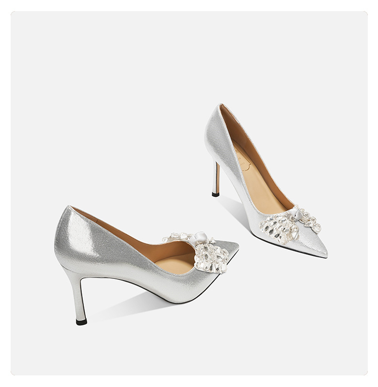 708-B71 웨딩 신발 새로운 프랑스 크리스탈 공주 실버 라인스톤 활 하이힐 메인 웨딩 신부 신발스토어 가기