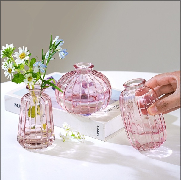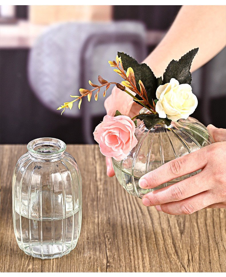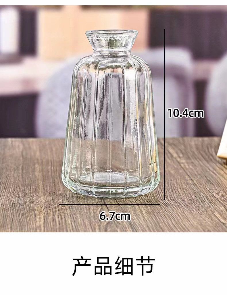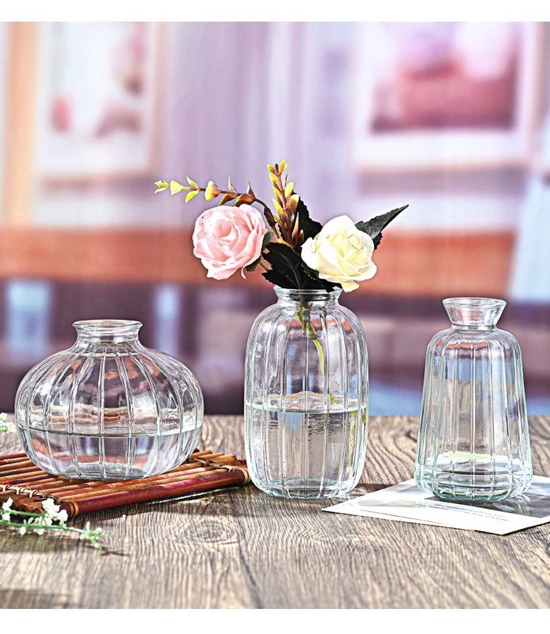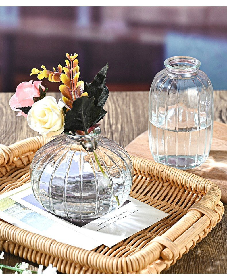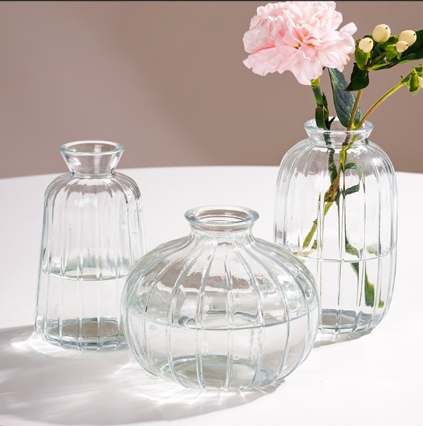 투명 작은 신선한 꽃병 직선 라운드 미세 입 미니 유리 꽃 차 테이블 차 테이블 장식품 제조 업체 도매