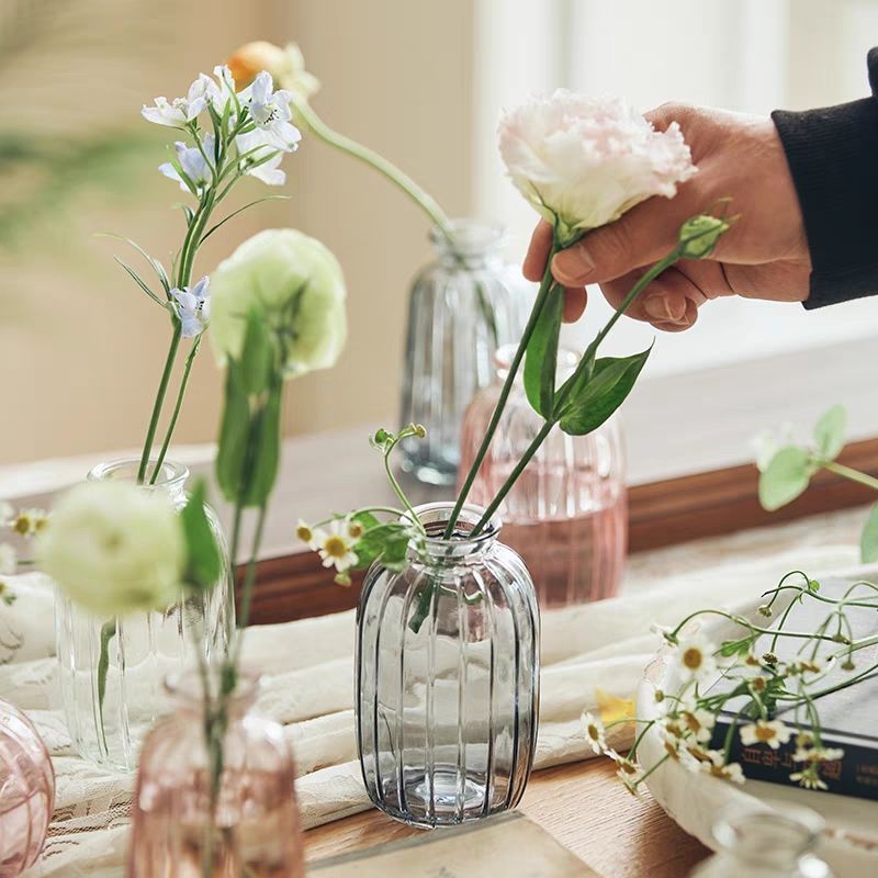 투명 작은 신선한 꽃병 직선 라운드 미세 입 미니 유리 꽃 차 테이블 차 테이블 장식품 제조 업체 도매스토어 가기