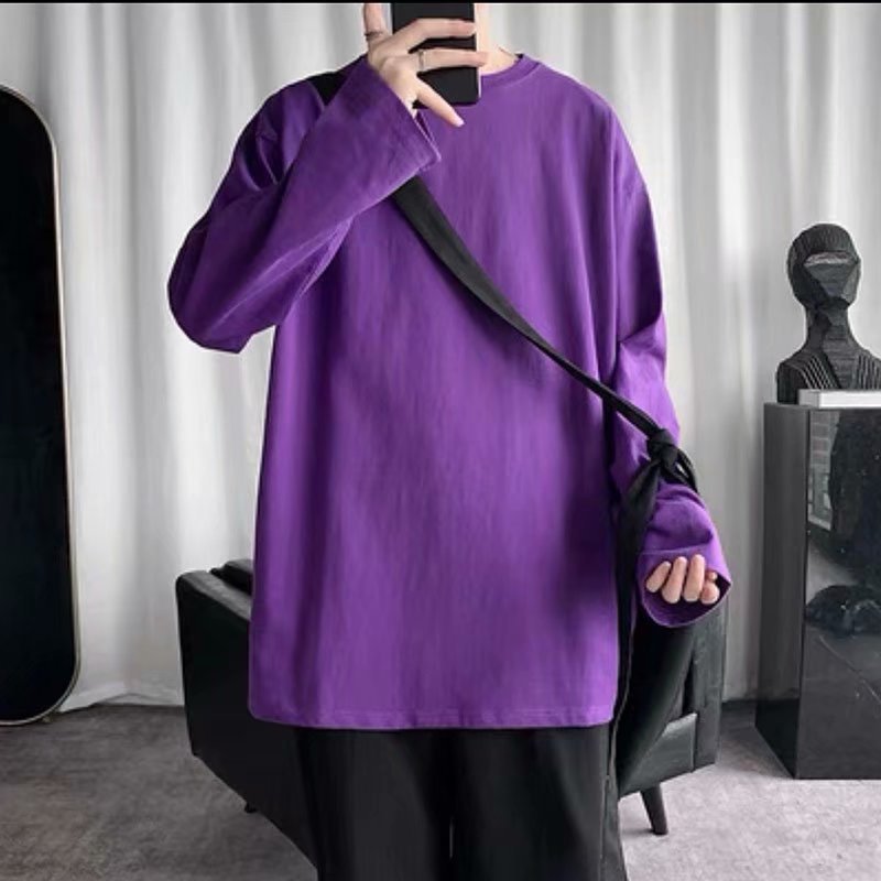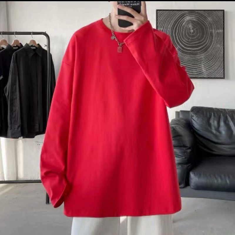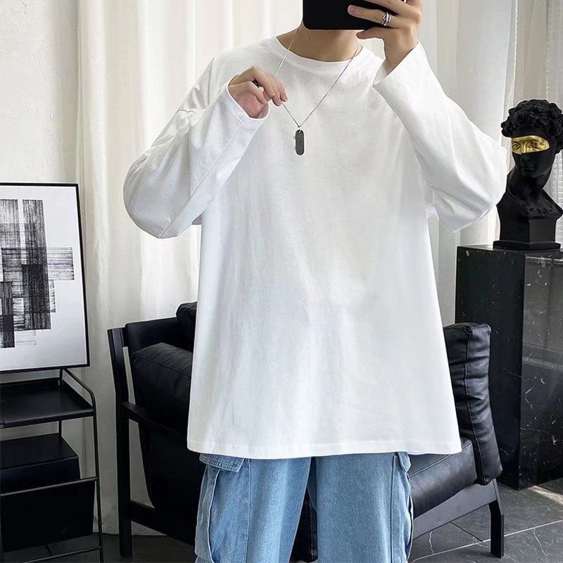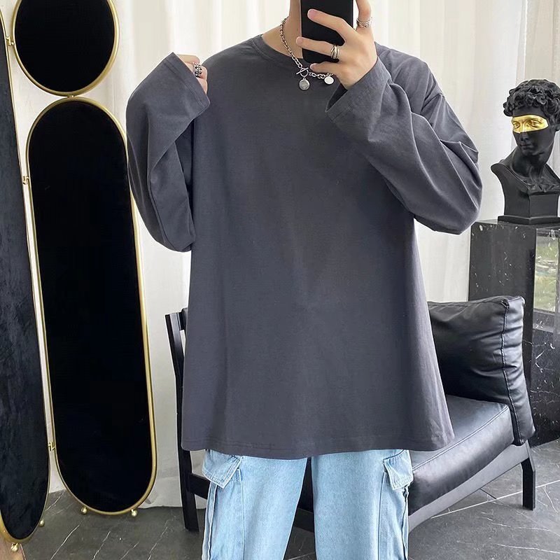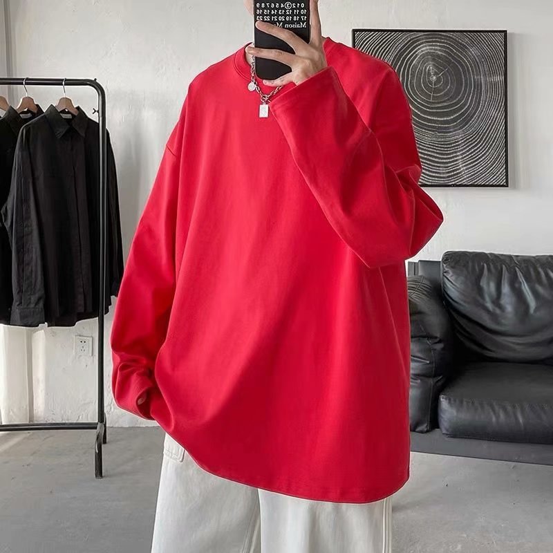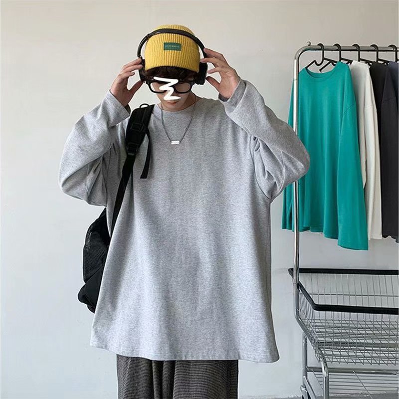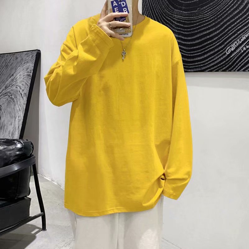 둥근 목 가을 긴 소매 느슨한 봄과 가을 패션 브랜드 인스 타 그램 스타일 솔리드 컬러베이스 탑 캐주얼 티셔츠 올 매치 뉴 스타일스토어 가기