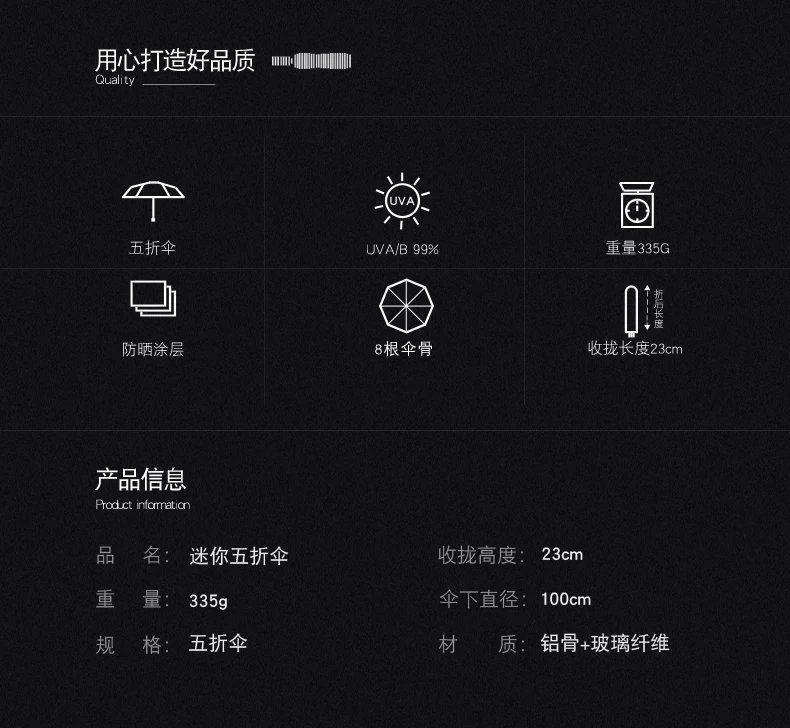 완전 자동 5 배 우산 8 본 미니 우산 초소형 완전 자동 경량 접이식 맑고 비오는 미니 싱글 완전 자동 우산