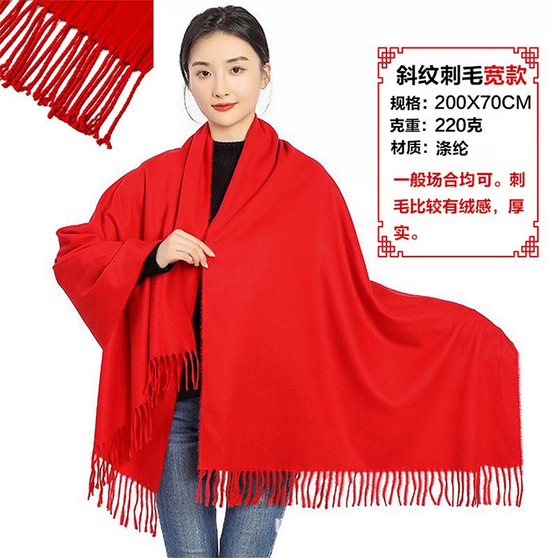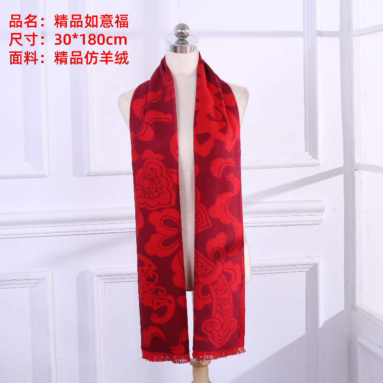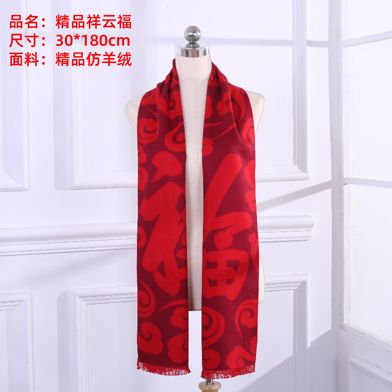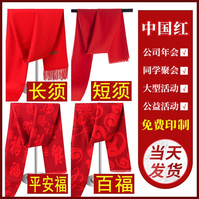 빨간 스카프 연례 회의 맞춤 로고 가을과 겨울 붉은 캐시미어 스카프 겨울 스카프 도매 선물 상자 따뜻한 목도리
