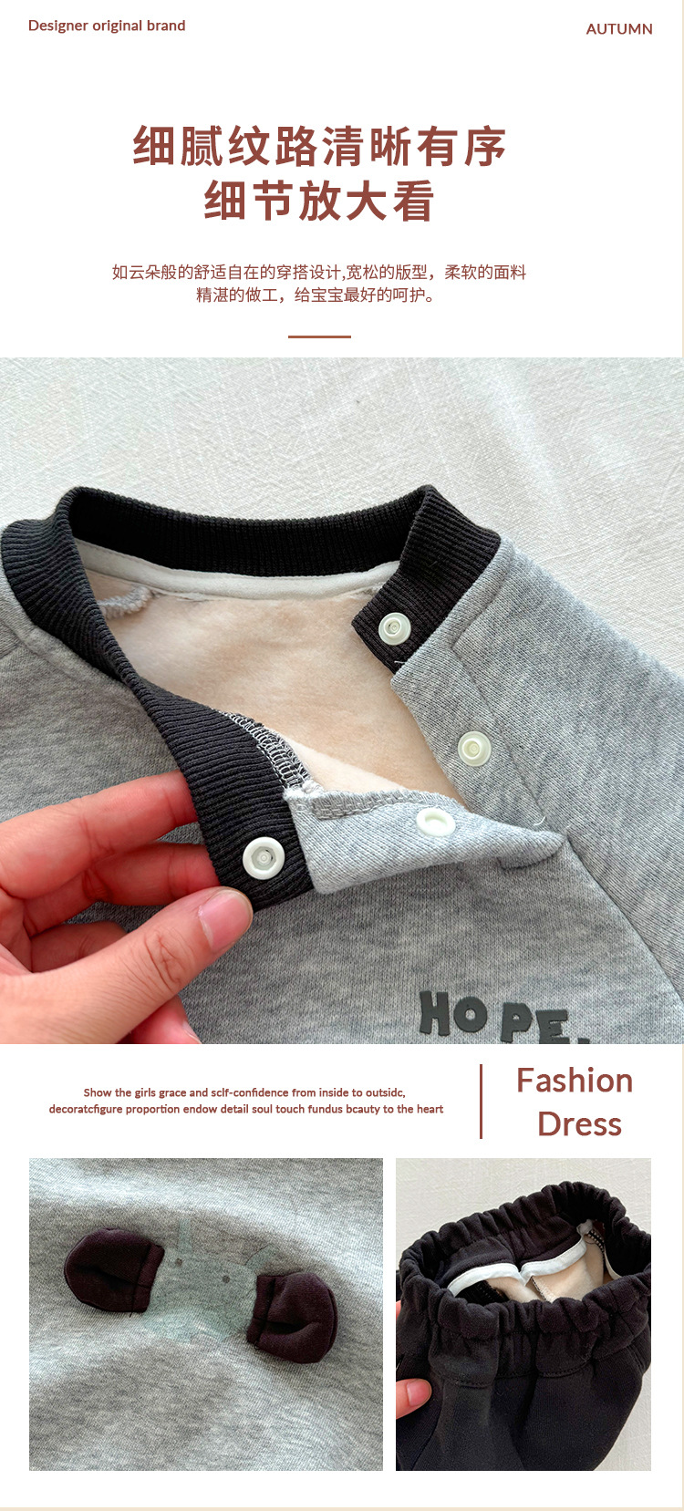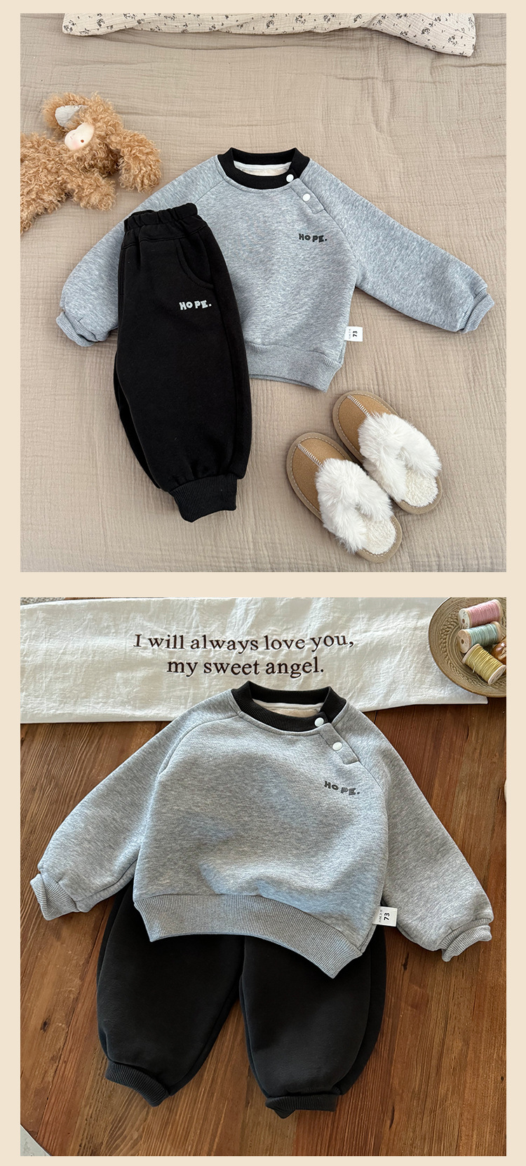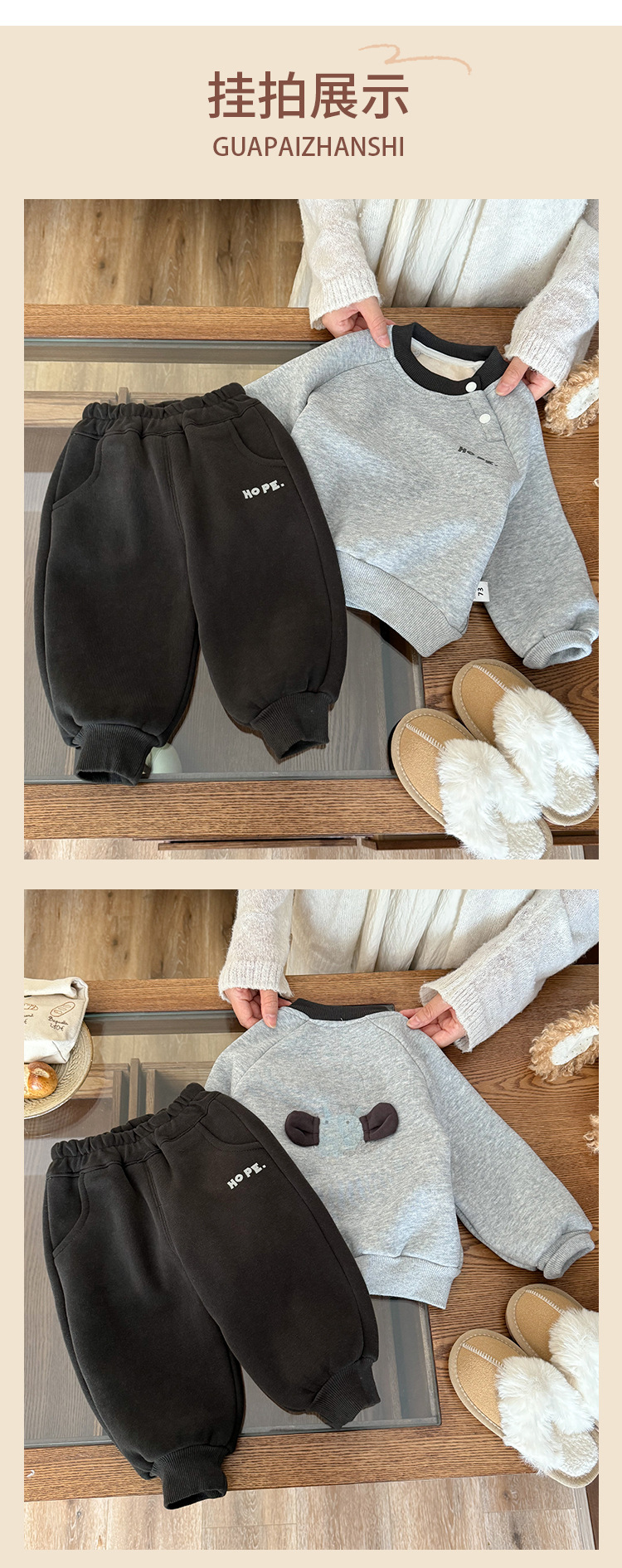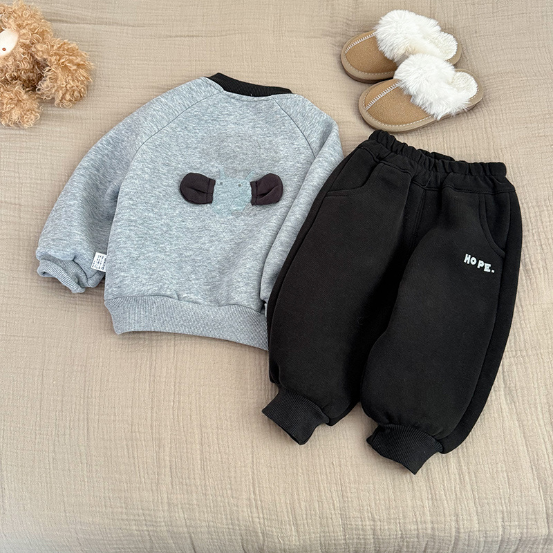 소년 세트 2024 가을/겨울 기모 두꺼운 아기 옷 늦은 가을 운동복 운동복 2 종 세트 A