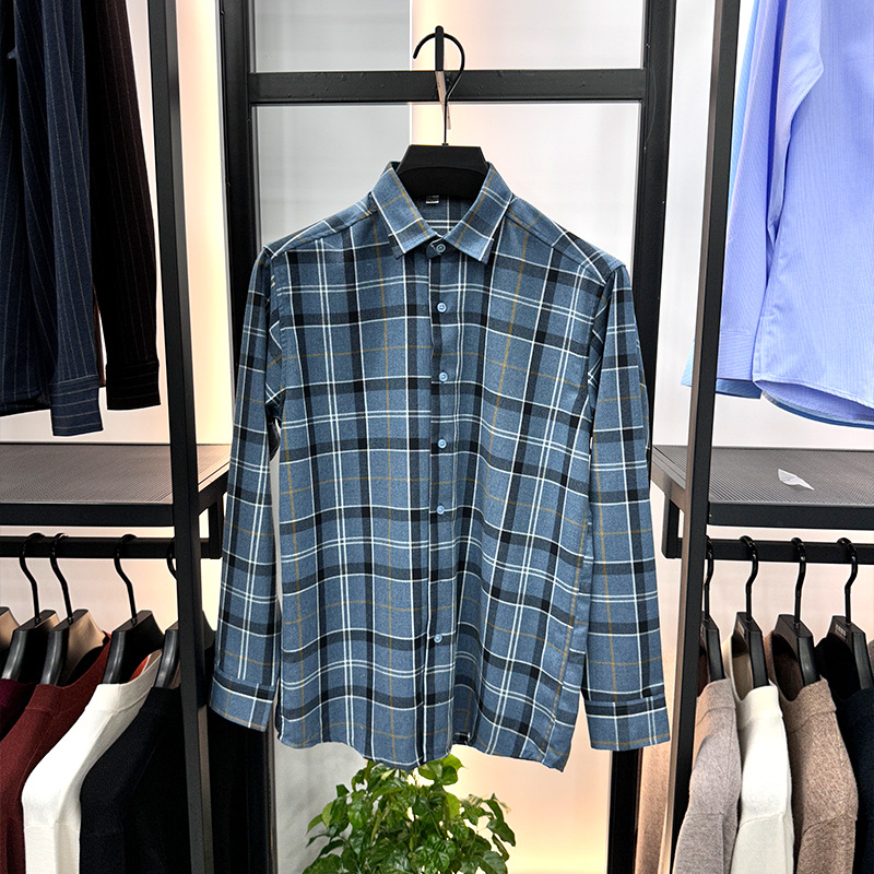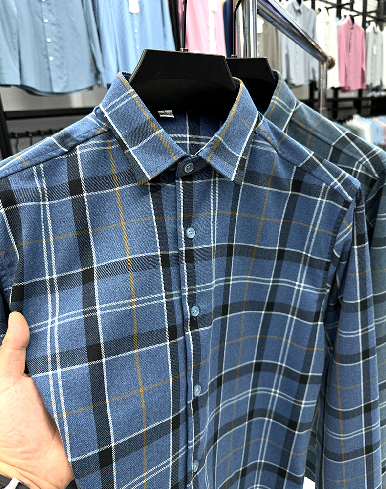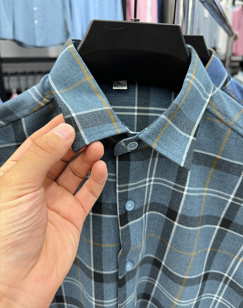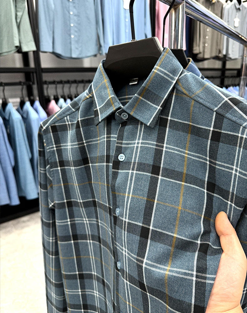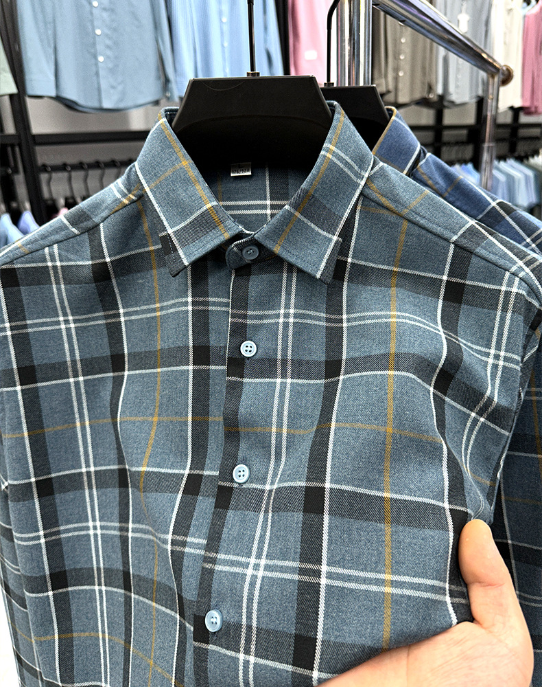 봄과 가을 새로운 남성면 긴팔 셔츠 사업 캐주얼 패션 하이 엔드 옷깃 체크 중년 아빠 트렌디 셔츠스토어 가기