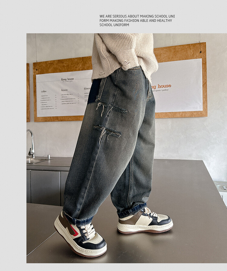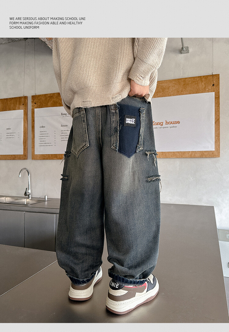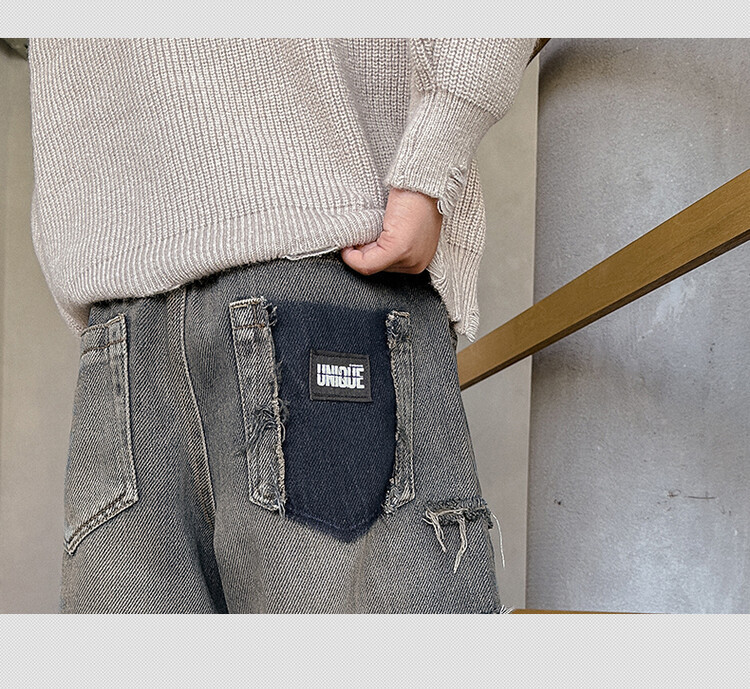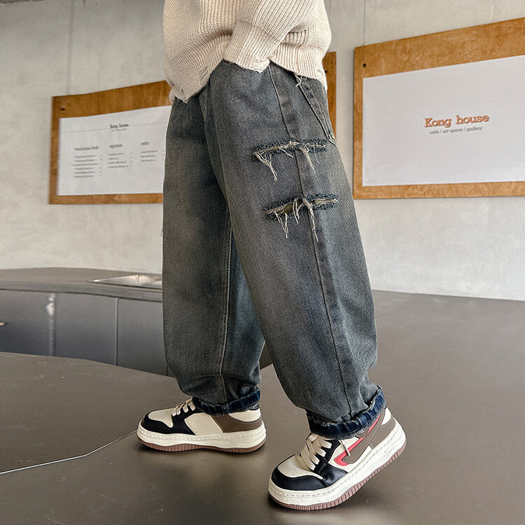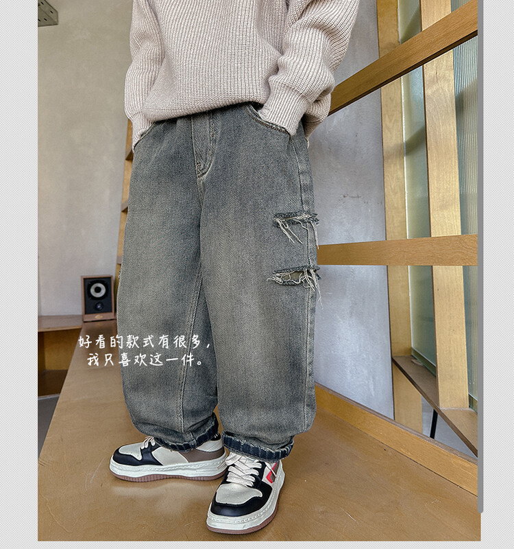 소년 '패셔너블 리핑 청바지 봄 · 가을 소년 풀린 올매치 바지 대형 어린이 한국 대외 무역 도매스토어 가기