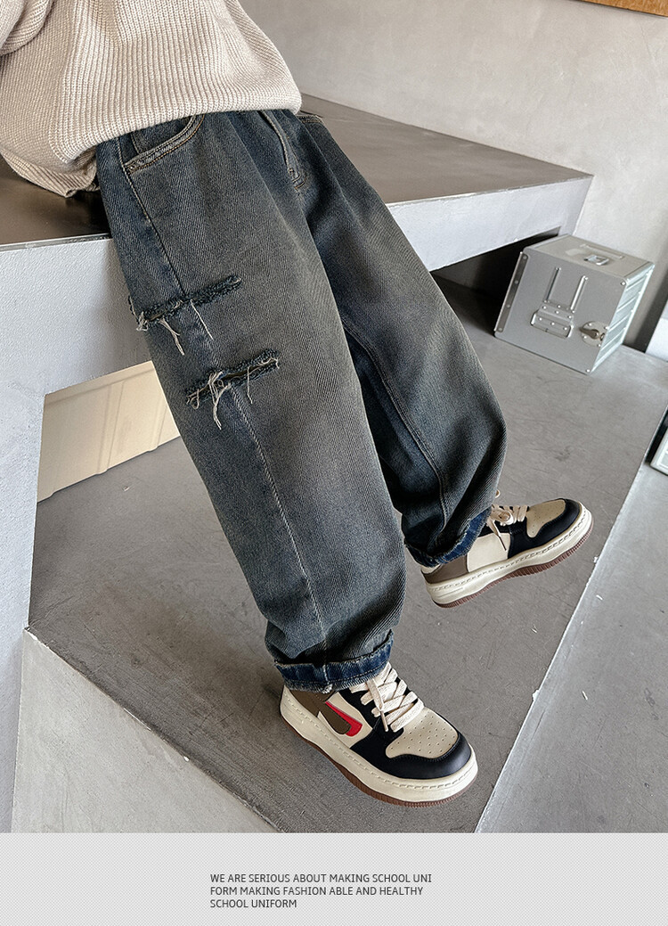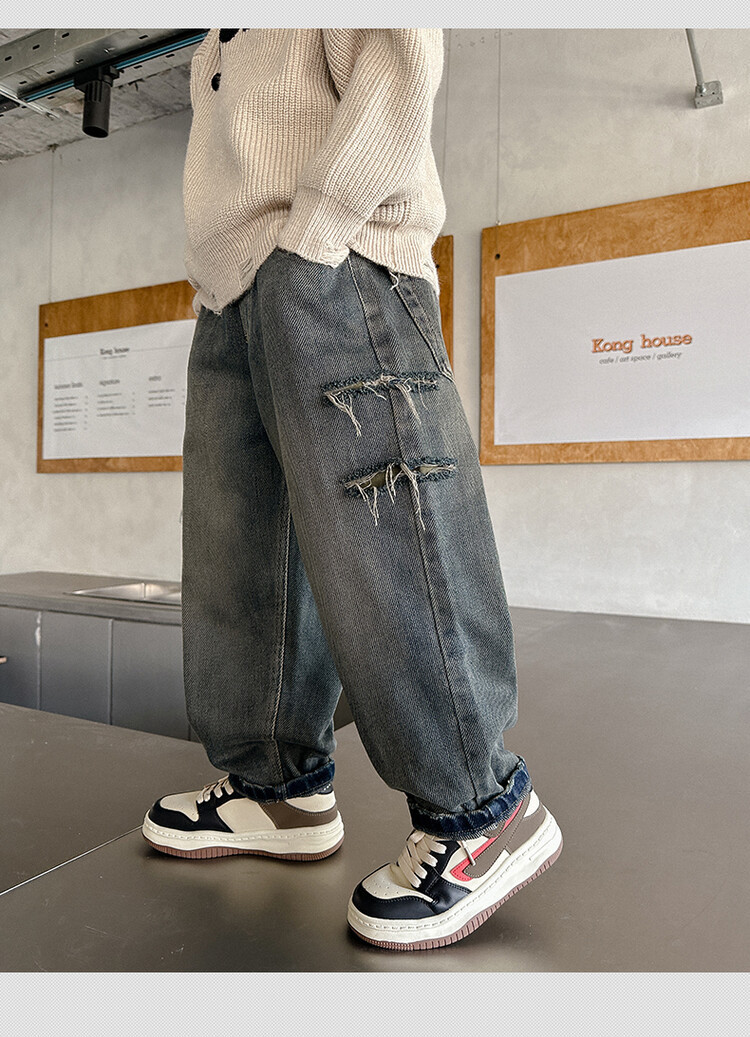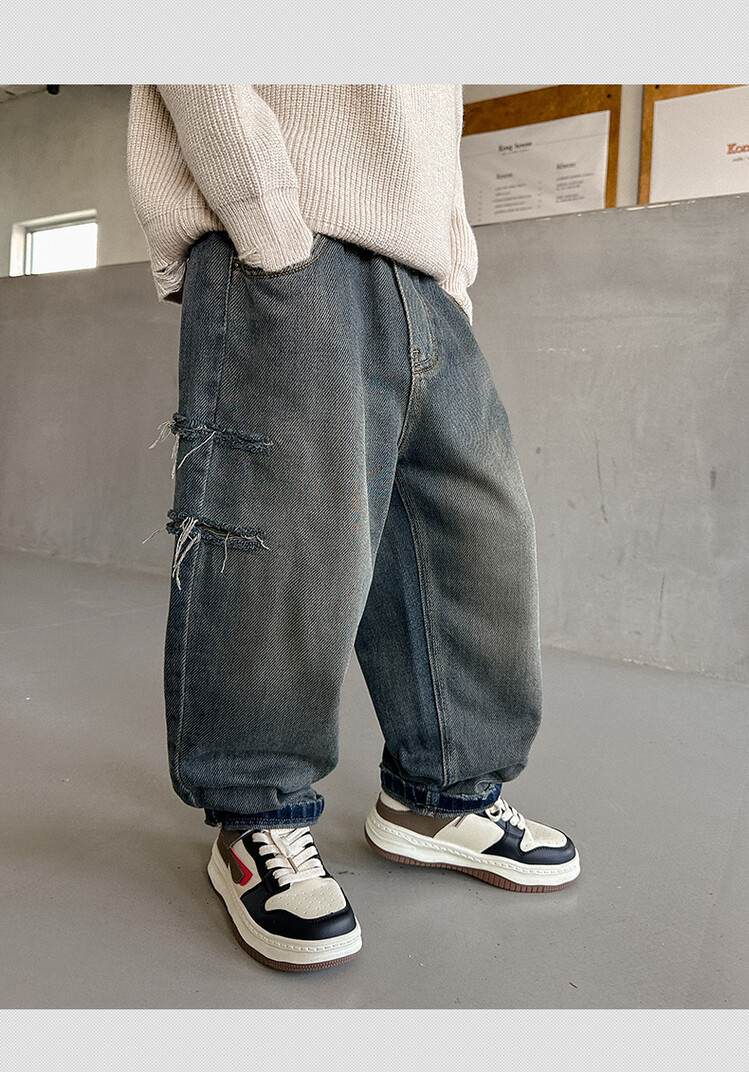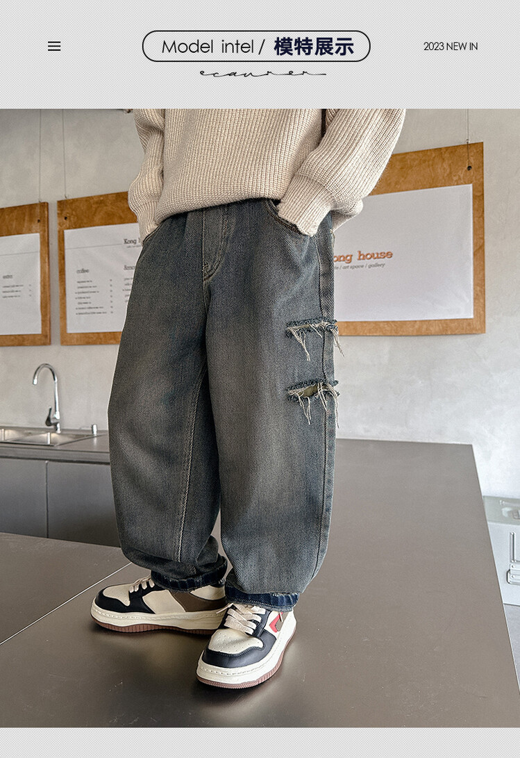 소년 '패셔너블 리핑 청바지 봄 · 가을 소년 풀린 올매치 바지 대형 어린이 한국 대외 무역 도매스토어 가기