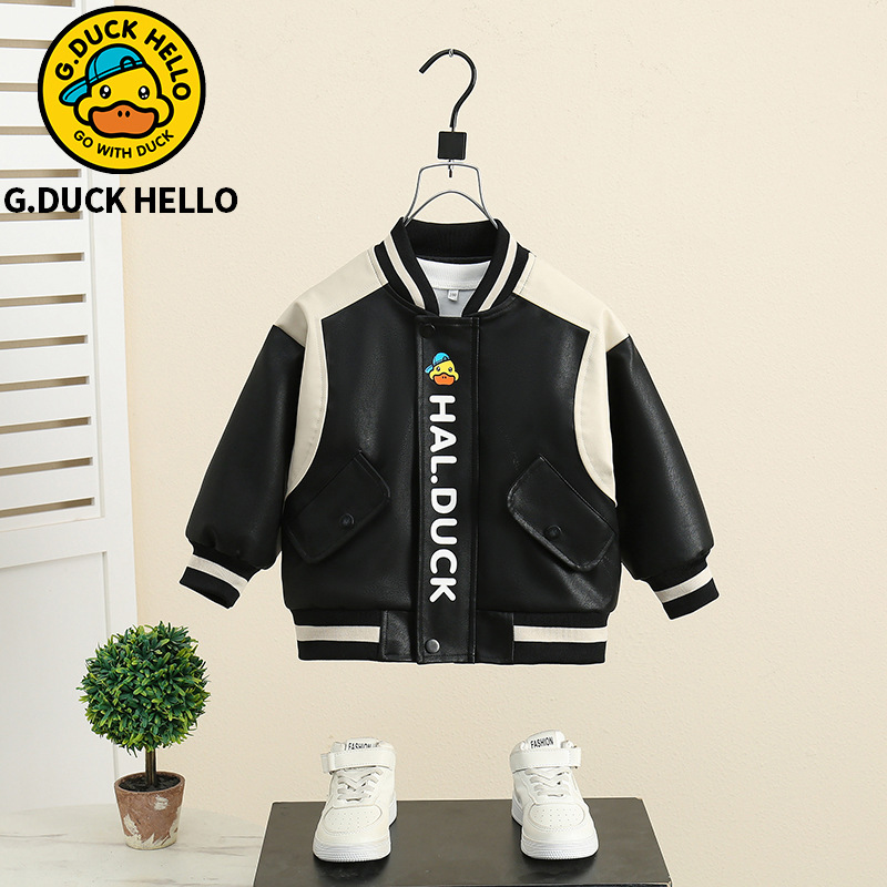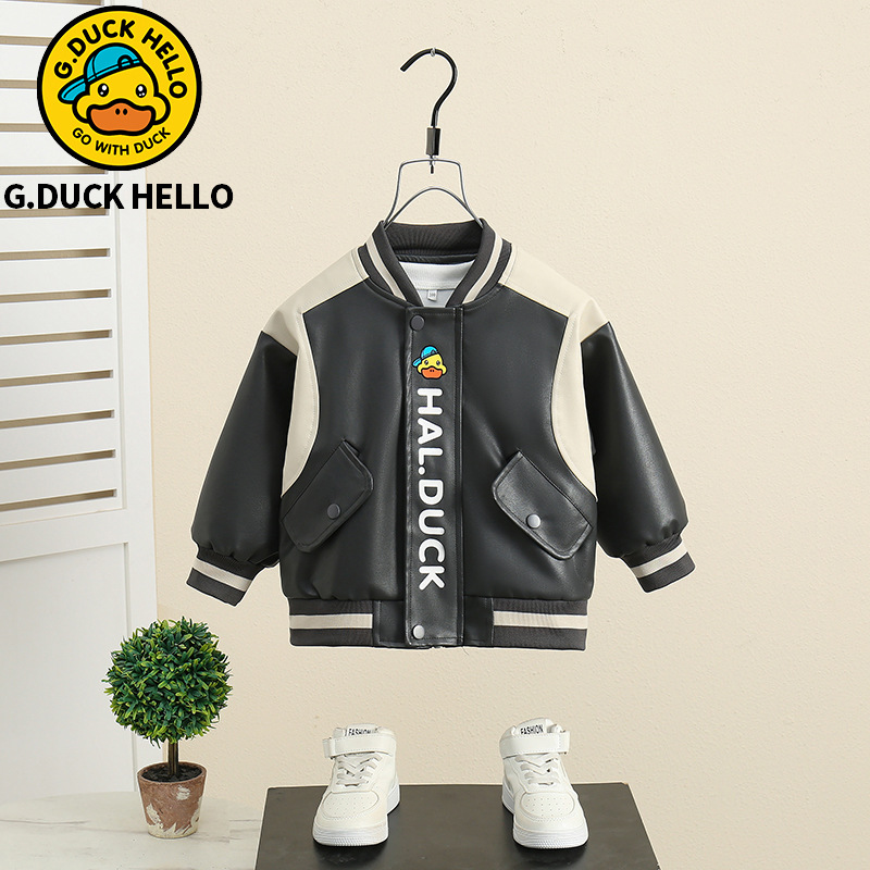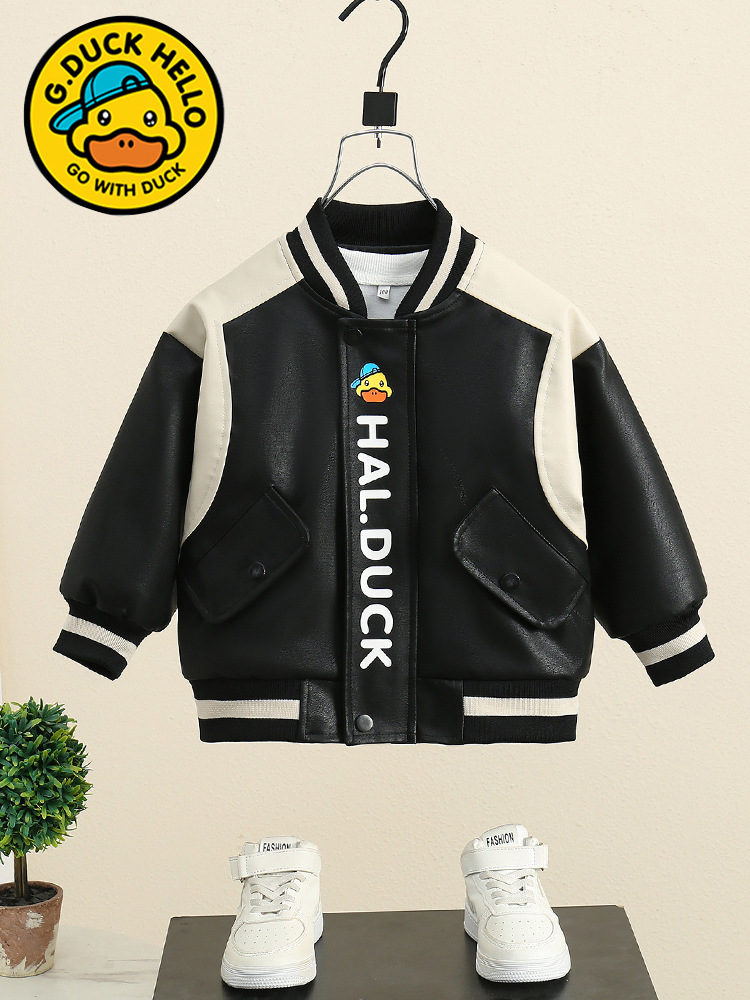 작은 노란 오리 어린이 의류 소년 가죽 어린이 2024 새로운 봄과 가을 의류 아기 한국 스타일 유행 재킷 코트