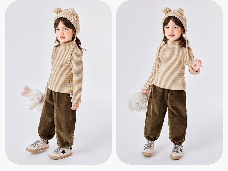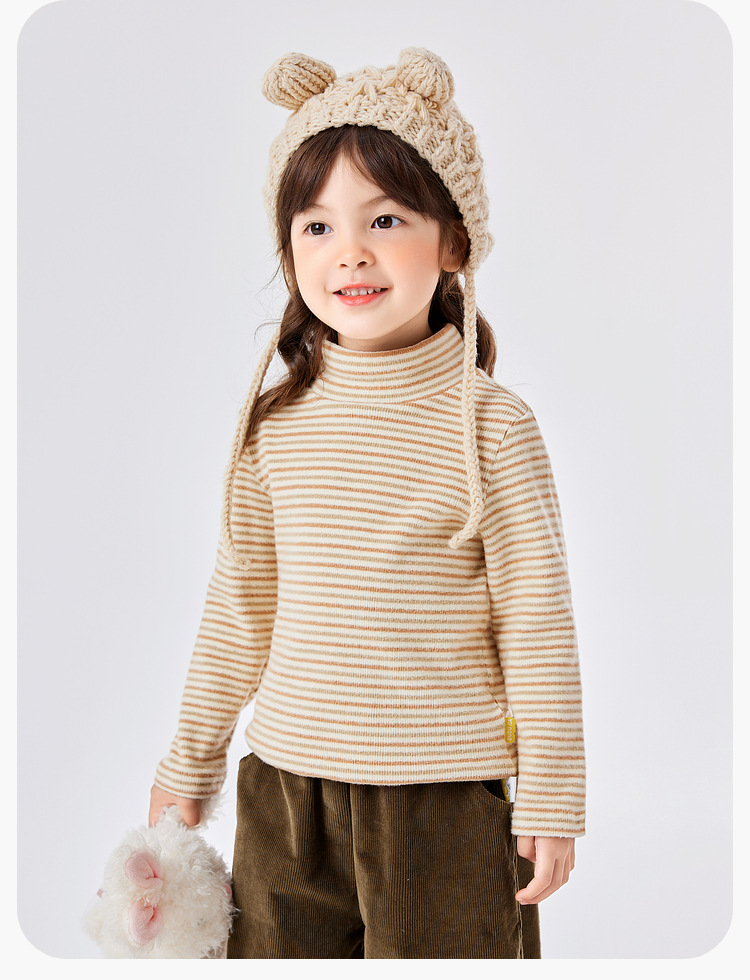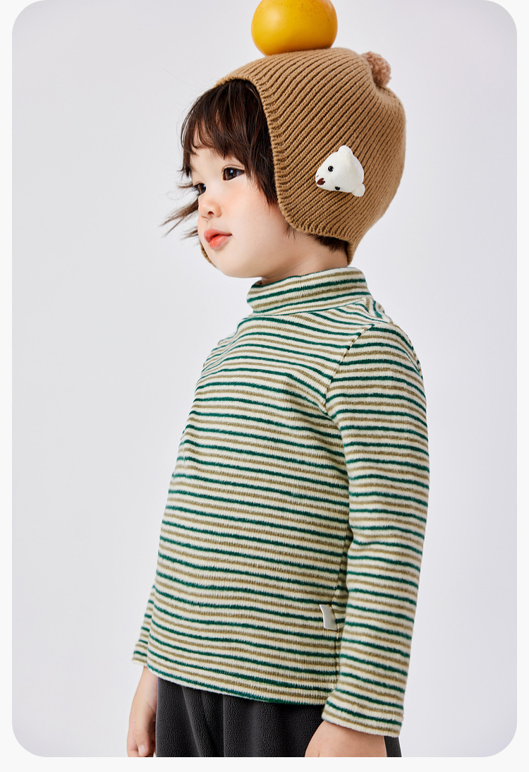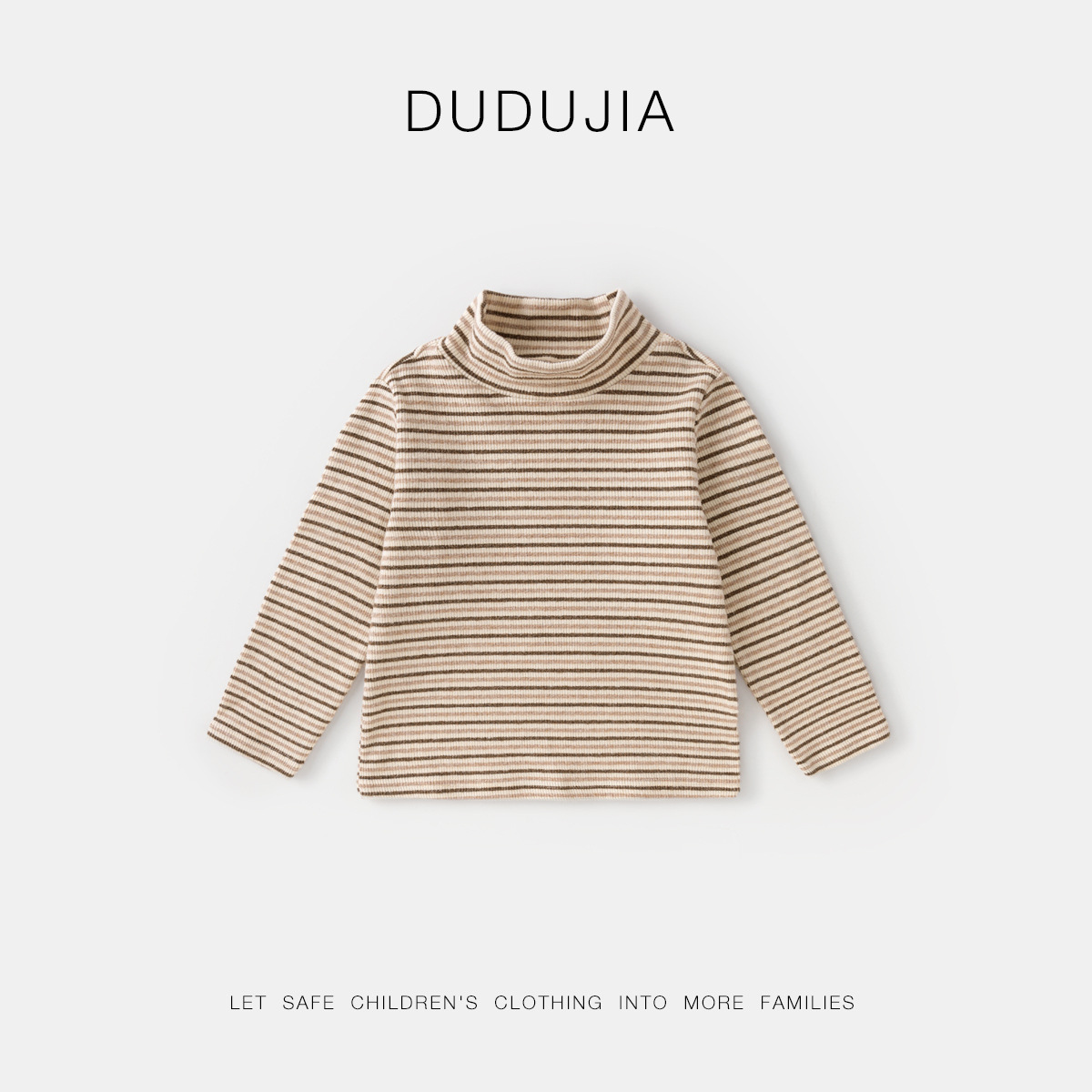 Dudu Baby 긴팔 티셔츠 겨울 소년 반 높이 칼라베이스 셔츠 가을 및 겨울 소녀 줄무늬 탑 아동복 트렌디스토어 가기