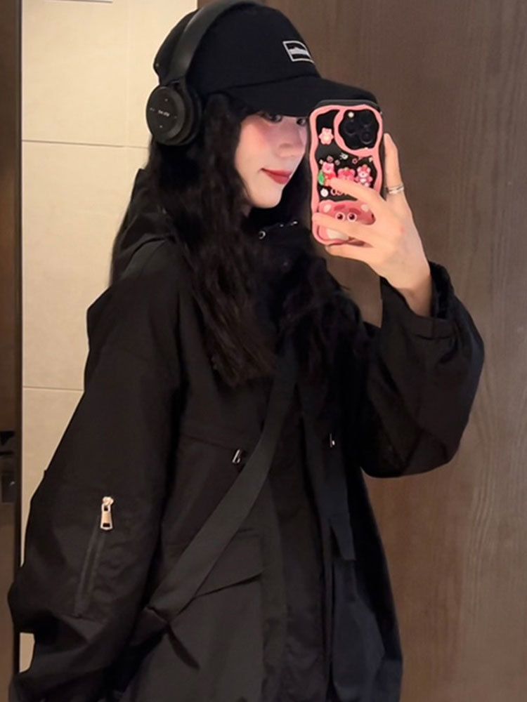 아메리칸 스타일 레트로 야외 후드 러쉬 재킷 코트 여성의 봄과 가을 마운틴 스타일 기능성 툴링 스포츠 재킷 탑