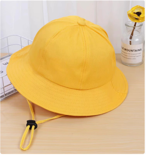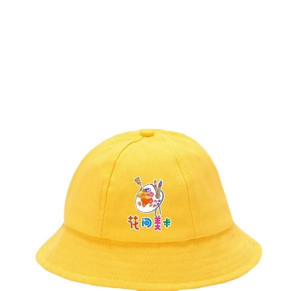 어린이 작은 노란 모자 유치원 모자 인쇄 로고 그늘 선 스크린 어부 모자 돔 야외 외출 초등학생 모자