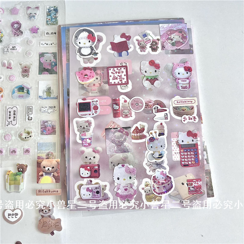 높은 색상 가치 스타 플래시 필름 컷 필름 스티커 Senbeier 4 잎 클로버 키티 시리즈 장식 스티커로 마음을 따르십시오.