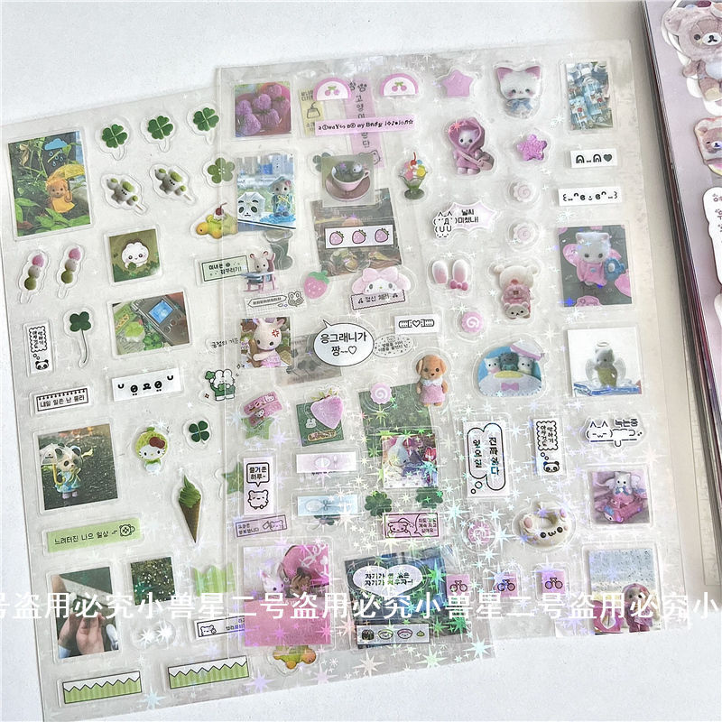 높은 색상 가치 스타 플래시 필름 컷 필름 스티커 Senbeier 4 잎 클로버 키티 시리즈 장식 스티커로 마음을 따르십시오.스토어 가기