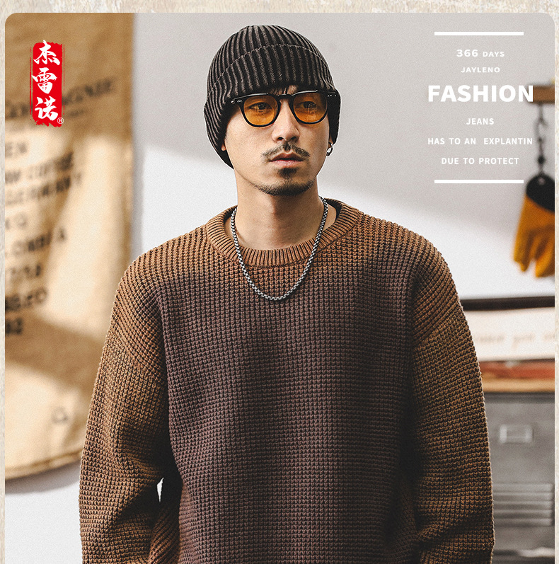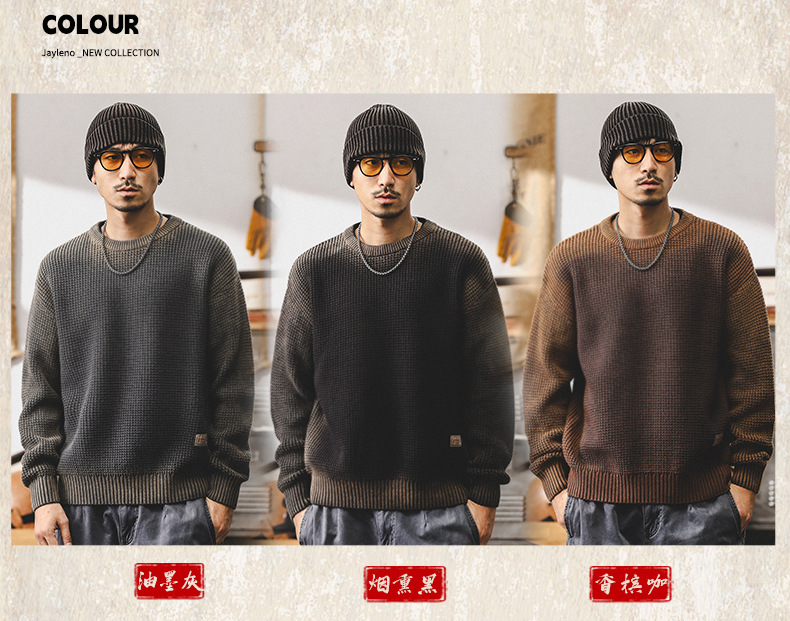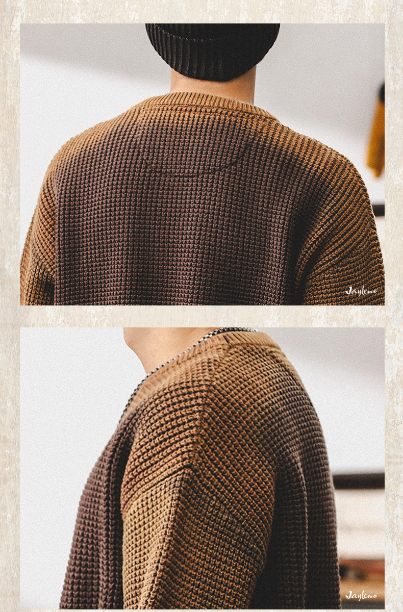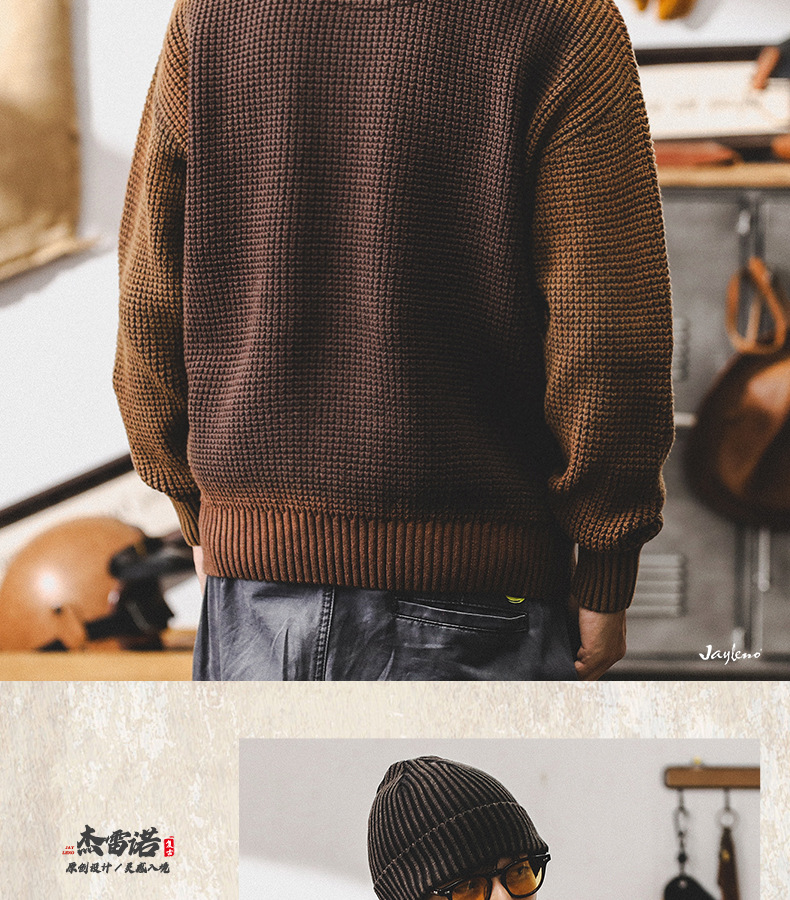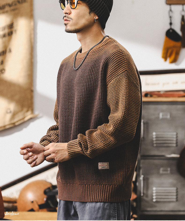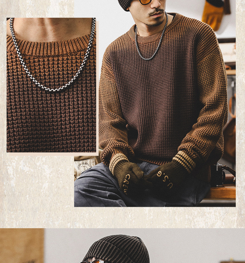 아메리칸 레트로 헤비 스웨터 남성용 루즈 트렌디 브랜드 대비 컬러 가을과 겨울 마일라드 게으른 스타일 니트웨어 재킷스토어 가기