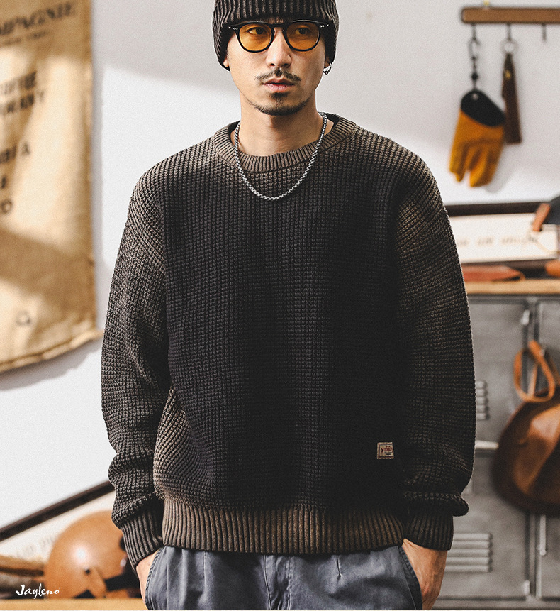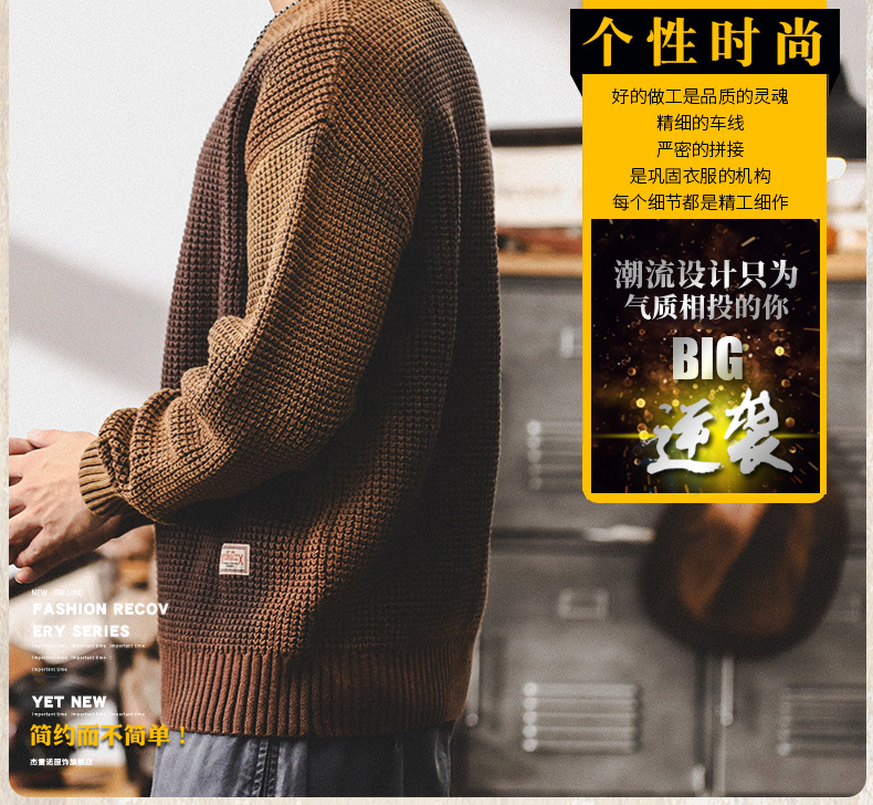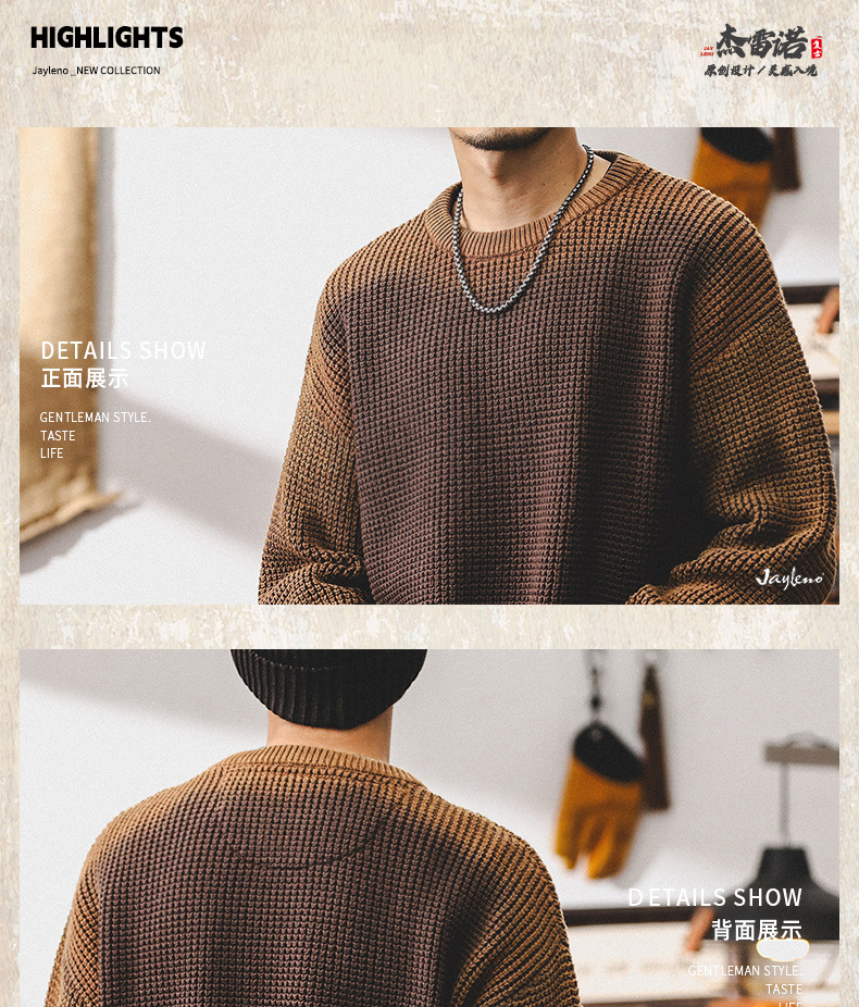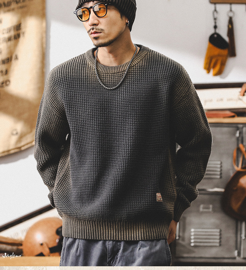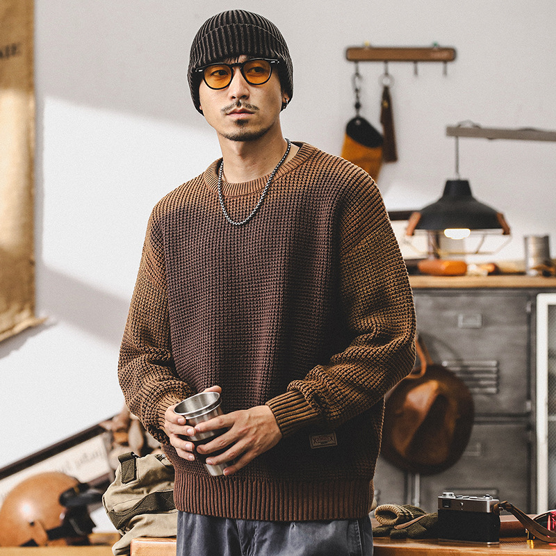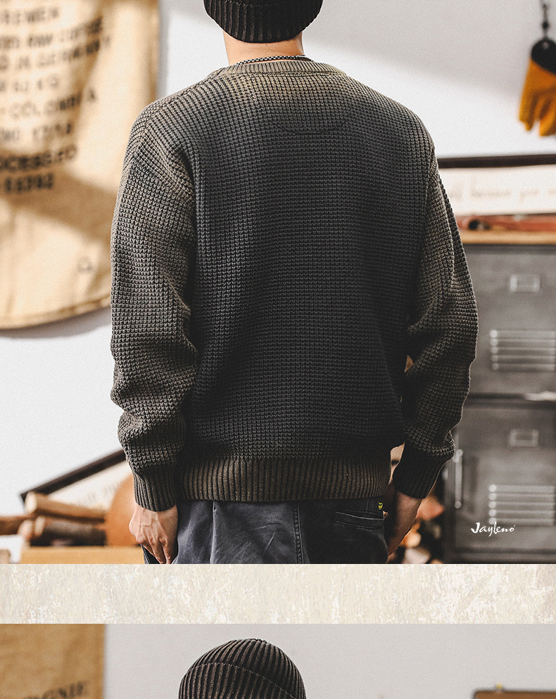 아메리칸 레트로 헤비 스웨터 남성용 루즈 트렌디 브랜드 대비 컬러 가을과 겨울 마일라드 게으른 스타일 니트웨어 재킷스토어 가기