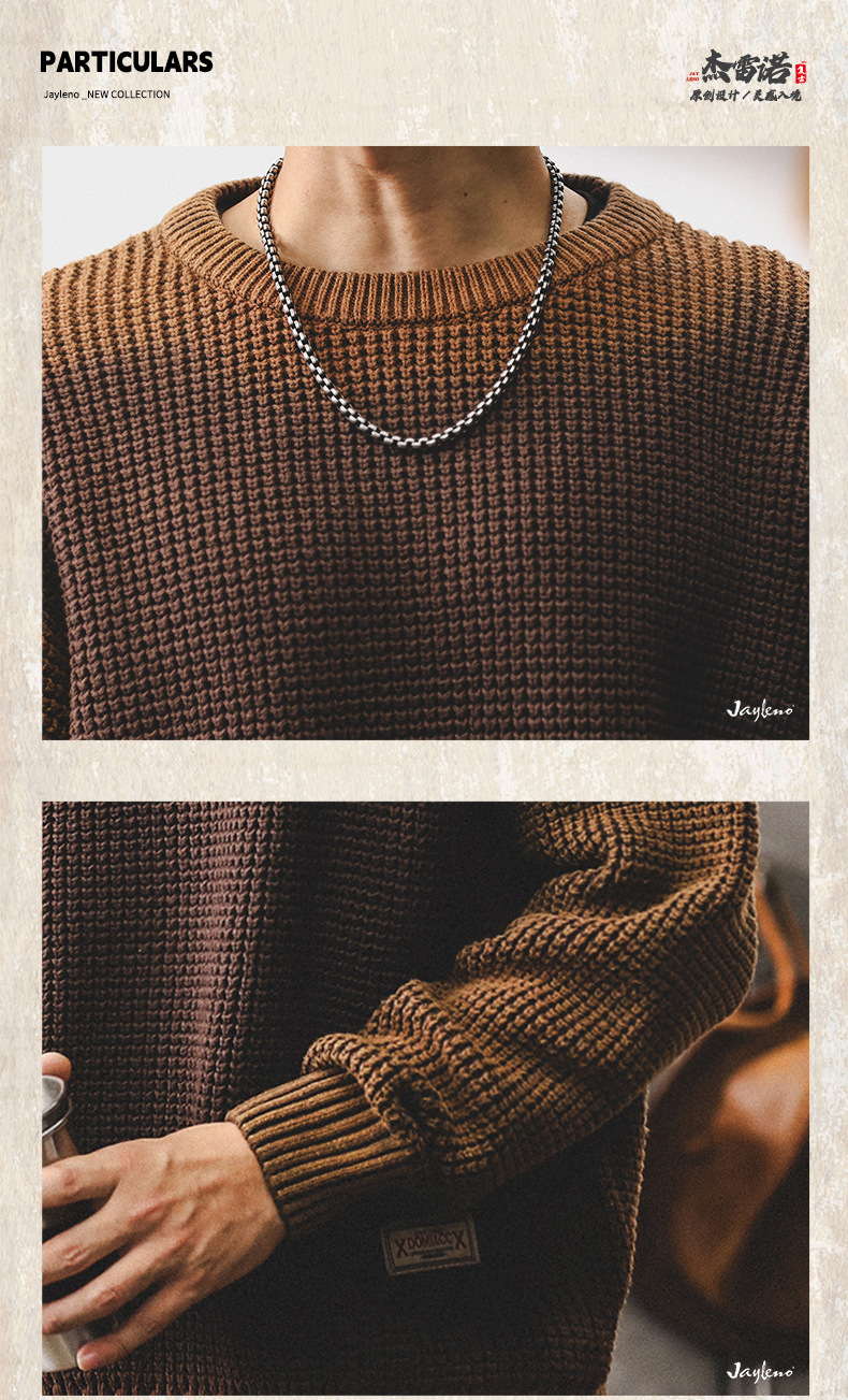 아메리칸 레트로 헤비 스웨터 남성용 루즈 트렌디 브랜드 대비 컬러 가을과 겨울 마일라드 게으른 스타일 니트웨어 재킷