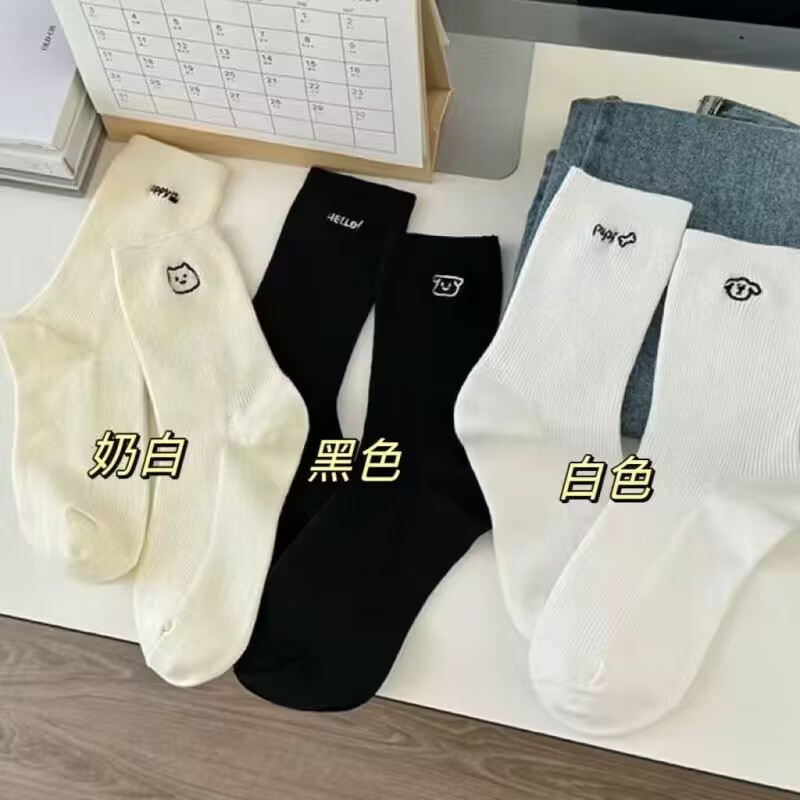 일본 스타일 높은 뷰티 가치 수직 패턴 만화 스타킹 단색 개 양말 여성용 Ins 여름 얇은 귀여운 AB 미드 튜브 양말스토어 가기