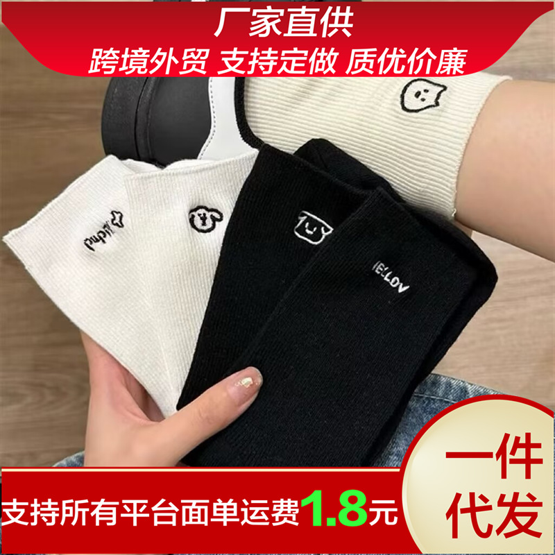 일본 스타일 높은 뷰티 가치 수직 패턴 만화 스타킹 단색 개 양말 여성용 Ins 여름 얇은 귀여운 AB 미드 튜브 양말