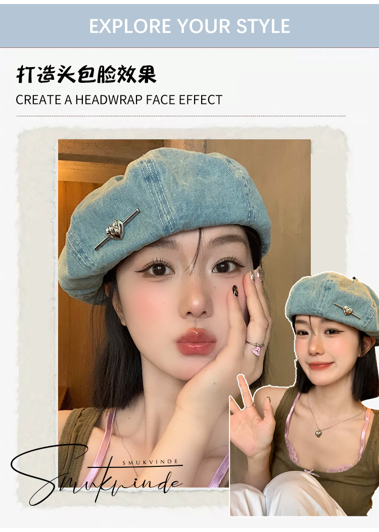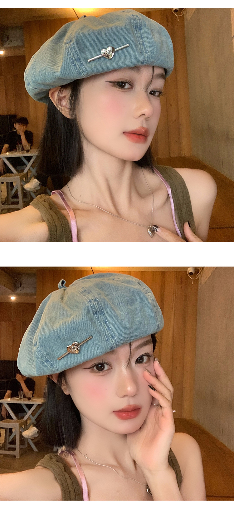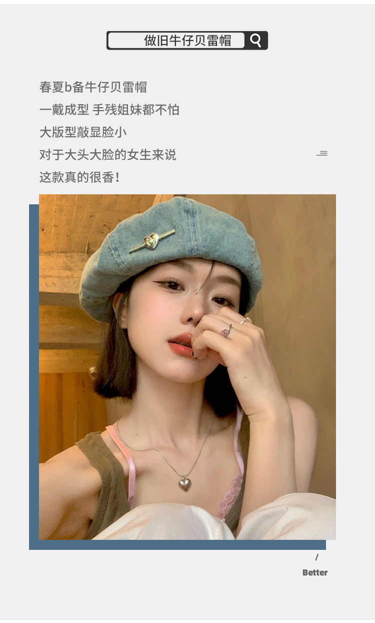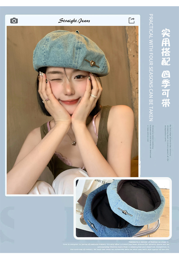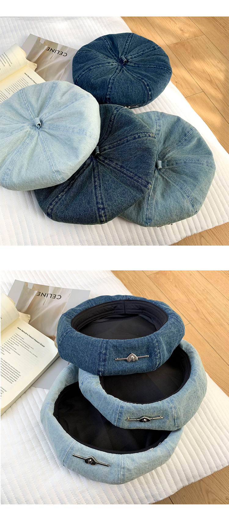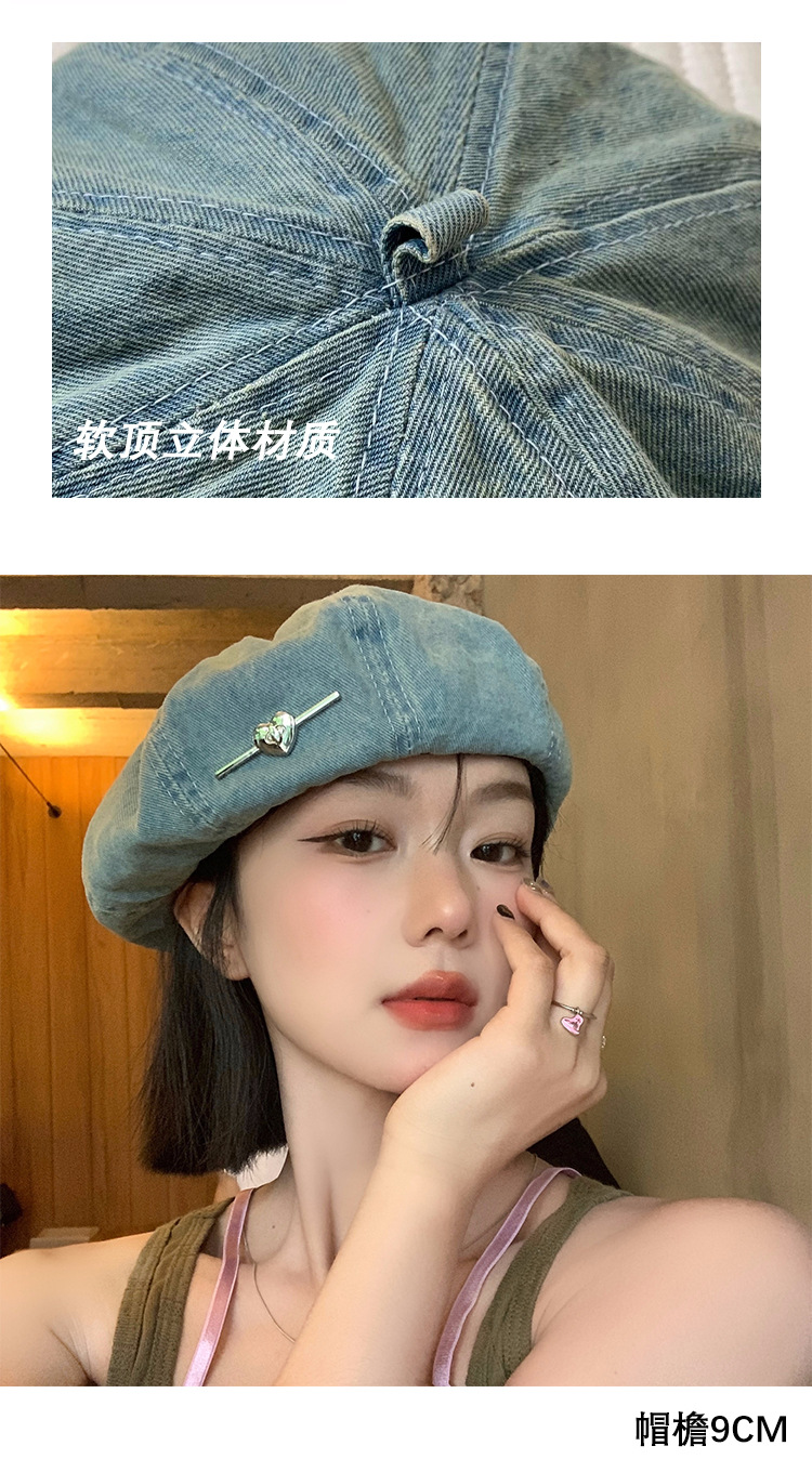 일본 레트로 데님 워싱 베레모 큰 머리둘레 얼굴 작아보이는 트렌디 모자 하트 화가 모자 하트 트렌디 모자