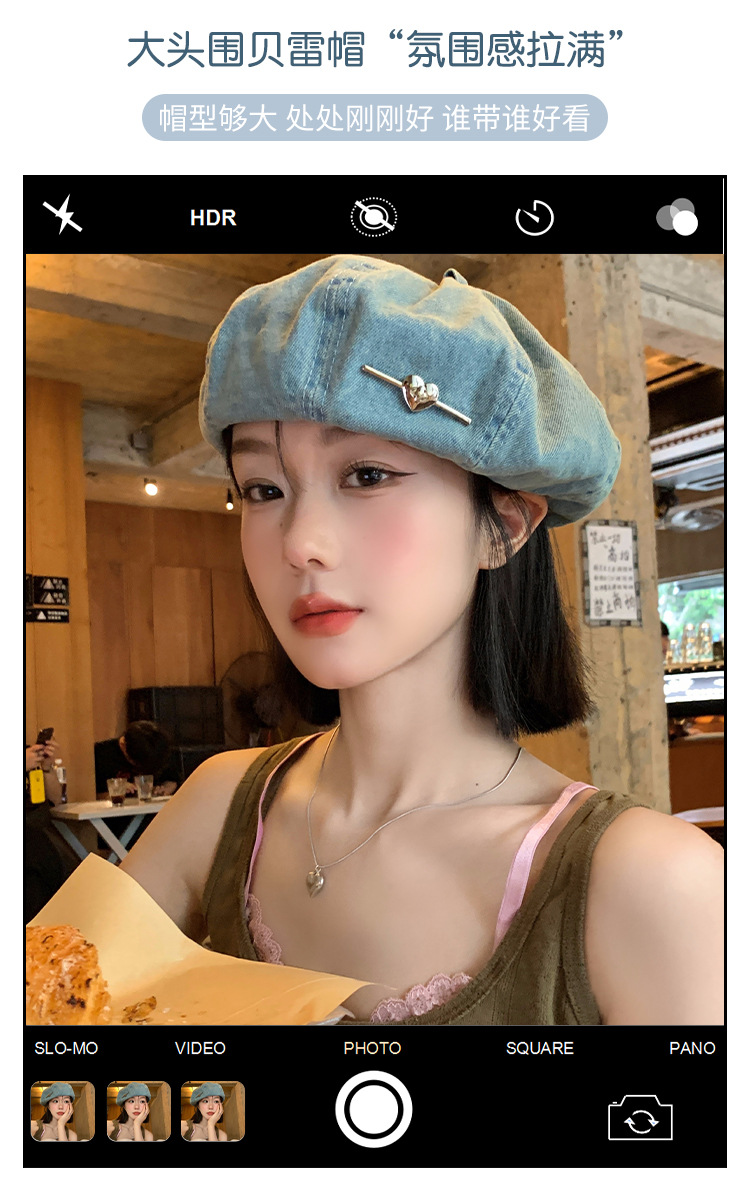 일본 레트로 데님 워싱 베레모 큰 머리둘레 얼굴 작아보이는 트렌디 모자 하트 화가 모자 하트 트렌디 모자스토어 가기