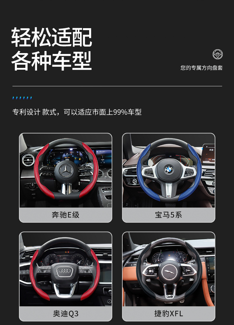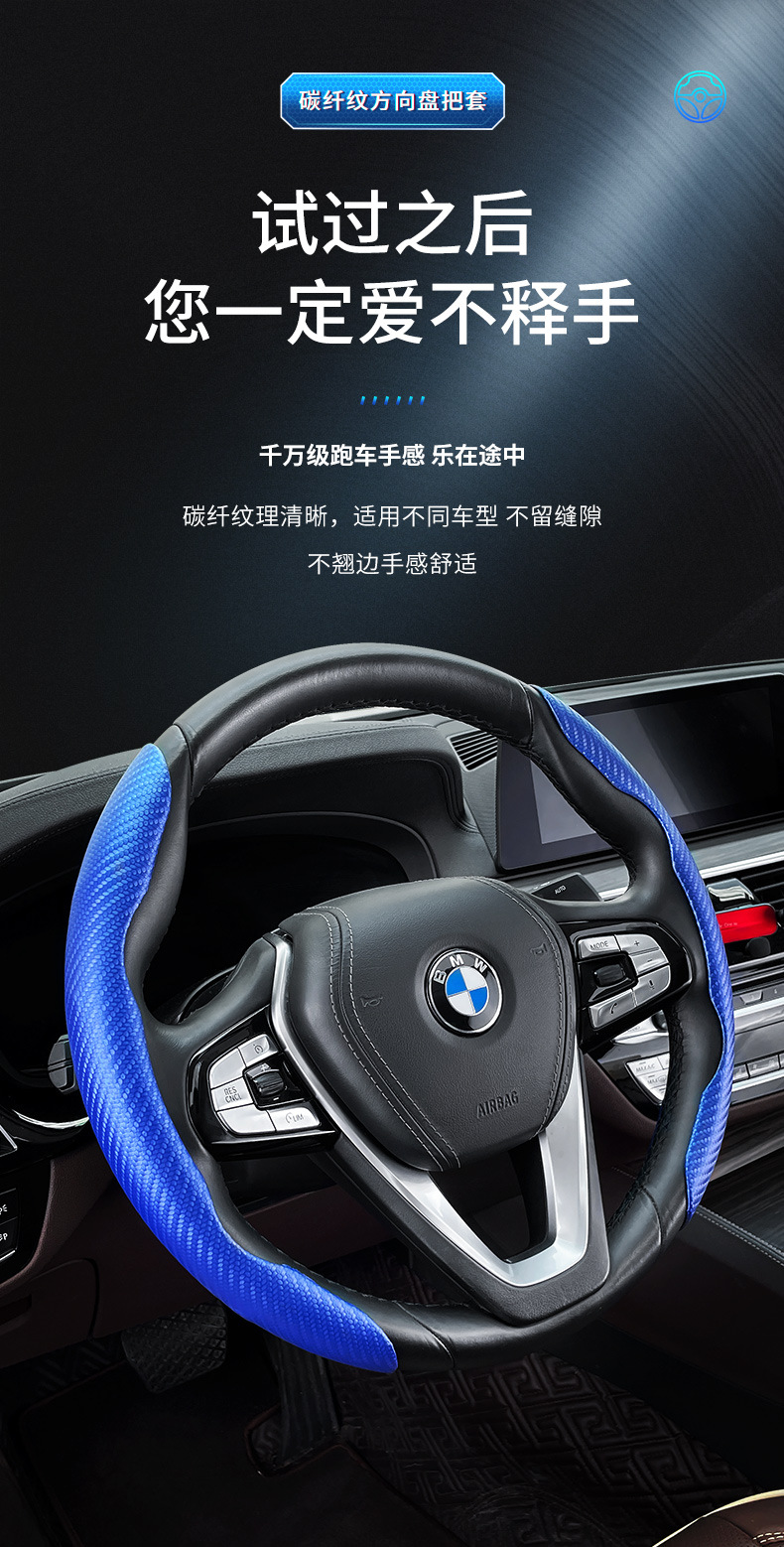국경을 넘는 아마존 자동차 레이저 탄소 섬유 패턴 스티어링 휠 커버 하프 패키지 초박형 미끄럼 방지 자동차 마호가니 핸들 커버 스포츠스토어 가기