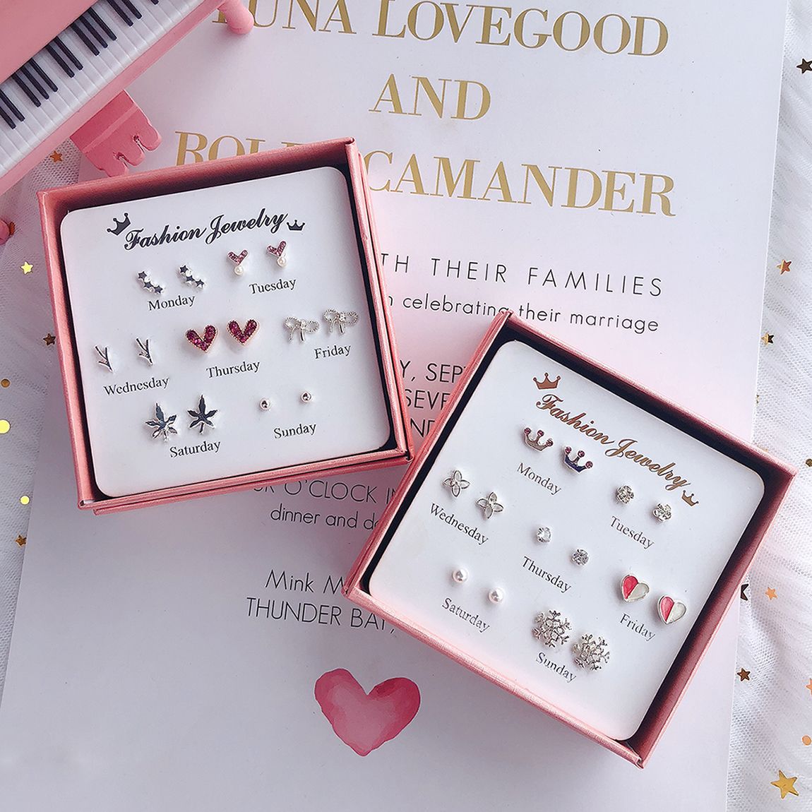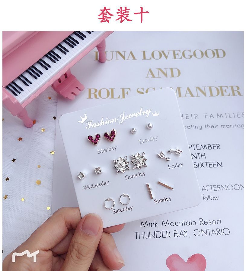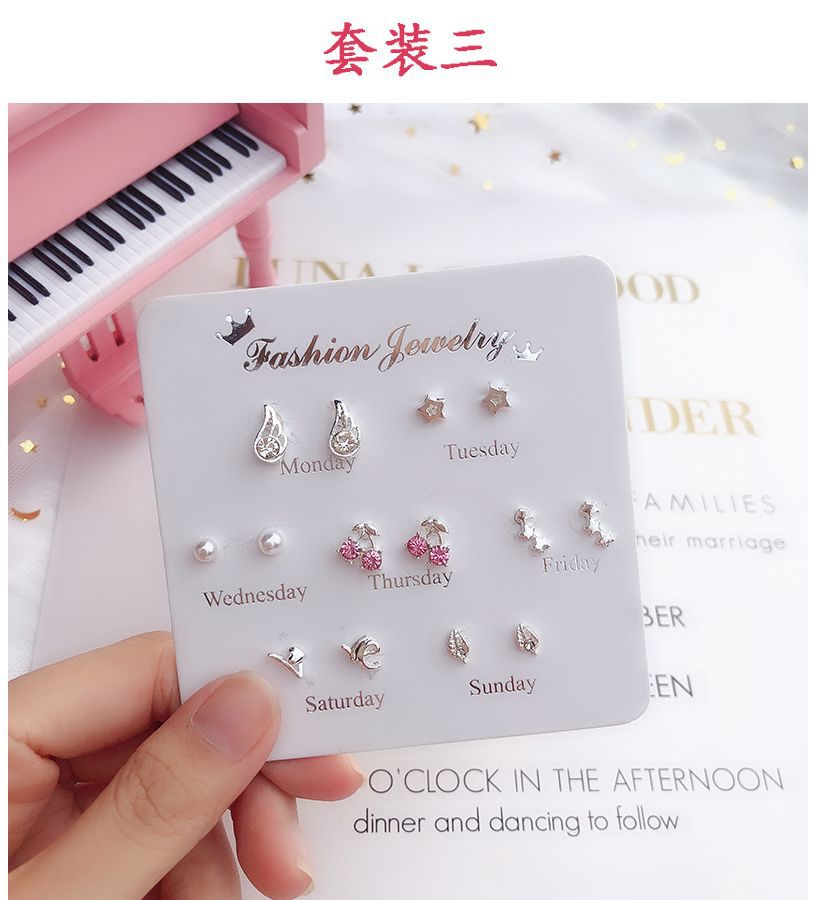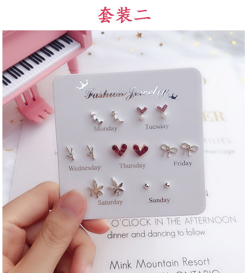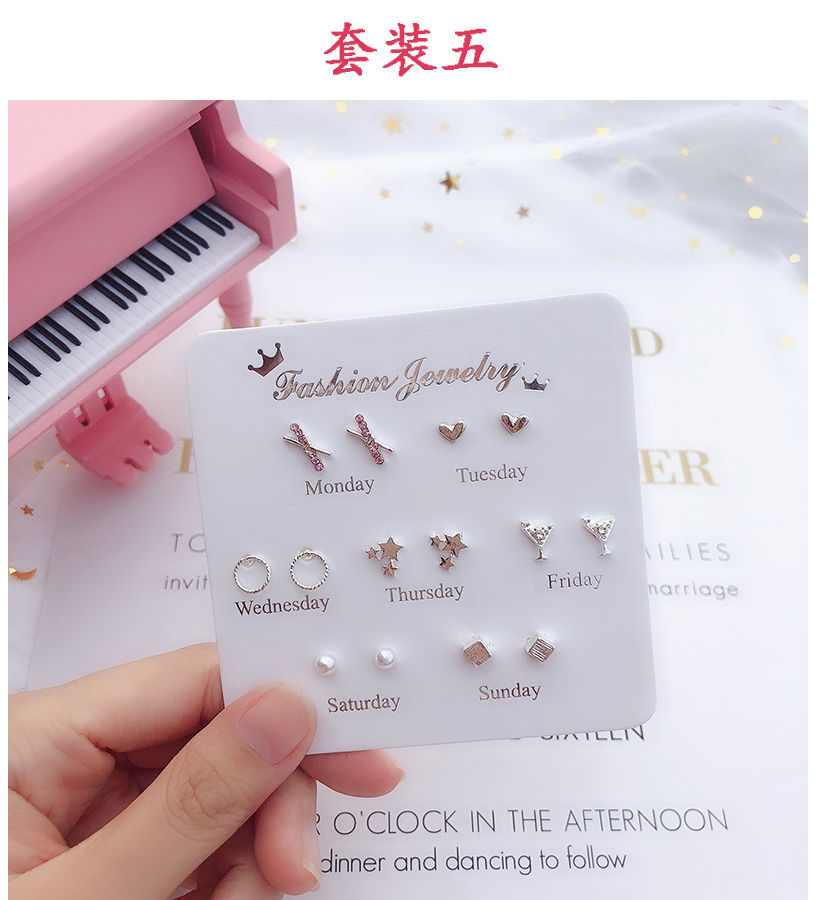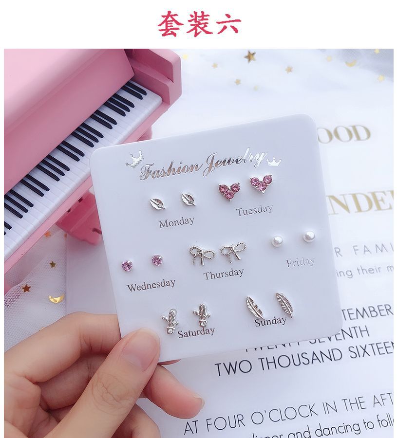 [7 쌍] 여학생용 귀걸이 한국식 간단한 귀여운 세트 조합 귀걸이 1 주 선물 컬렉션