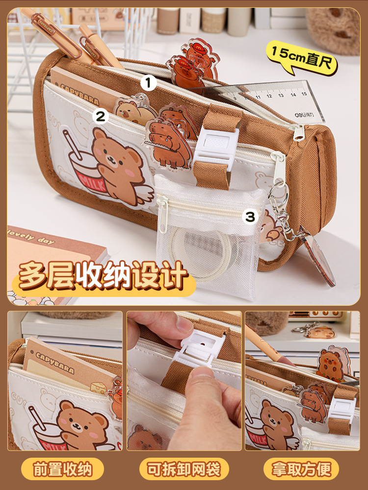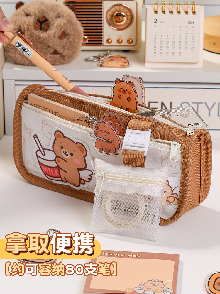 2024 폭발 만화 대용량 연필 가방 국경 새 문구 상자 높은 색상 가치 초등 학생을위한 귀여운 연필 상자