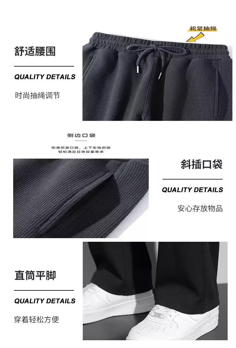 와플리 땀 바지 남자 가을 겨울 새로운 캐주얼 느슨한 기모 스트레이트 바지 소년 넓은 다리 플러스 사이즈 바지스토어 가기