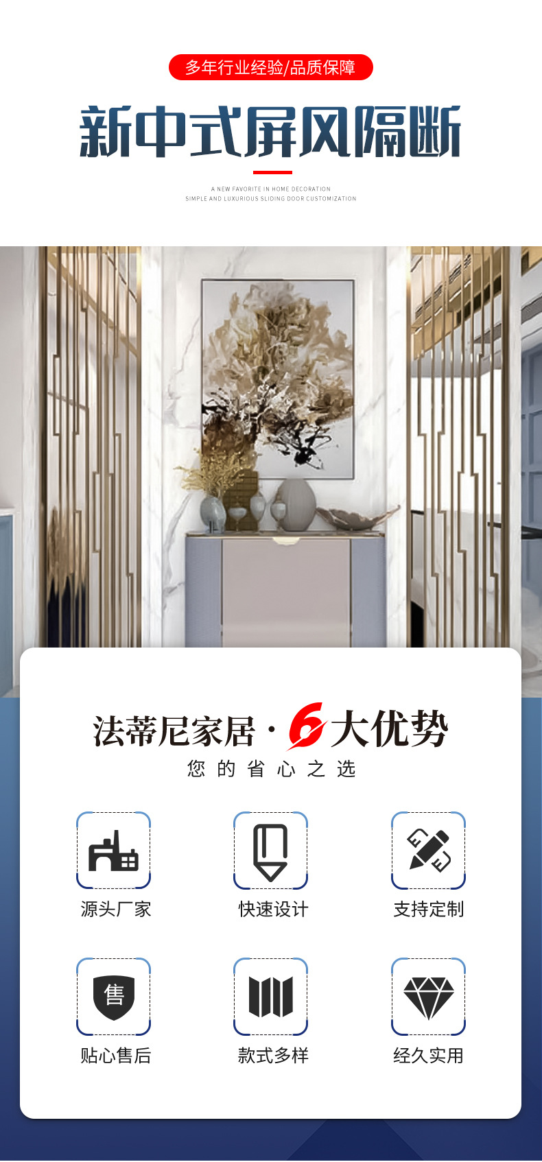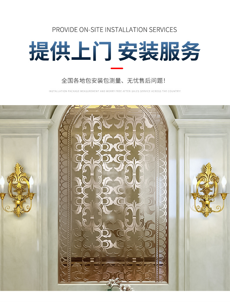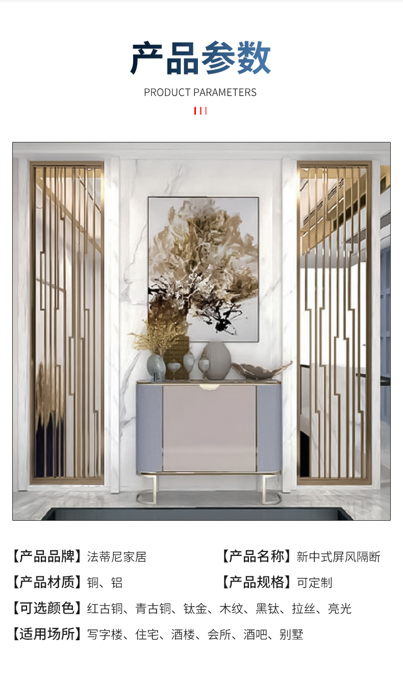 새로운 중국식 알루미늄 합금 스크린 칸막이, 현관 거실 입구 가림 장식, 도어홀 빌라 공사용 금속 펀칭 디자인스토어 가기