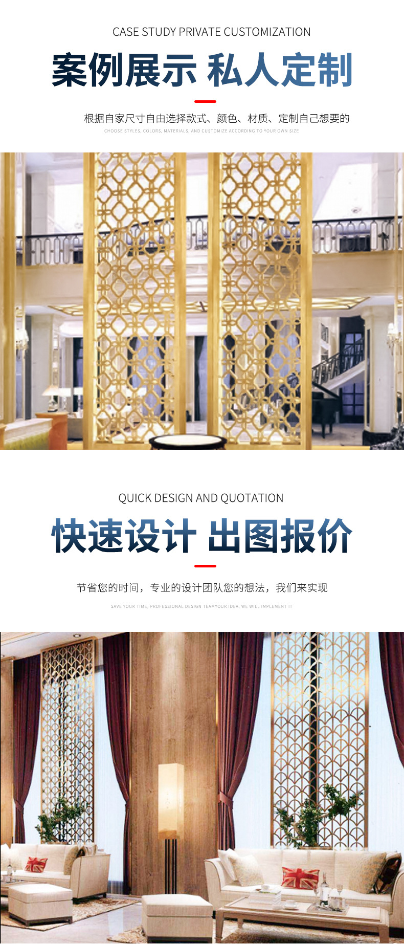 새로운 중국식 알루미늄 합금 스크린 칸막이, 현관 거실 입구 가림 장식, 도어홀 빌라 공사용 금속 펀칭 디자인