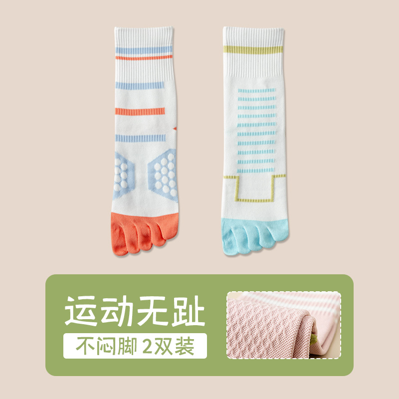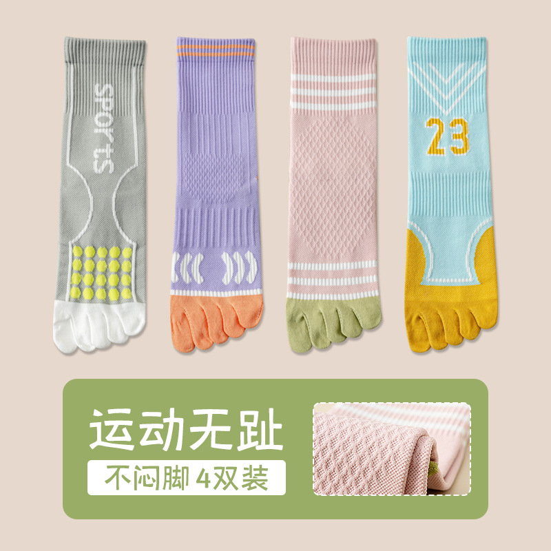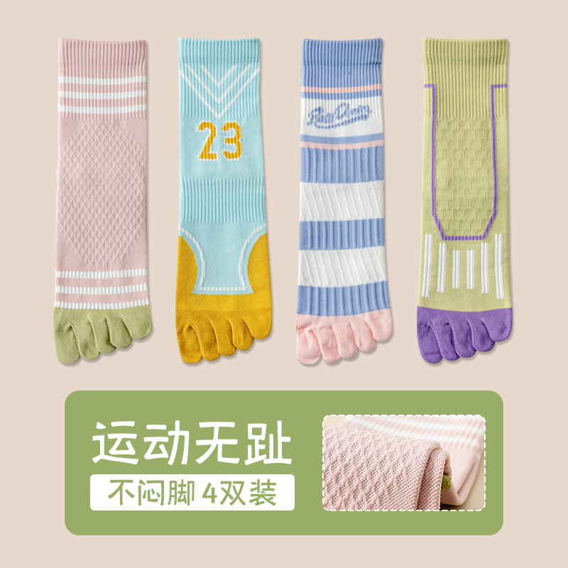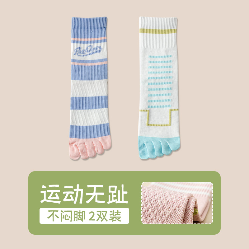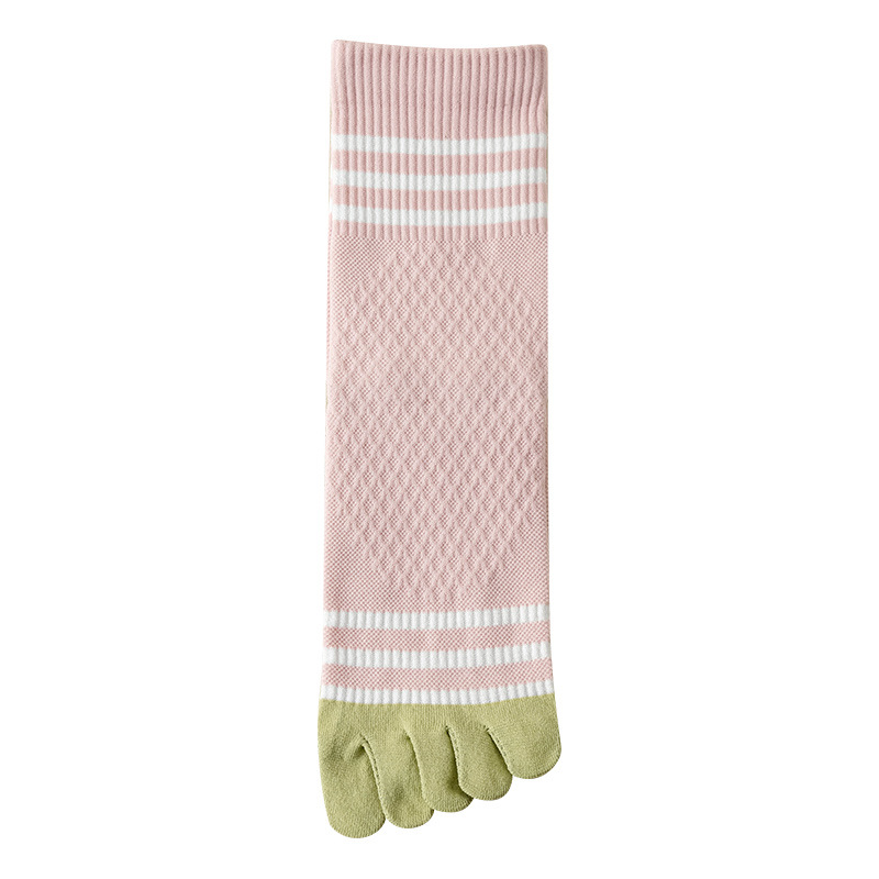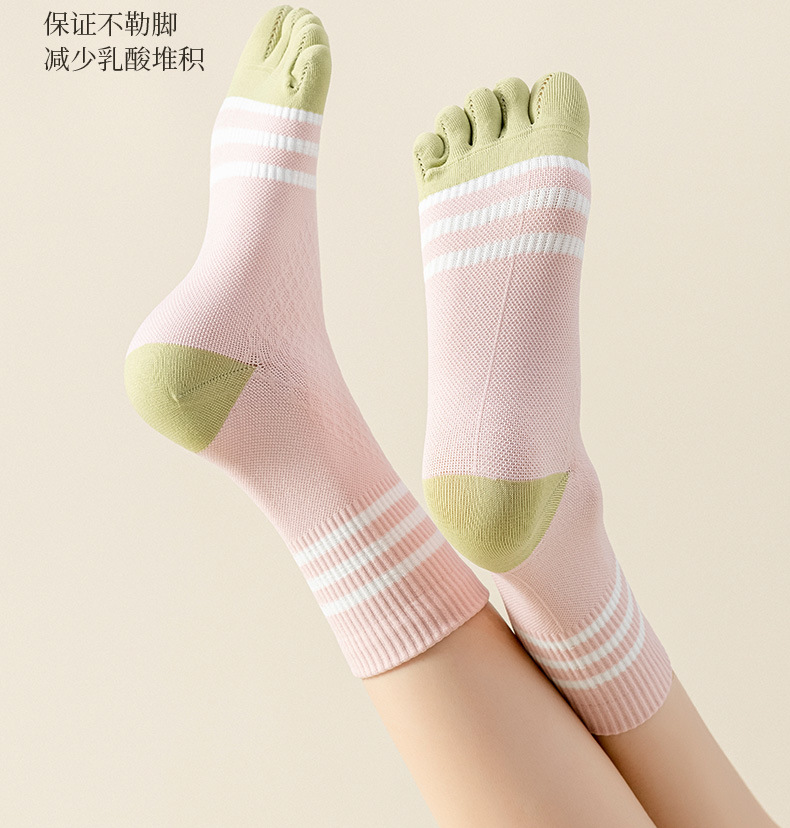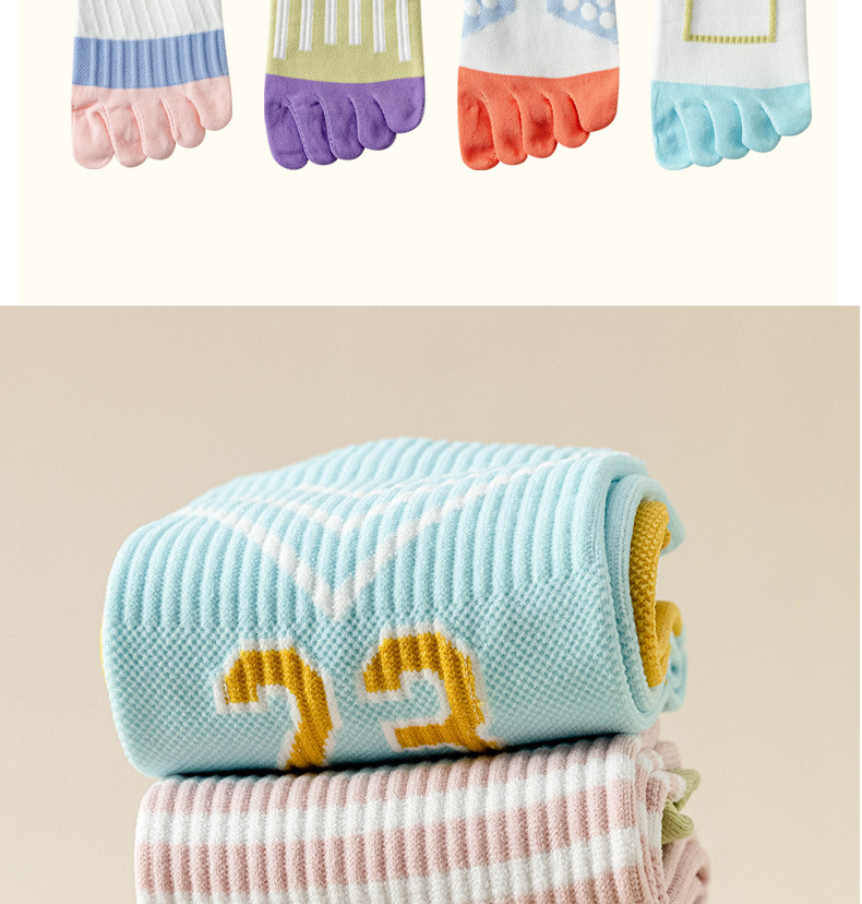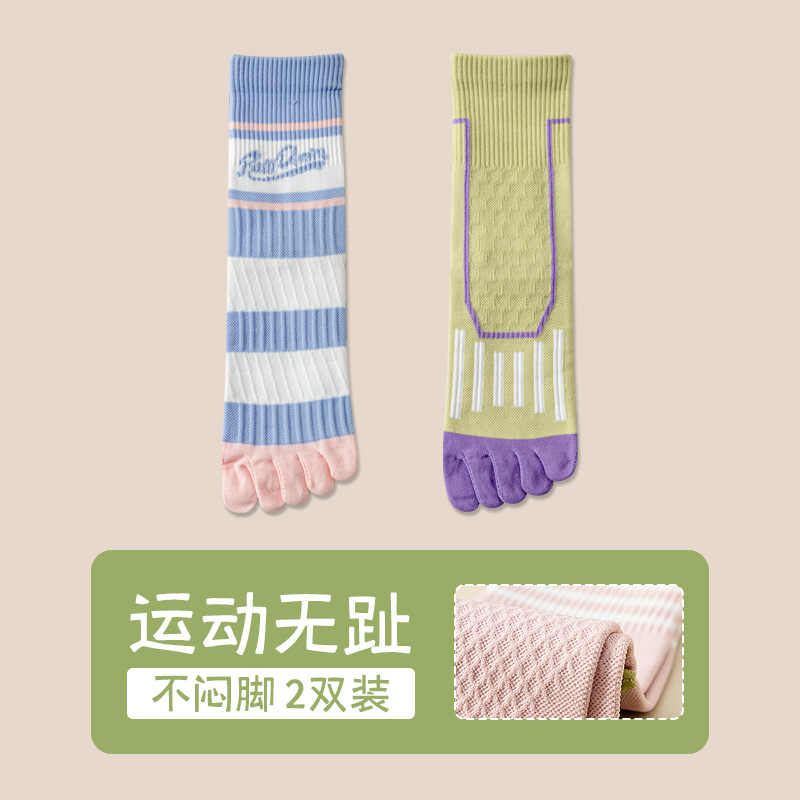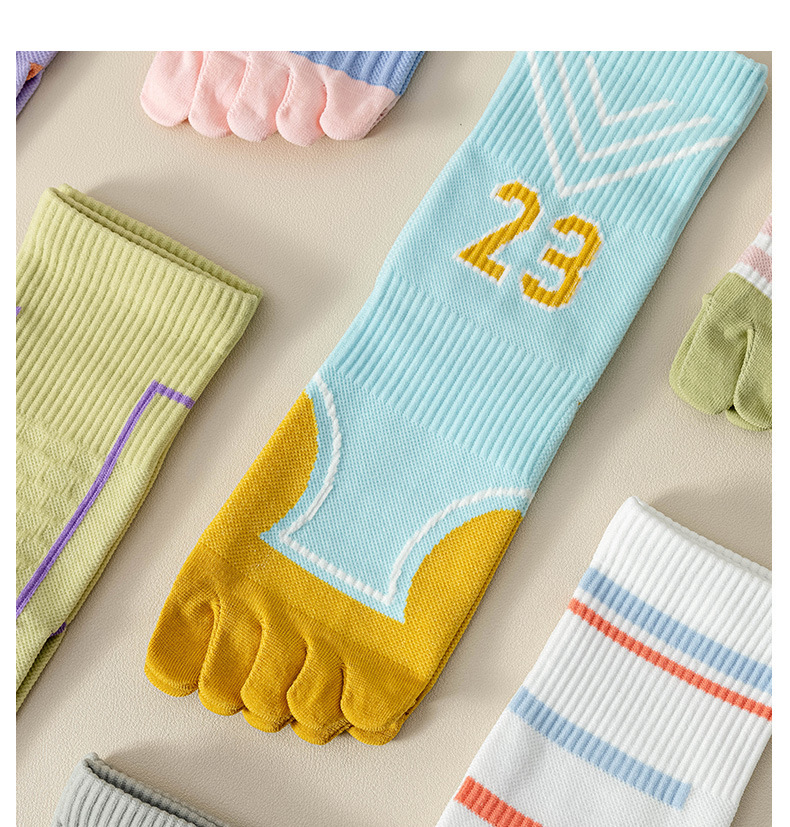 Zhuji 여성용 다채로운 대비 색상 다섯 발가락 양말 허리 미끄럼 방지 여성용 줄무늬 편지 피트니스 중반 송아지 여성용 양말 NPM스토어 가기