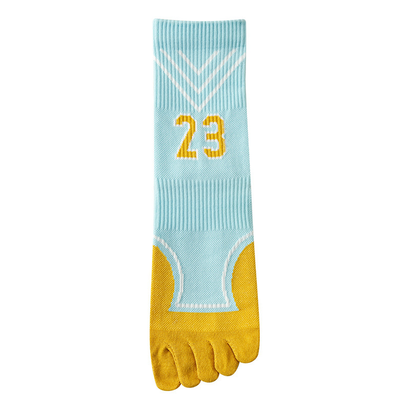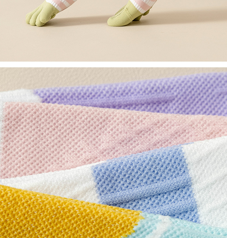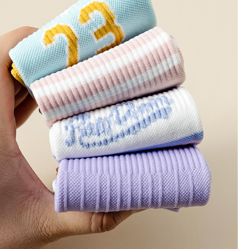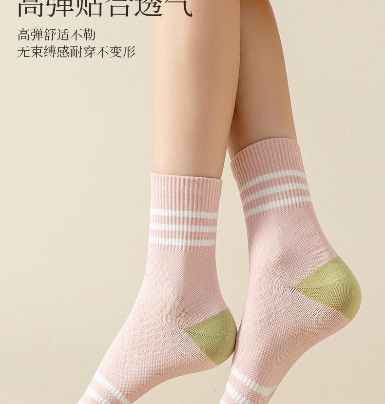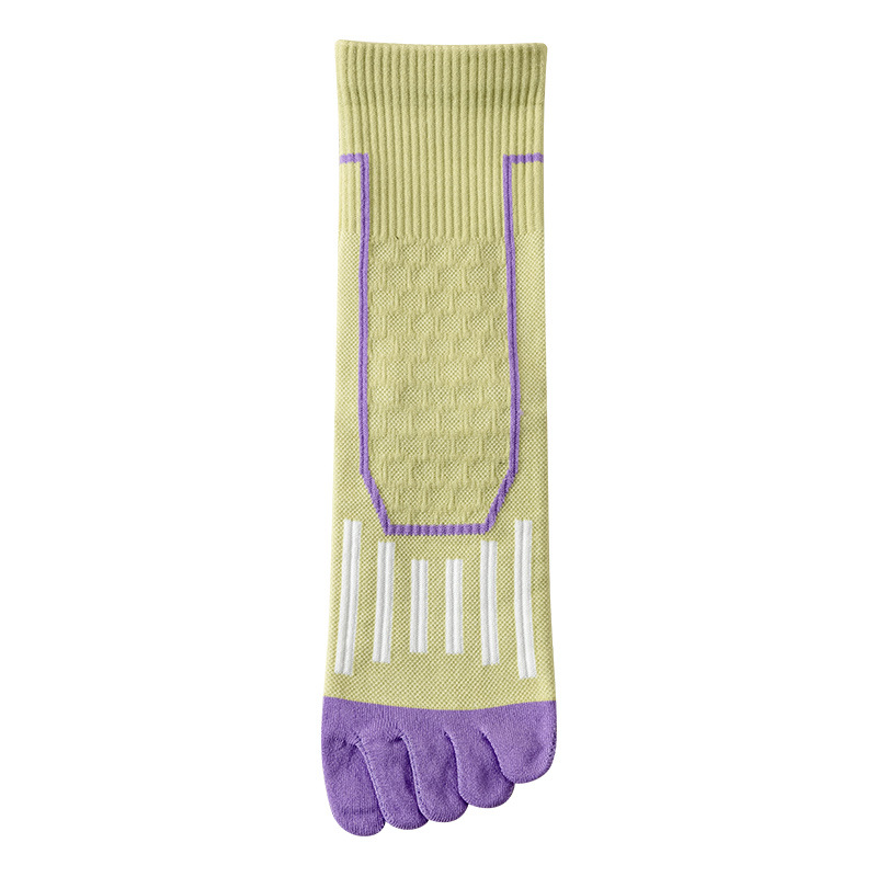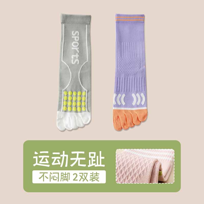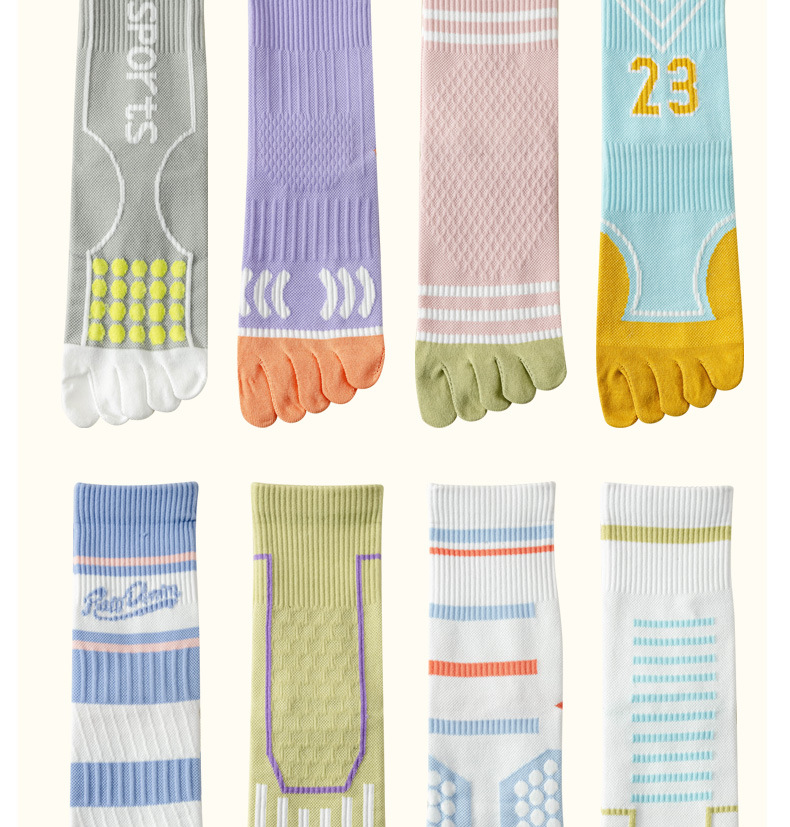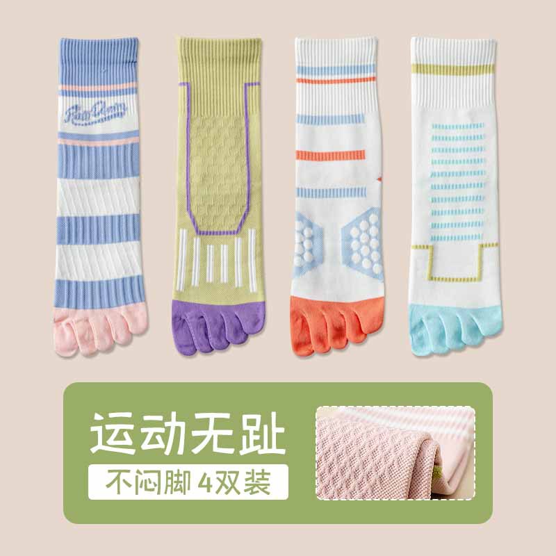 Zhuji 여성용 다채로운 대비 색상 다섯 발가락 양말 허리 미끄럼 방지 여성용 줄무늬 편지 피트니스 중반 송아지 여성용 양말 NPM스토어 가기